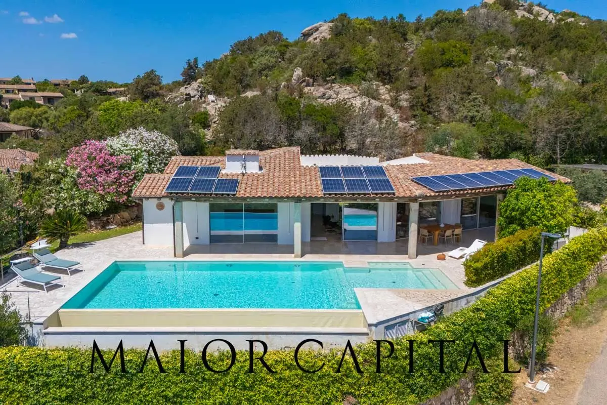 An exclusive corner just minutes from Cala Ginepro beachIn the prestigious residential context of Punta Molara, just three minutes from the beach of Cala Ginepro and with a panoramic view of the promontory of Capo Coda Cavallo, we offer for sale a detached villa with private swimming pool and unparalleled sea view. A perfect solution for those seeking privacy, comfort and direct contact with Sardinian nature.Maximum privacy immersed in the Mediterranean maquisThe villa is surrounded by 800 sqm of well-kept garden and almost 2 hectares of hilly land covered with native vegetation. This context guarantees absolute privacy, silence and an immersive experience in the authentic beauty of Gallura's Mediterranean maquis.Modern architecture and fine materialsThe house stands out for the quality of its finishes and architectural elegance. Modern lines blend with traditional elements such as the bleached wooden roofs and Orosei marble floors, creating a perfect balance between contemporary style and local materials.Large interior spaces with panoramic viewsThe interior spaces are large, airy and bright, thanks to the large windows overlooking the swimming pool and the crystal clear sea of Capo Coda Cavallo. The living room opens onto the covered veranda, extending the liveability of the spaces in perfect continuity between indoors and outdoors, ideal for every season.Designer kitchen between aesthetics and functionalityThe kitchen has a contemporary and minimalist style, conceived for practical but also aesthetically refined use. The corner composition optimises space, while the light, natural tones contribute to an elegant and relaxing ambience.Refined sleeping area with exclusive viewThe sleeping area consists of a refined master suite with an enchanting view of the pool and the sea, a second double bedroom with en-suite bathroom and a view of the garden, a twin guest room with en-suite bathroom, as well as an additional guest bathroom, designed to offer maximum comfort and functionality.Separate guest or staff flatOn the semi-basement level, with completely independent access from the outside, is a separate flat consisting of a spacious multi-purpose room, a carefully finished bathroom, a laundry room and a cellar. This unit is perfect for hosting friends, family or for use by service personnel.The villa is composed as follows:Ground floor:* Covered and equipped sea view verandas* Bright panoramic living room* Open kitchen* Master bedroom with en suite bathroom and panoramic sea view* A further double bedroom with en suite bathroom and sea and garden view* Twin bedroom with en suite bathroom* Guest bathroomSemi-basement floor:* Multi-purpose room* Laundry room* Cellar* BathroomFeatures:* Air conditioning* Underfloor heating with gas boiler* Infinity swimming pool* Rooftop sundeck with preparation for outdoor kitchen* Outdoor barbecue with dining area* Private garden of 800 sqm* Land of 20,000 sqm* Full home automation for lights and shutters* LED lighting throughout the garden* Photovoltaic system* Double carport and double uncovered parking spaceWhy choose this property:#1 Breathtaking views of the island of Tavolara and Capo Coda Cavallo#2 Only a few minutes away from the crystal-clear waters of Cala Ginepro#3 Spacious areas distributed on two distinct levels#4 Proximity to boutiques, shops and services in the heart of San Teodoro#5 Versatile spaces that can be easily customised according to requirements#6 Only 20 minutes from the port and Olbia Costa Smeralda AirportMaior Capital is the Real Estate Group of reference for the purchase and sale of property in Sard