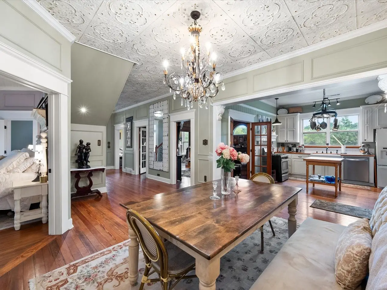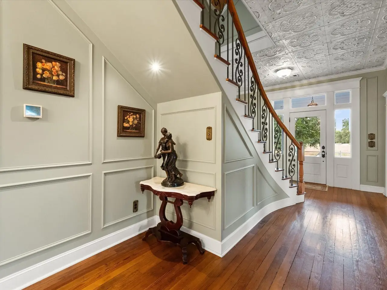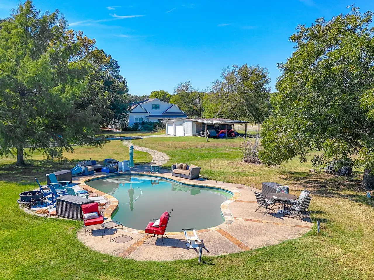 Step into this beautifully maintained farmhouse that perfectly combines timeless charm with modern comfort! Nestled on approximately 57 acres, this 3-bedroom, 2.5-bath home features gorgeous hardwood floors throughout, showcasing its enduring character. Spacious living areas offer a warm balance of coziness and functionality, while the elegant dining room is ideal for entertaining family and friends. The walk-in pantry adds extra convenience, and the stylish lighting throughout creates a welcoming, inviting ambiance. Two bathrooms feature classic clawfoot tubs, adding a touch of vintage luxury to your daily routine. Relax on the covered front porch, take a dip in the sparkling in-ground pool, and enjoy the serene countryside views. The property is fenced and cross-fenced, with mature native pecan and walnut trees, plus two tanks and wooded areasperfect for recreation, privacy, and exploring the outdoors. This would also be an excellent opportunity for an unforgettable airbnb or wedding venue, which the property has been used for both. Located in the desirable Blooming Grove ISD and a mile from Navarro Mills Lake. This property is a true country gem offering endless opportunities including peaceful living, retirement, outdoor enjoyment or just a weekend home for the avid fisherman.