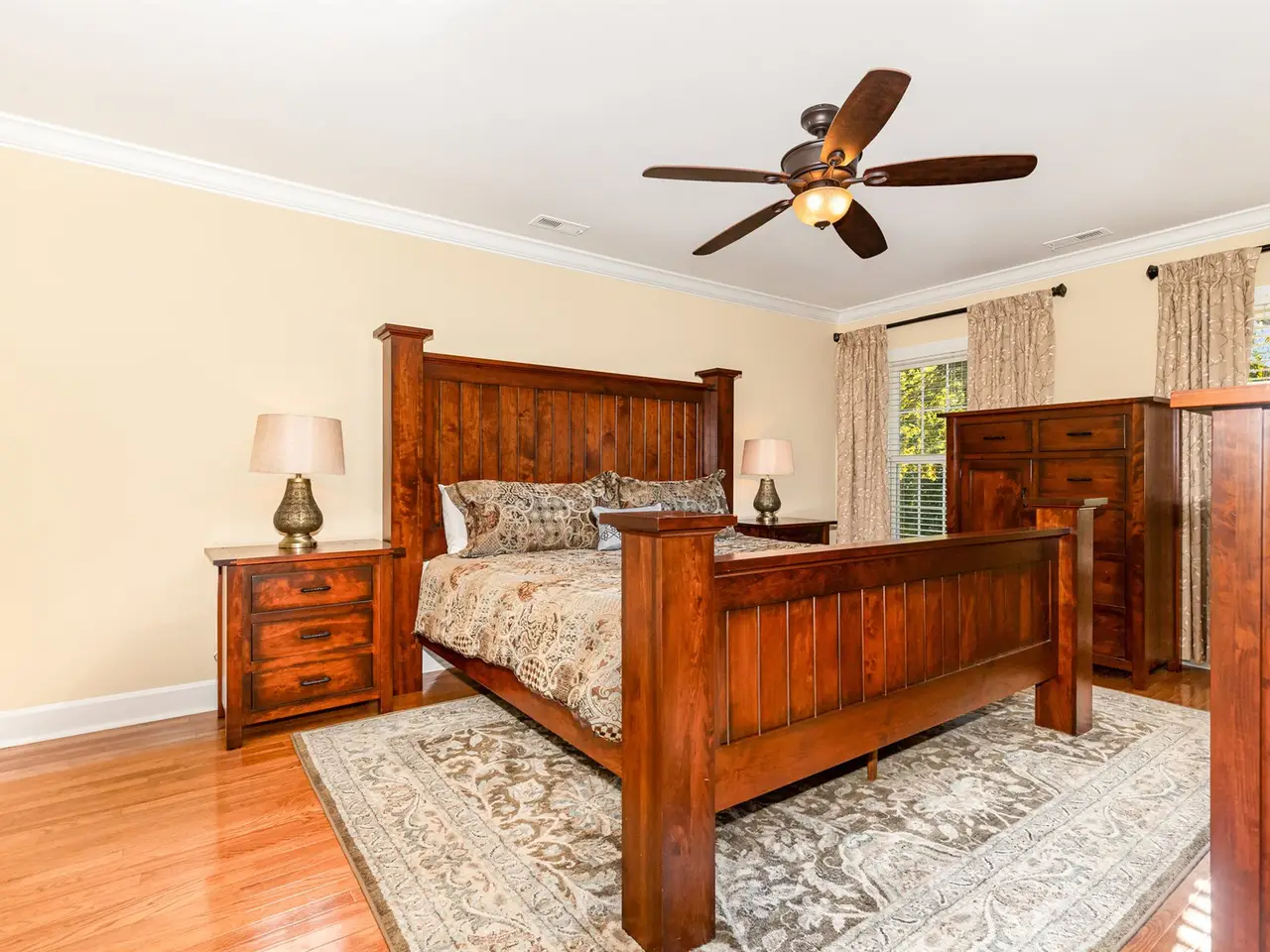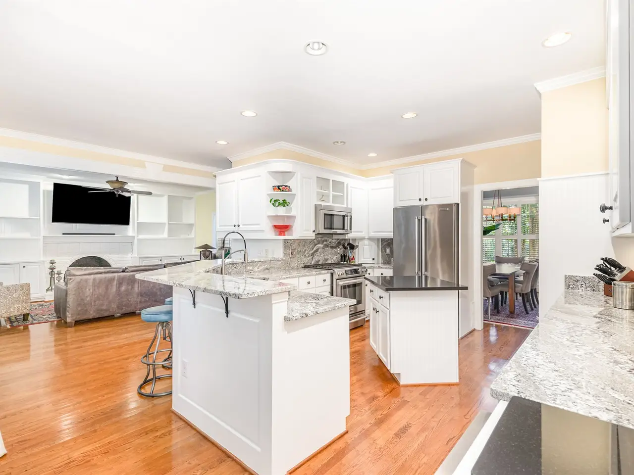 Stunning home in the highly sought-after Wentworth Park neighborhood! Elegant North Raleigh Home with Designer Upgrades & Outdoor Oasis. This residence features brand-new granite kitchen countertops, renovated spa-like Master Bath (new tile floors, new walk-in shower, new light fixtures and mirrors), and freshly painted interior, creating a bright and welcoming space. Hardwood floors, crown molding, custom cabinetry, updated guest baths, and formal living and dining rooms blend sophistication with warmth.The family room offers a cozy fireplace, while the bright eat-in kitchen and spacious upstairs bonus room with rear staircase provide plenty of space to gather.Step outside to enjoy the screened-in porch, an expansive full-length deck, and a park-like backyard with lighted pathways. Perfectly located in North Raleigh, just minutes from top restaurants and shopping.