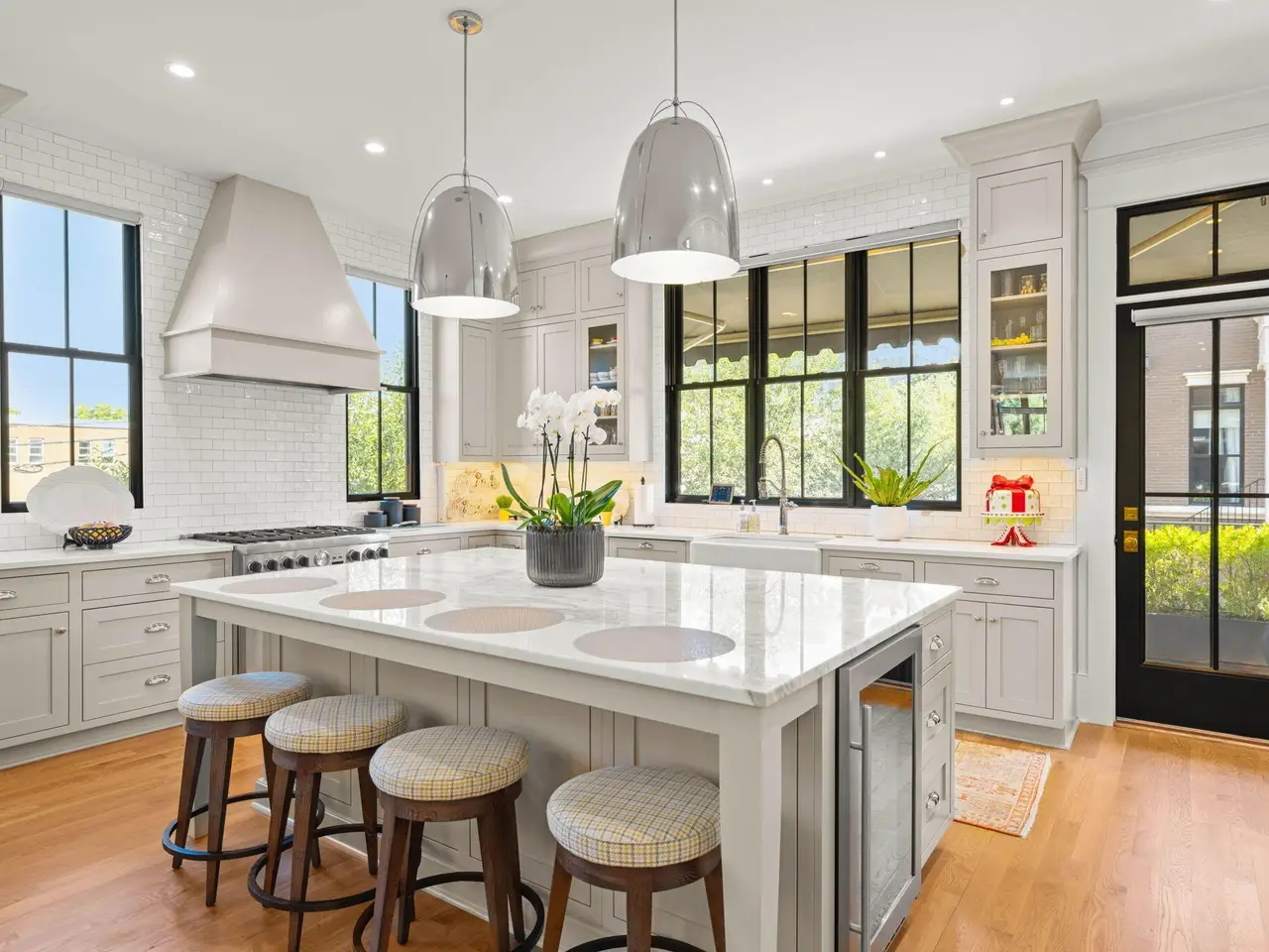 Stunning all brick custom built Brownstone in the heart of Downtown Raleigh, enjoy this light and bright end unit with unobstructed city skyline views from the private rooftop terrace, convenient access to all floors by a private elevator, multiple outdoor spaces surrounded by wrought iron fencing for added privacy, you'll love the chef-inspired kitchen featuring a massive marble top island, hidden refrigerator and freezer and top of the line Thermadoor appliances, quartz countertops and custom pantry cabinet with roll-out shelving, 10 ft. ceilings on the main level to elevate the space, hardwood floors, Sonos speakers, smart thermostats, remote controlled shades, central vacuum, a modern home security system, this home offers 4 bedrooms and 3.5 baths, a private office with built-ins, the primary suite includes dual walk-in closets & a spa-style bath, gorgeous staircase with accent lighting, 2-car garage w/ EV charging station & epoxy floor, Wolf grill station on rooftop, this Brownestone is one of the most thoughtfully designed homes in the area, offering luxury finishes throughout, breathtaking views and unbeatable walkability to all that Downtown Raleigh has to offer, Outdoor furniture & custom window treatments convey