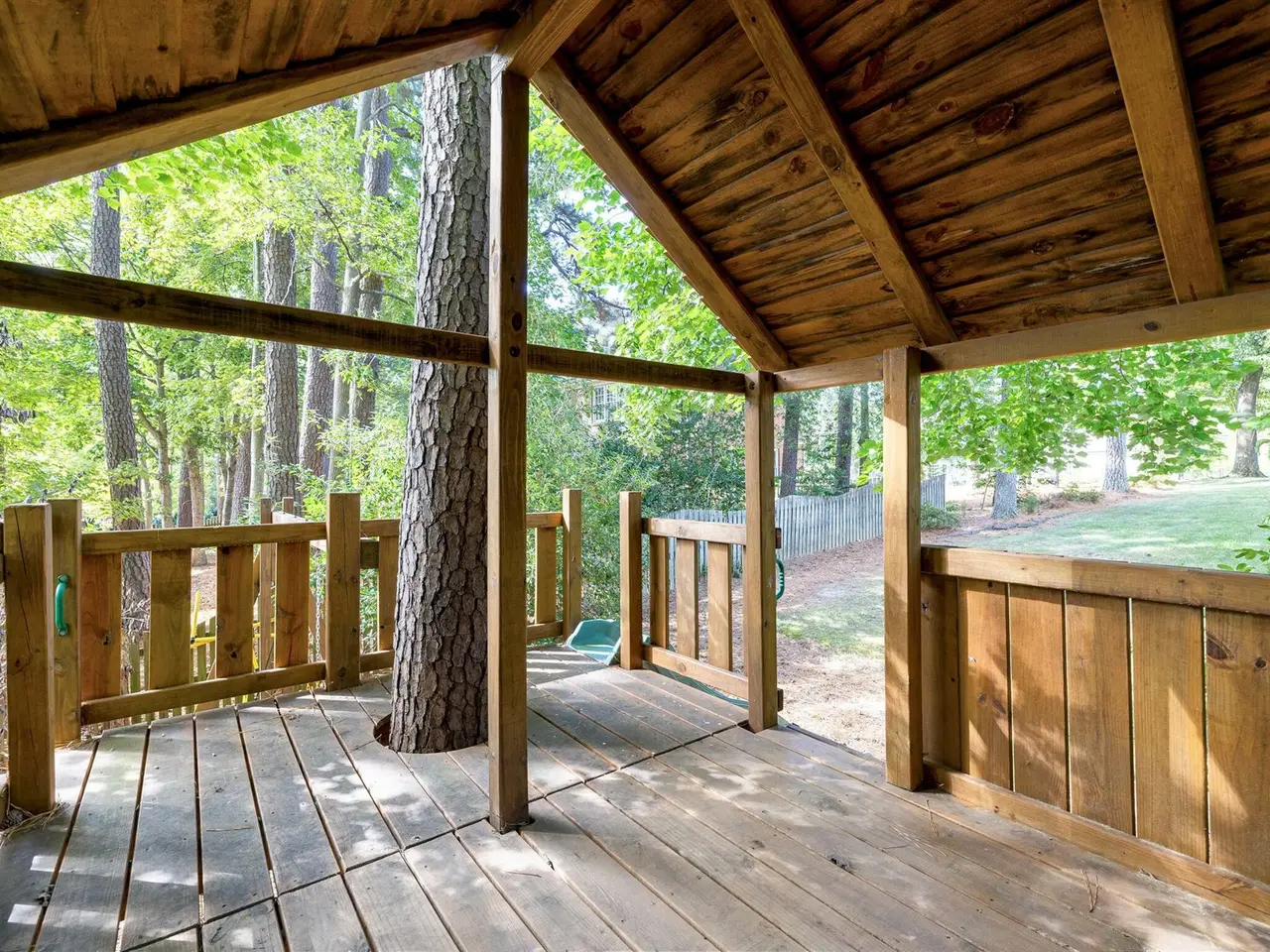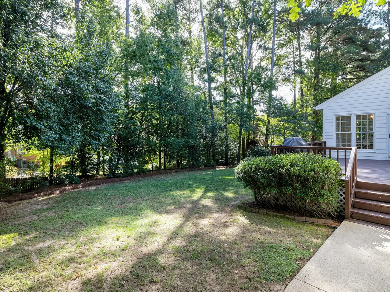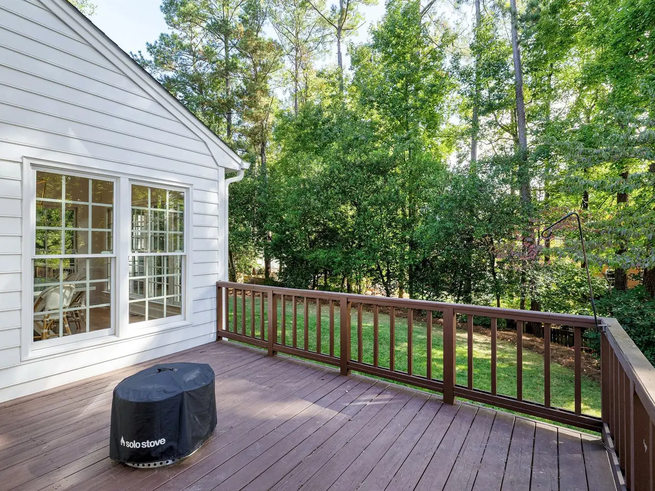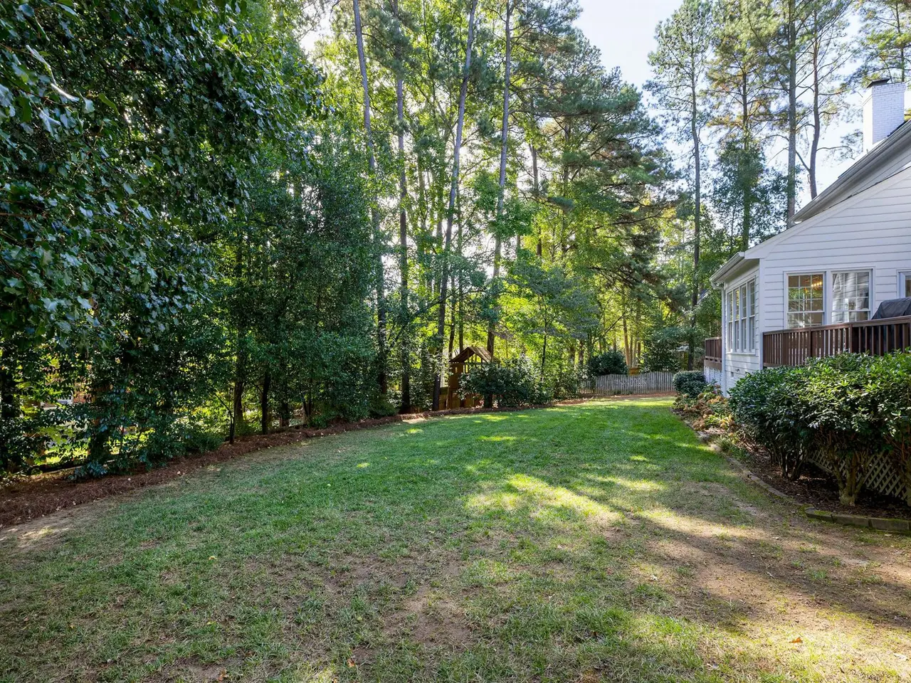 North Ridge classic at its best! This beautiful home was made for easy entertaining with formal areas. Enjoy memorable dinners in the dining room which features a trey ceiling and wainscoting. The living room is perfect for quiet conversations. The updated kitchen is appointed with quartz counters, center island, SS appliances, tile backsplash, gas cooktop, glass front cabinets and a large pantry. It opens to the sunny breakfast room and family room with cozy fireplace There is a rear staircase leading to the second floor bonus room. The primary suite has a huge bedroom, office area, luxury bath with double vanities, whirlpool bath, separate shower and walk in closet. Three additional bedrooms are on the second floor. The walk up attic will meet your storage needs or can be used for future expansion. Enjoy the view of the private backyard from the two decks or the playset . You are minutes from North Ridge Country Club, shopping and dining. It's an easy commute to I-540, downtown Raleigh, North Hills and the airport. This home is waiting for you!