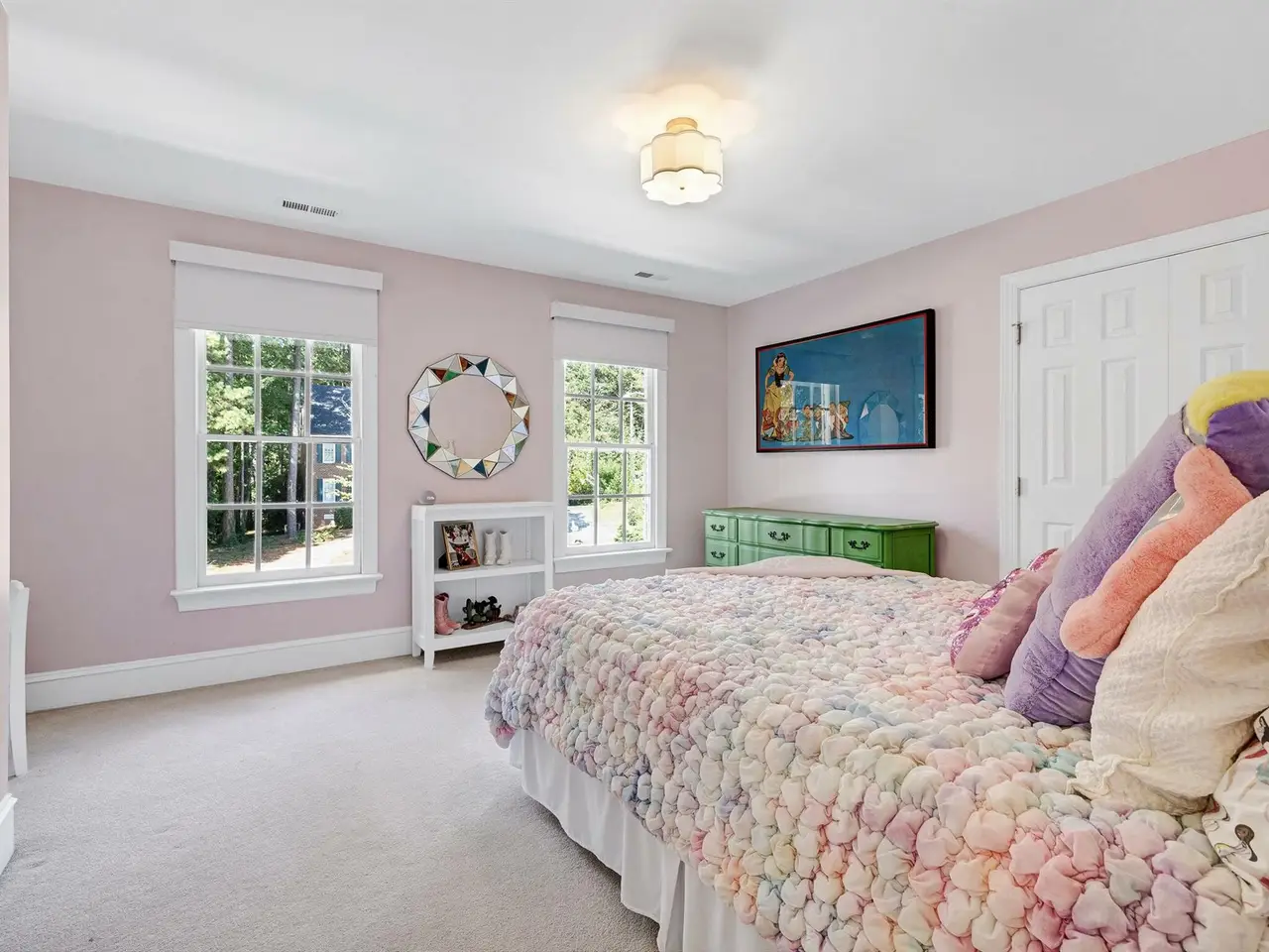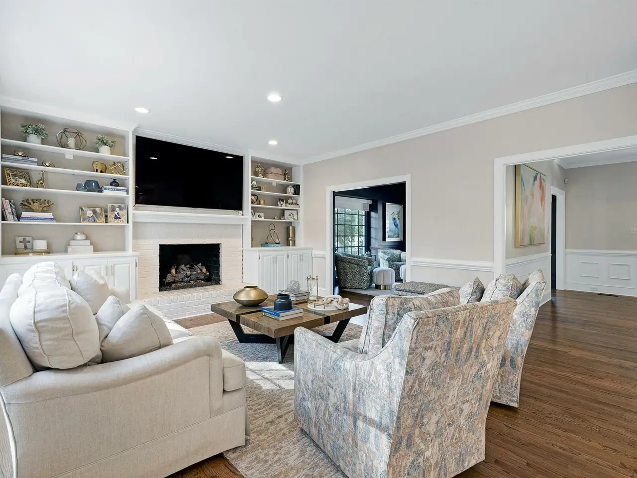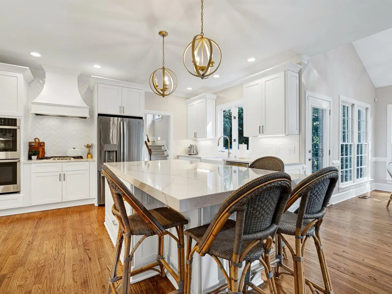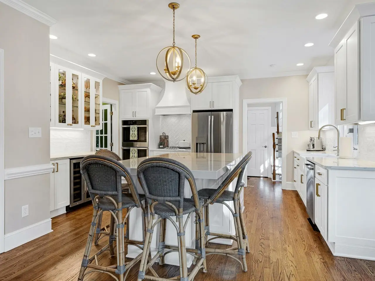 North Ridge classic at its best! This beautiful home was made for easy entertaining with formal areas. Enjoy memorable dinners in the dining room which features a trey ceiling and wainscoting. The living room is perfect for quiet conversations. The updated kitchen is appointed with quartz counters, center island, SS appliances, tile backsplash, gas cooktop, glass front cabinets and a large pantry. It opens to the sunny breakfast room and family room with cozy fireplace There is a rear staircase leading to the second floor bonus room. The primary suite has a huge bedroom, office area, luxury bath with double vanities, whirlpool bath, separate shower and walk in closet. Three additional bedrooms are on the second floor. The walk up attic will meet your storage needs or can be used for future expansion. Enjoy the view of the private backyard from the two decks or the playset . You are minutes from North Ridge Country Club, shopping and dining. It's an easy commute to I-540, downtown Raleigh, North Hills and the airport. This home is waiting for you!