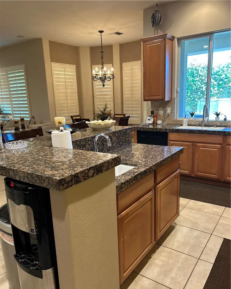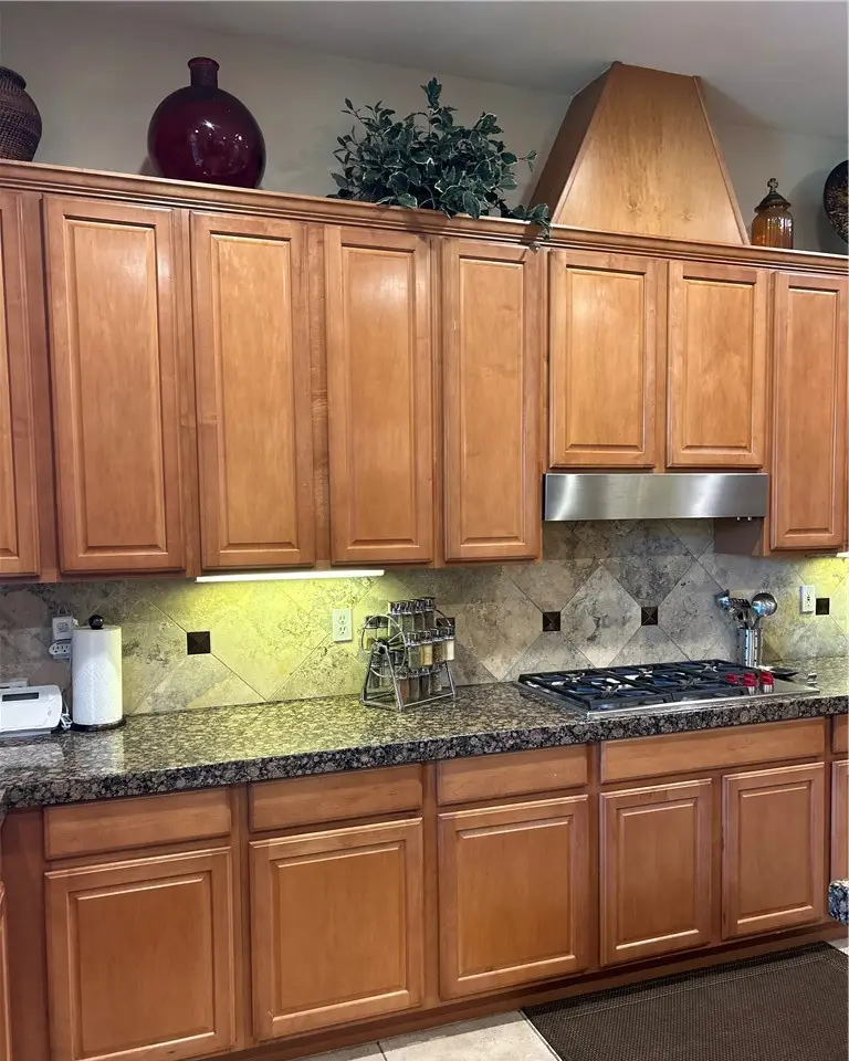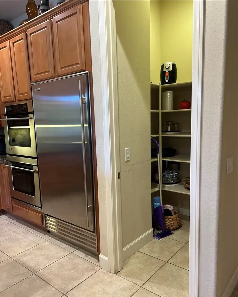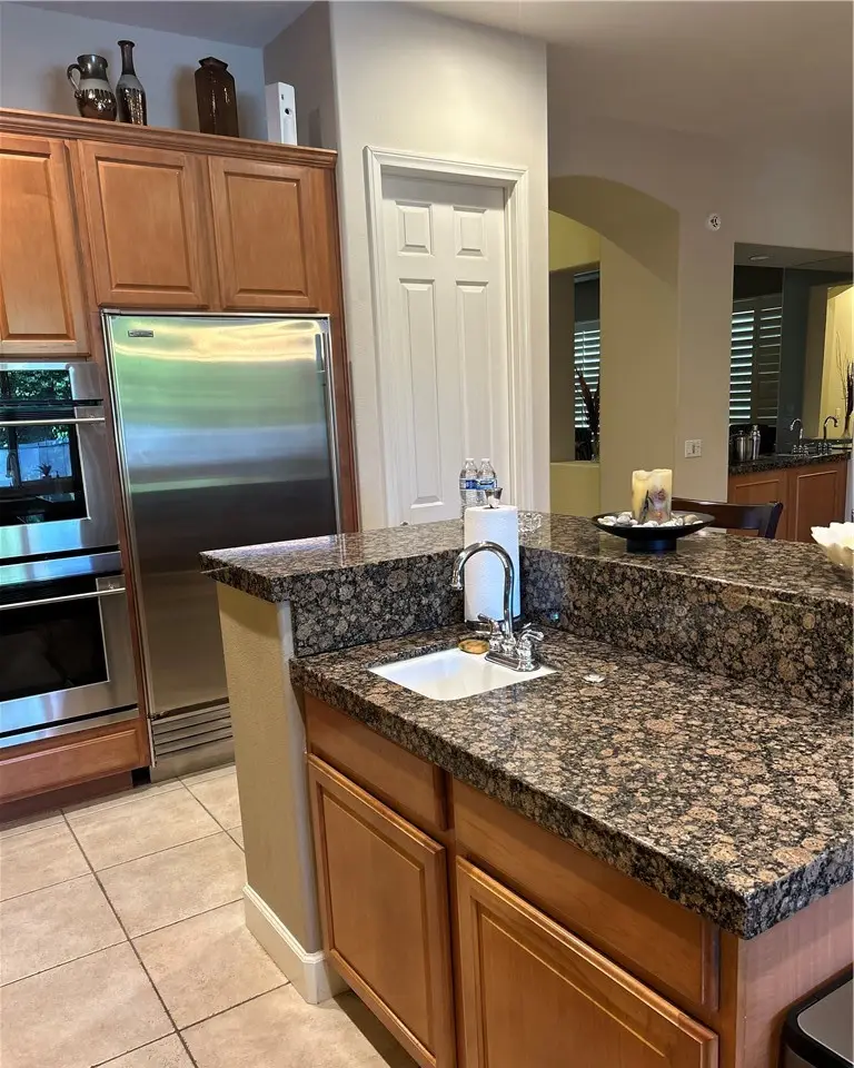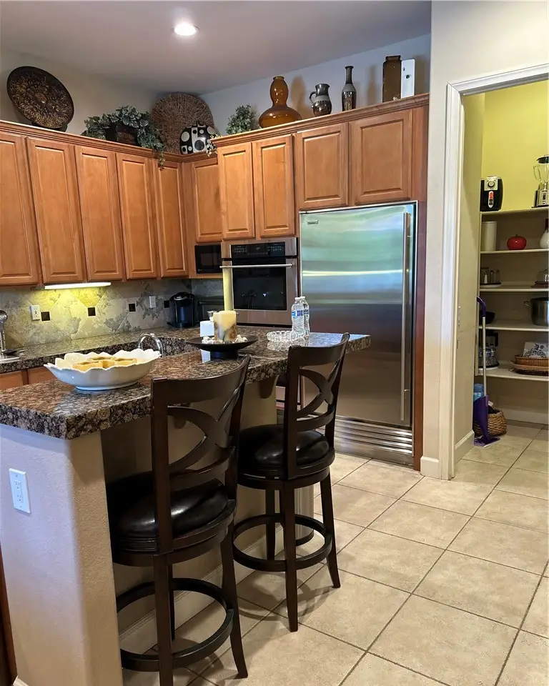 Kitchen with marble counters, butler pantry, and custom cabinets
