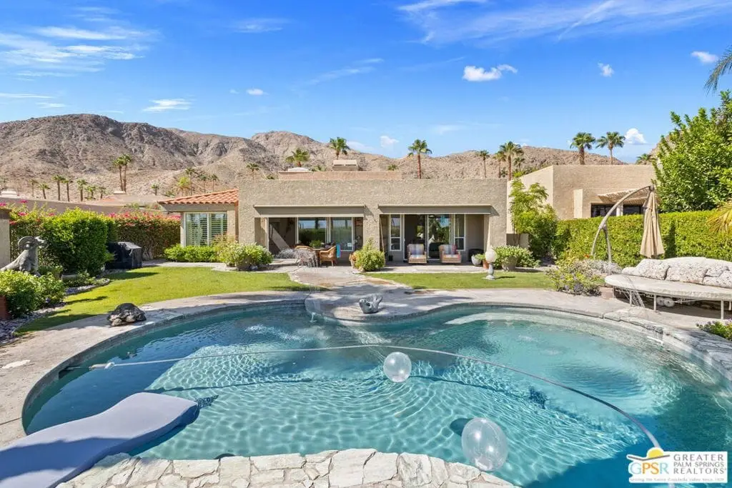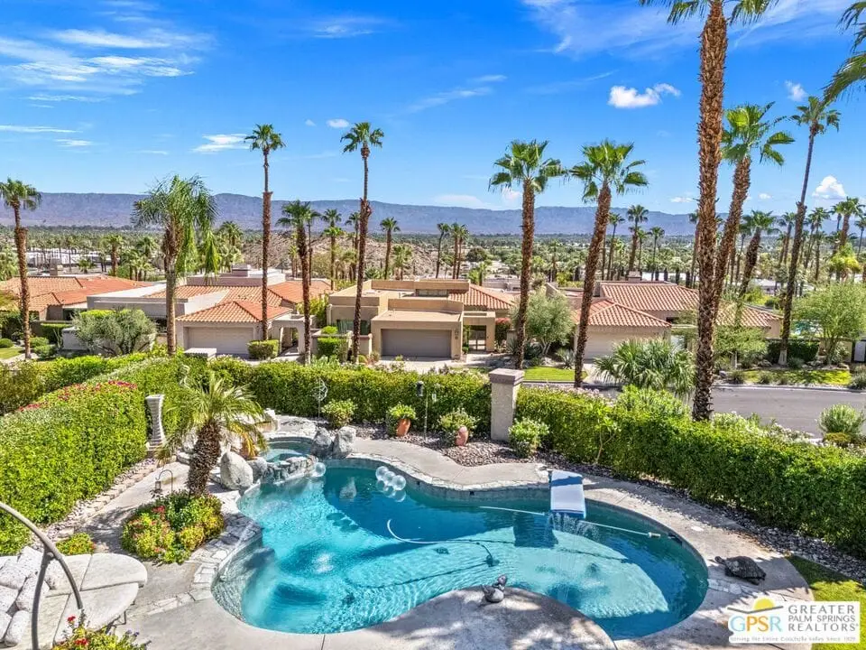 Price improvement of $200,000. Seller has purchased another property. Coveted and secluded gated Mirage Cove, where privacy abounds. Only 69 homes terraced on the hillside with 360-degree mountain views and city lights.This home offers three bedrooms, including two ensuite primary suites, plus two recently upgraded full baths and a third bath with walk-in shower. Approximately 2,750 square feet (per assessor). Private driveway to attached two-car garage with one additional parking space. Gated, free on-site RV parking lot. Leaded glass double-door entry. Neutral ceramic tile flooring. Bathrooms with travertine flooring. Ensuite bedrooms feature newer carpet. All energy-efficient windows and glass doors recently replaced.The spacious kitchen has granite counters, upgraded cabinetry, and newer stainless appliances. Large living room with adjoining semi-formal dining area. Family/media room. Oversized .40-acre site with saline swimming pool and spa. Property has been updated over the last 1.5 years, addressing nearly all surfaces including quartz counters, cabinetry, windows, sliding doors with screens, HVAC and attic ducting, and roof servicing. Some furnishings available.Mirage Cove community offers an almost Olympic-size pool, spa, tennis courts, and pickleball courts. This gated hillside neighborhood consists of just 69 homes ranging from 2,200 to over 3,000 square feet on terraced, pool-size lots with mountain views. Homes are typically priced from $1,100,000 to $2,100,000.