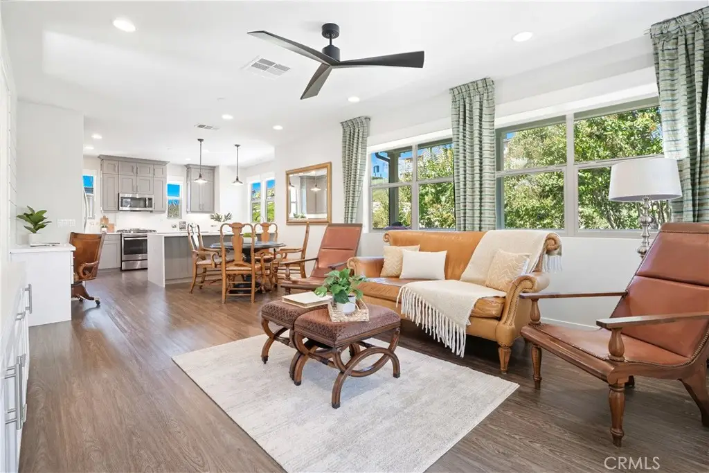 Nestled within the highly sought-after Trellis neighborhood of Esencia, this beautifully upgraded home showcases the community's largest floor plan, offering three spacious bedrooms plus a versatile office that can easily be converted into a fourth bedroom. Trellis is celebrated for its charming collection of modern farmhouses, perfectly capturing the essence of contemporary South Orange County living. From the moment you arrive, you're welcomed by a picturesque white picket fence, lush landscaping, and a generous wraparound front porch that sets the tone for the warmth and style found inside. The first level features a thoughtfully designed guest bedroom and a full bathroom, creating an ideal space for visitors or multi-generational living. Upstairs, the expansive second floor embraces an open-concept great room design, where the kitchen, dining, and family room flow seamlessly together. The kitchen has been modernly appointed with quartz countertops, gray cabinetry, stainless steel appliances, a designer backsplash, and durable faux-wood flooring. A custom shiplap wall and Restoration Hardware ceiling fan add stylish character, while the wraparound balcony extends the living space outdoors, providing the perfect setting for entertaining or enjoying the coastal breeze. The primary suite offers a peaceful retreat with a spacious walk-in closet and a luxurious en-suite bathroom featuring dual sinks, a romantic soaking tub, and a walk-in shower. An additional secondary bedroom and bathroom, along with a convenient laundry area, complete this level. The crown jewel of the home is the expansive rooftop deck, an entertainer's dream with plenty of room for gatherings, relaxation, and taking in breathtaking panoramic views. Blending modern upgrades with timeless farmhouse charm, this residence is a rare opportunity to own one of Trellis' most desirable homes. Exclusive to Rancho Mission Viejo residents are all amenities in the Villages of Sendero, Esencia, Rienda and future Villages. There are community amenities for all from breath-taking resort-style pools and spas, Esencia school K-8, community farms, fitness centers, guest house, putting green, bocce ball courts, tennis and pickle ball courts, playgrounds, coffee shop, fire pits, an arcade and so much more!