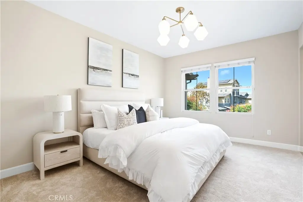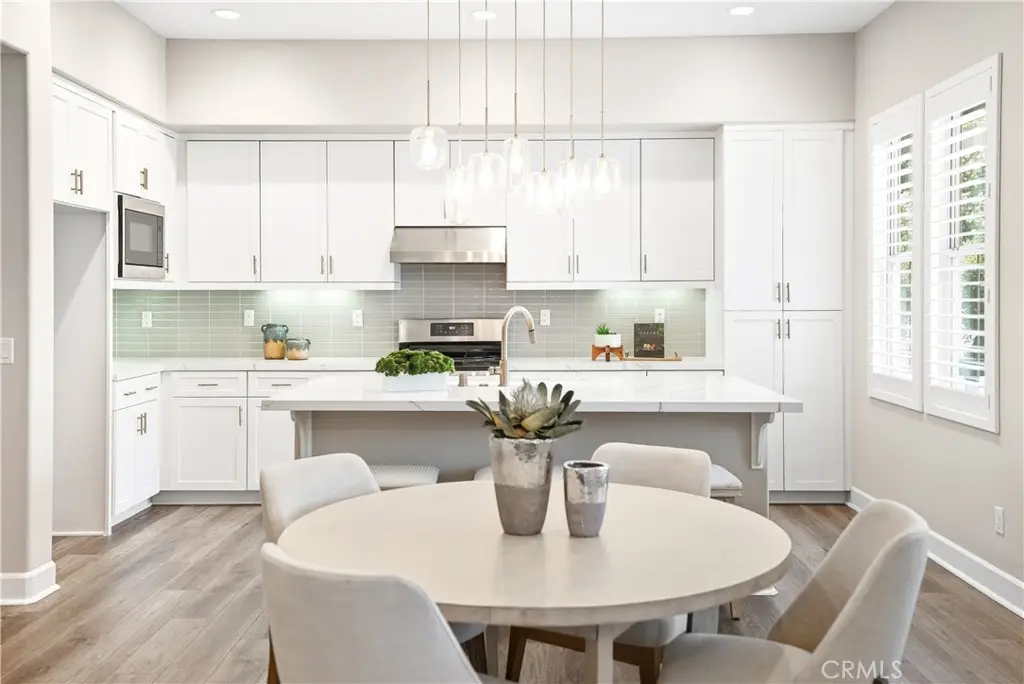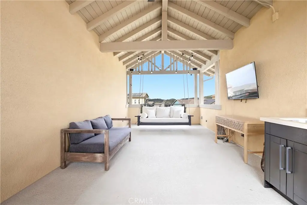 Offered by the original owner, this beautifully upgraded home blends modern design with luxury finishes throughout. From the moment you arrive, you'll be captivated by the spacious front yard, and oversized covered patio--complete with built-in seating and a cozy firepit, perfect for entertaining or enjoying a quiet evening outdoors. Step inside to discover an open-concept layout featuring elegant vinyl plank flooring, fresh interior paint, plush new carpet, recessed lighting, and upgraded baseboards. The bright and airy living room flows effortlessly into a dining area and a chef-inspired kitchen equipped with stainless steel Energy Star appliances, a gas range with hood and griddle, a self-cleaning convection oven, modern tile backsplash, gorgeous quartz countertops, and a large center island with farmhouse sink and breakfast bar. Upstairs, the luxurious primary suite offers a true retreat with a spacious walk-in closet, beautifully upgraded ensuite bathroom with tiled shower and floor, quartz countertops and dual vanities. Two additional bedrooms, a full guest bathroom with dual sinks, and an upper-level laundry room with added cabinetry provide plenty of space and convenience for daily living. The third-level covered rooftop deck boasts panoramic mountain views and is ideal for BBQs, al fresco dining--with a built-in sink, refrigerator, and counter space--or simply lounging with a built-in TV setup. Additional home features include touchless keypad entry, custom window coverings including wood shutters and blinds, double pane windows, upgraded light fixtures, downstairs framed mirror, modern hardware, direct access 2-car garage with overhead storage and ball rack, and Energy Star features integrated throughout the home. You will also have access to award-winning amenities such as baseball fields, playgrounds, a sports park, the Canyon House, Blue Hummingbird Coffeehouse, The Pond, Lagoon and Lake, Camp Out facility, resort-style pools, the farms, an arcade, state-of-the-art workout gyms, dog park, a zipline, splash pads, biking trails, NEV roads, and tennis and pickleball courts (to name a few). Additionally, it is just 15 minutes from the beach and conveniently located near the 241 freeway.