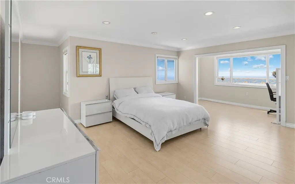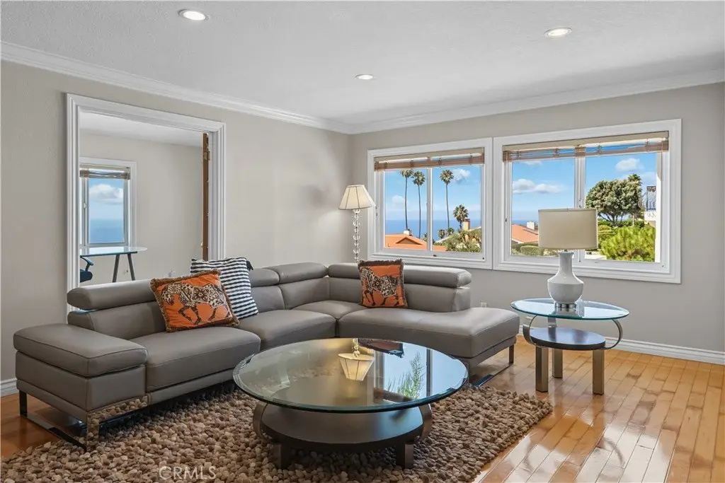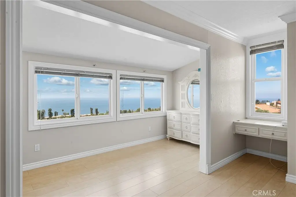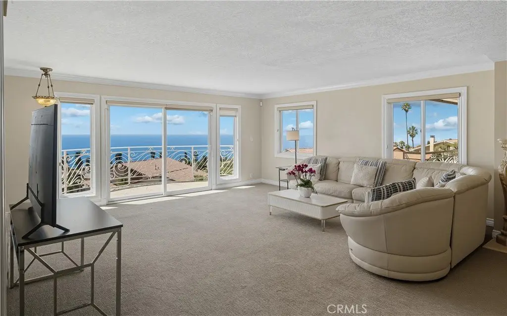 Sweeping Ocean and Sunset Views from Malibu to Catalina Perched high in the beautiful Monaco area of Rancho Palos Verdes, this home showcases panoramic ocean views from nearly every room and captures a different sunset every evening. Offering 4 bedrooms plus a den (optional 5th bedroom), 4 bathrooms, and 4,192 sq. ft. of living space on a 16,889 sq. ft. lot, this residence blends elegance with comfort. The main level features a spacious living room with balcony, formal dining room, family room with fireplace, den, and a gourmet kitchen with center island and breakfast nook. A marble staircase with custom wrought-iron rails leads to the upper levels. The mid-level includes a private suite, while the top level offers three additional bedrooms, including the primary suite with a luxurious bath and sitting area to enjoy the breathtaking vistas. Spacious 3-car garage and a versatile bonus room—ideal for storage, a gym, or recreation. Great potential and priced to sell!