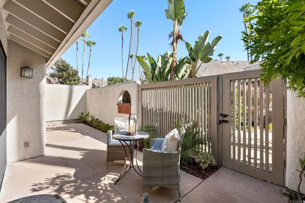 Location, location, location. Discover an exceptional lifestyle in the coveted Las Villas community of Rancho Santa Fe. This beautifully renovated single-level townhome offers the perfect blend of privacy, comfort, and resort-style living. As an end unit, this 2-bedroom, 2-bathroom, 1,504-square-foot residence ensures maximum tranquility with convenient access to guest parking. Step inside to be greeted by an abundance of glowing natural light that illuminates the spacious interior, enhanced by soaring vaulted ceilings. The open-concept design creates an airy and inviting atmosphere, perfect for both relaxing and entertaining. Meticulously updated by the current owners in 2021, this home boasts contemporary finishes and thoughtful touches throughout. The heart of the home flows seamlessly to a private back patio, your personal gateway to the community's lush, manicured grounds. A short, serene walk leads you to a resort-style swimming pool and several spas, offering a peaceful escape for year-round enjoyment. This exquisite Rancho Santa Fe townhome also features a generous 2-car garage with additional storage space. Its prime location is just a short drive from premier shopping and dining, and only 10 minutes from the sparkling Pacific Ocean and the sandy beaches of Del Mar. Living in Las Villas places you next to the prestigious La Valle Coastal Club, a private country club offering an array of world-class amenities. Members can indulge in championship golf, tennis on pristine courts, and exquisite indoor and outdoor dining options. The club also features a luxurious spa, heated swimming pools, a state-of-the-art fitness center, and 77 newly renovated guest rooms and suites for visiting friends and family. This is more than a home; it's a lifestyle. Don't miss the opportunity to own a piece of paradise in one of Southern California's most desirable communities.