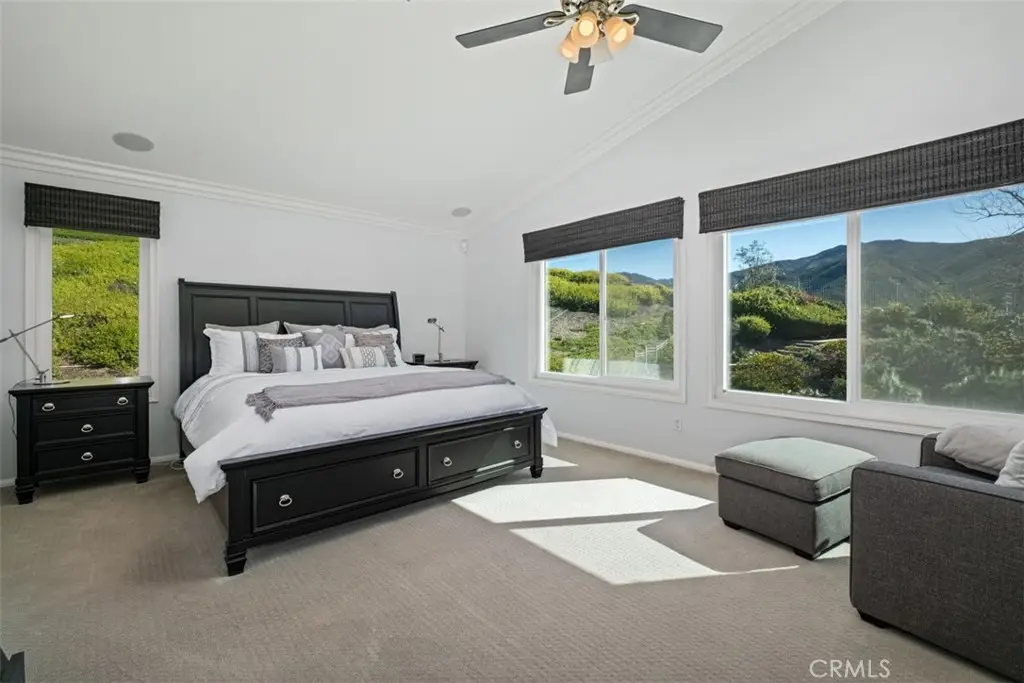 Wow! Stunning View Location at the end of a Quiet Cul de sac. Features include a remodeled Kitchen with Bosch appliances. A spacious island with ample storage capacity. 4 Bedrooms and 3 Bathrooms and a Large Bonus Room. Newer Windows, Air conditioner and water heater. The spacious 3 Car Garage has newer Insulated garage doors, GDO, 220V electricity access, storage. Other upgrades include Newer AC and Water heater. Fire resistant Eave Vent, Intumescent paint, Fire resistant sprinklered home. A large backyard featuring scenic views, complete with a patio and barbecue area. HOA Assoc -community pool, spa, tennis & BB courts, playground, and hiking trails.