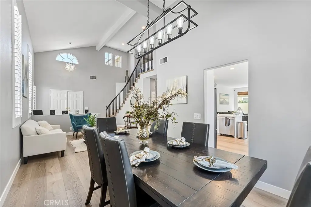 Welcome to your new home in Melinda Heights. This home is in a beautiful quiet neighborhood complete with rolling hills, parks, community pools, tennis and basketball courts, baseball and soccer fields, the beach club and lagoon and a slew of walking trails. This 4 bedroom home has a bedroom/office and full bathroom downstairs, 2 large bedrooms and a primary suite upstairs. Both the primary and hallway bathrooms have dual vanity sinks, primary bath has a separate tub and shower. The hallway bathroom has a tub/shower combo. The home features stunning cathedral ceilings and an estate winding staircase as you enter the home. The home has newer plantation shutter, beautiful tile floors in the kitchen, newer carpet on the stairs, upstairs bedrooms and family room. Laminate wood in downstairs hall, laundry and downstairs bedroom. The kitchen has an eat in area and is open to the family room complete with a fireplace. The family room leads to the backyard where there is a sparkling, river rock, 15 foot long pool and spa, perfect for evenings under the stars. There is a separate laundry room, and a 3 car garage. The home is close to coveted schools, gorgeous parks, a club house, amazing restaurants, shopping, movie theaters and freeways both toll and the 5 and 405. This home has it all!