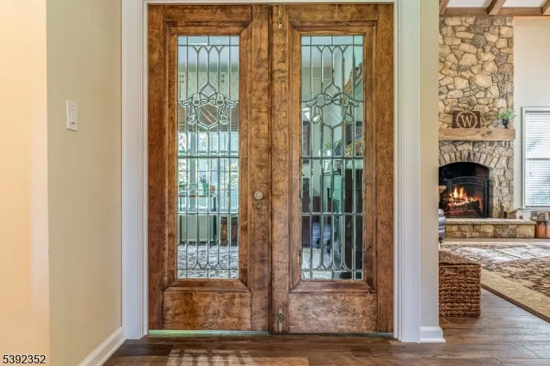 Meticulously maintained and beautifully updated, this expansive Colonial offers an open floor plan and a tranquil cul-de-sac setting backing to woods for ultimate privacy. Enjoy sunsets from the rocking chair front porch or entertain on the spacious paver patio overlooking a park-like yard. The heart of the home is the recently renovated gourmet kitchen with custom cabinetry, center island and high-end appliances, opening to a stunning two-story Family Room with floor-to-ceiling stone fireplace, reclaimed hand-hewn beams, and custom mantle - the perfect blend of rustic warmth and modern luxury. An open and inviting first floor features front and back staircases, bright and inspiring office highlighted by glass doors from France, formal living and dining rooms, powder room, laundry, and ceramic flooring enhancing the homes clean, cohesive functionality. The upper level offers a primary suite boasting three walk-in closets with custom organizers and a spa-like bath with soaking tub and double vanities. Three additional bedrooms, renovated hall bath, and large gym/media room/office space complete the second floor. The lower level extends the home's living space and includes a large, recreation room, two flex spaces, powder room, stained epoxy flooring and abundant storage. Three-car garage with built-in storage and epoxy floor. Peace of mind with new roof (2024), updated HVAC, two commercial sump pumps, new hot water heater, and septic pump (2025) approved by Health Department.
