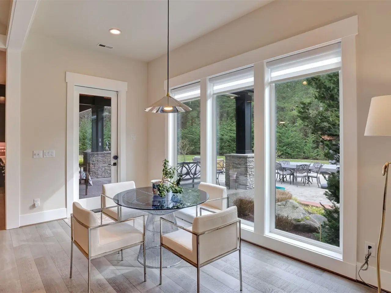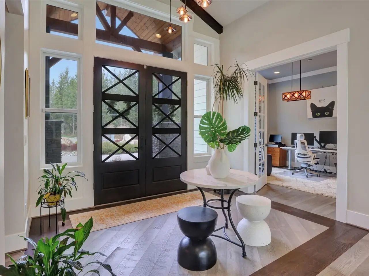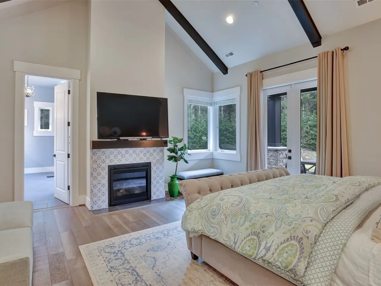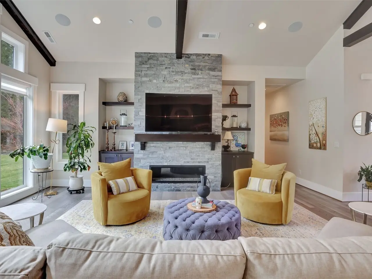 This stunning 4,560 sq.ft. custom-built home on nearly 5 acres offers contemporary elegance at its finest. A grand, surfaced driveway leads you to this magnificent home. Enter to a great room w/ vaulted ceilings, wood beams, & floor-to-ceiling windows showcasing a professionally landscaped backyard oasis. The chef's kitchen boasts Wolf appliances, dual islands, & a SubZero Pro Refrigerator. The formal dining room features a temperature-controlled wine wall. The opulent primary suite offers a fireplace & spa-like ensuite. Additional bedrooms w/ private baths, a flex room, & a spacious rec room above the 5-car garage. Enjoy a swim spa, hot tub, & covered/heated outdoor kitchen. Ideal for those craving privacy, luxury, & top-tier amenities.