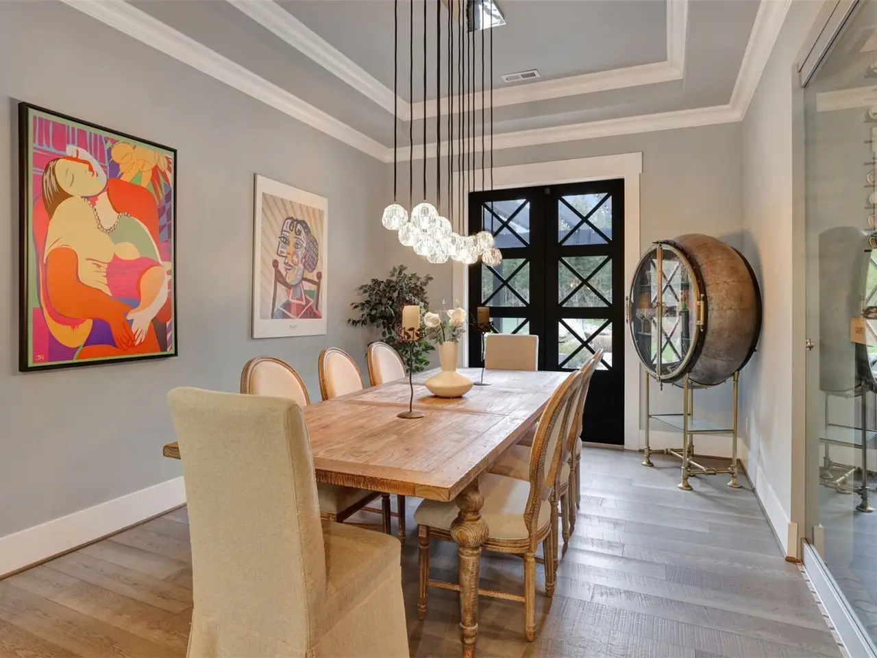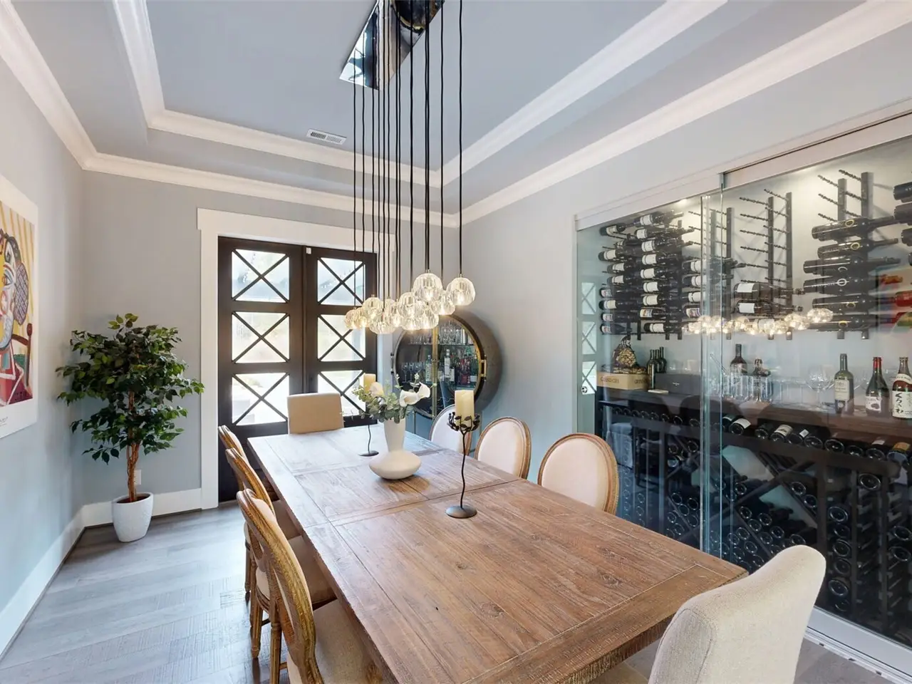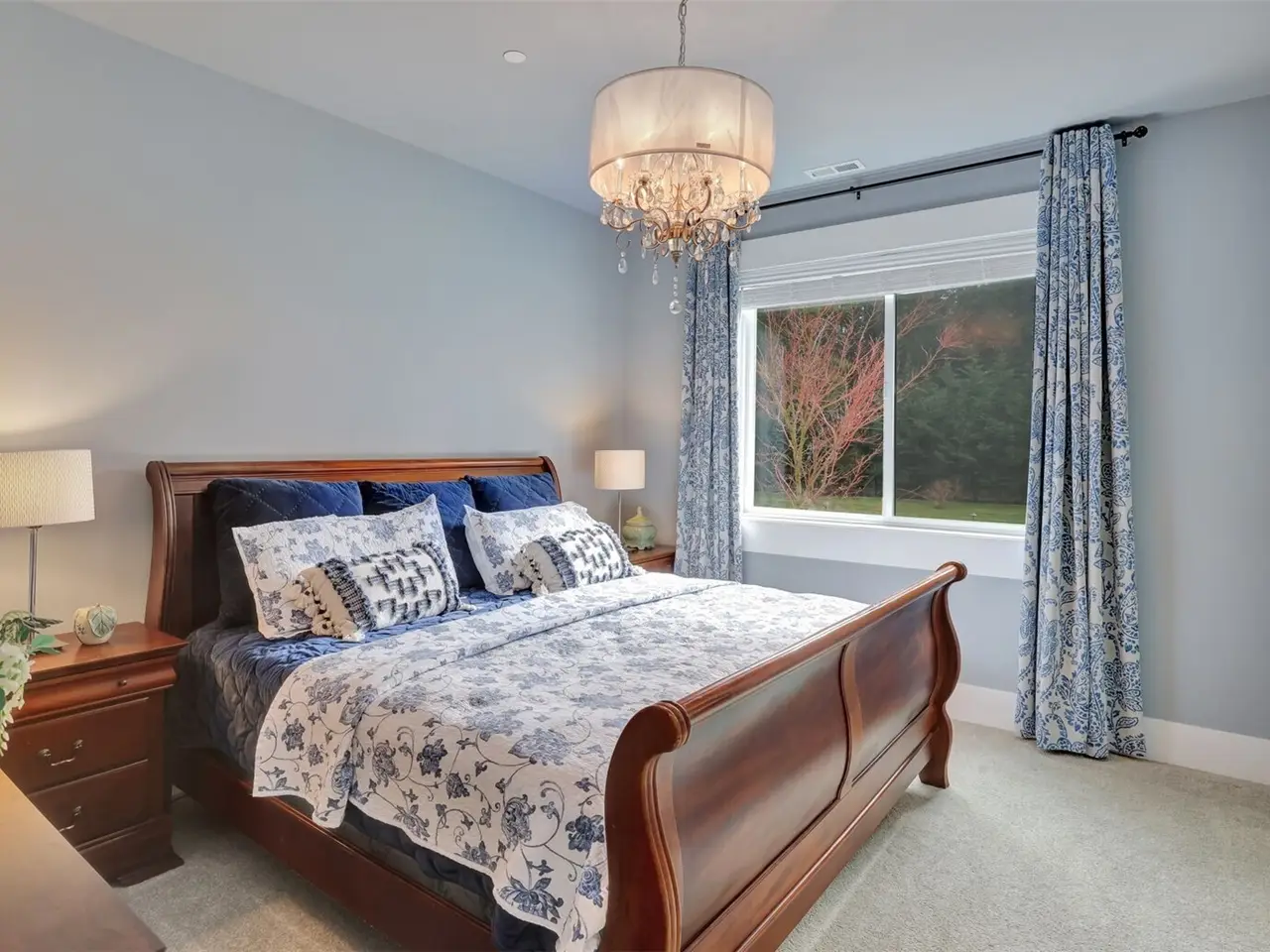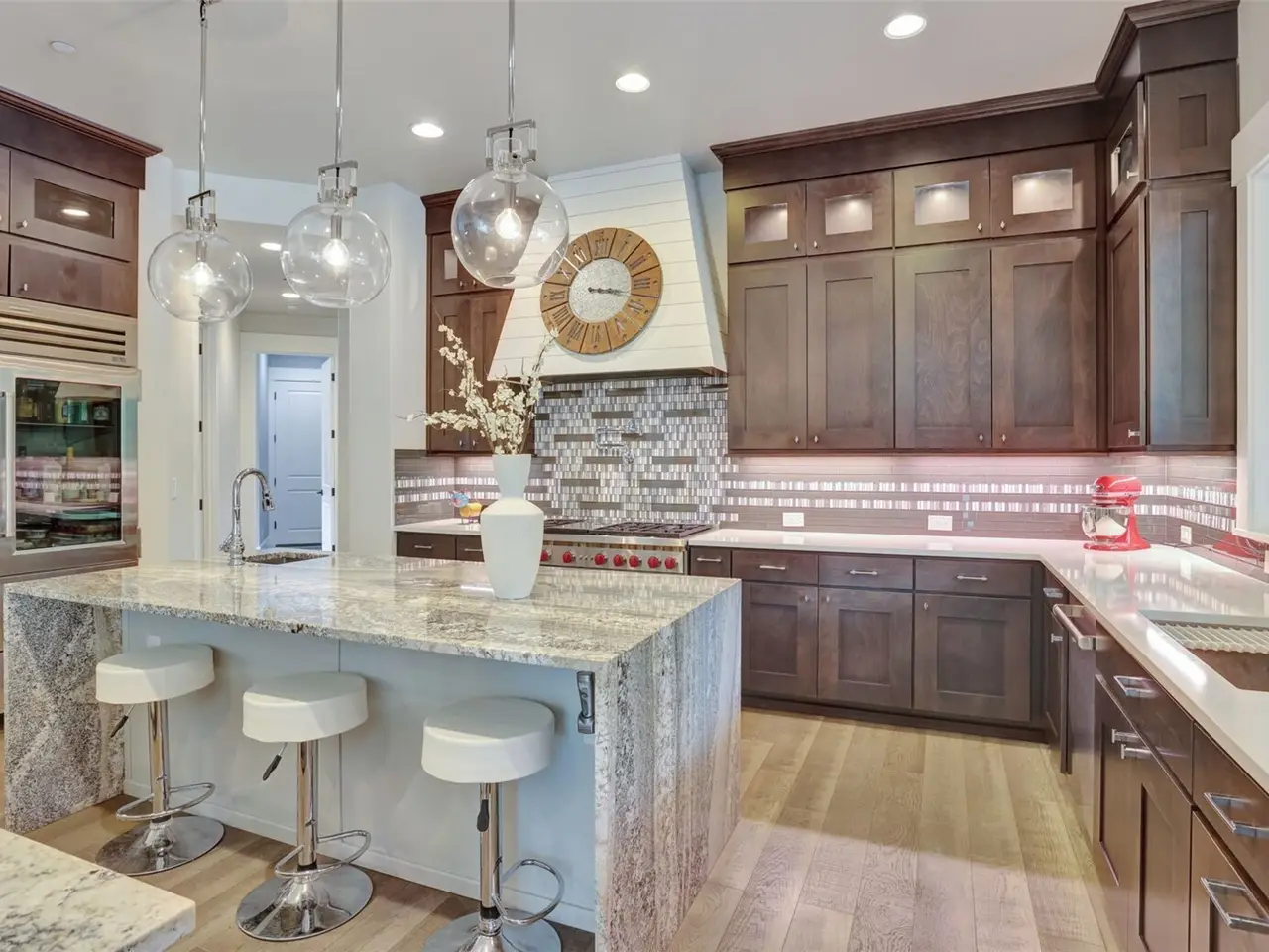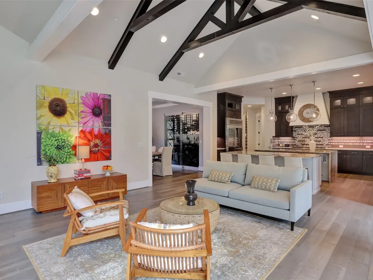 This stunning 4,560 sq.ft. custom-built home on nearly 5 acres offers contemporary elegance at its finest. A grand, surfaced driveway leads you to this magnificent home. Enter to a great room w/ vaulted ceilings, wood beams, & floor-to-ceiling windows showcasing a professionally landscaped backyard oasis. The chef's kitchen boasts Wolf appliances, dual islands, & a SubZero Pro Refrigerator. The formal dining room features a temperature-controlled wine wall. The opulent primary suite offers a fireplace & spa-like ensuite. Additional bedrooms w/ private baths, a flex room, & a spacious rec room above the 5-car garage. Enjoy a swim spa, hot tub, & covered/heated outdoor kitchen. Ideal for those craving privacy, luxury, & top-tier amenities.
