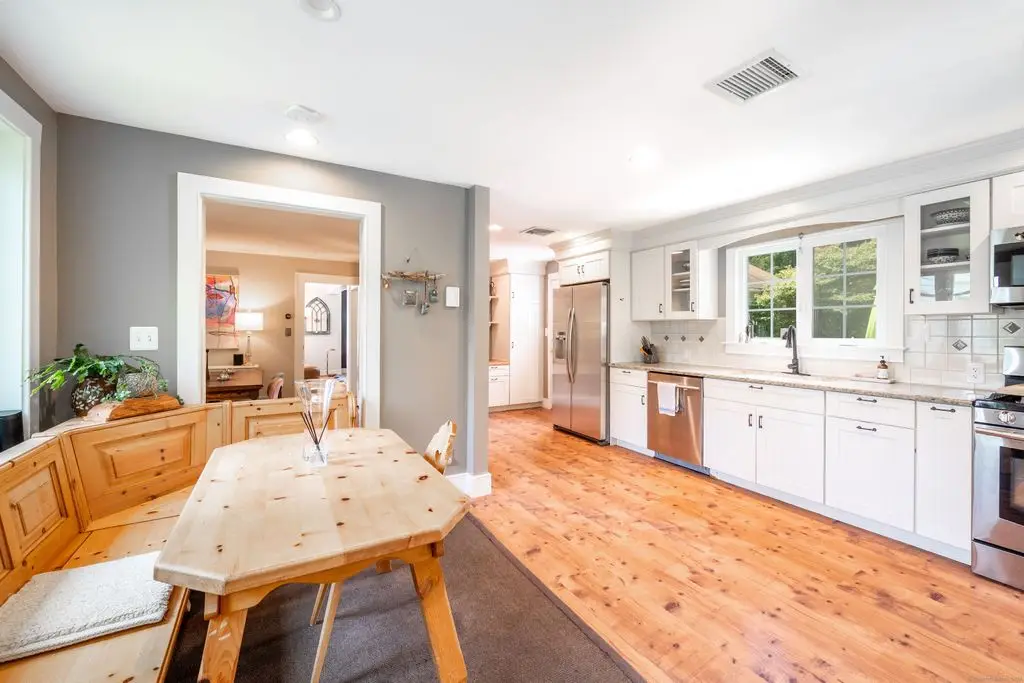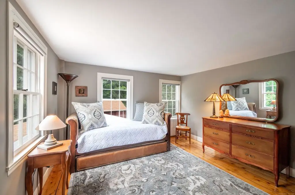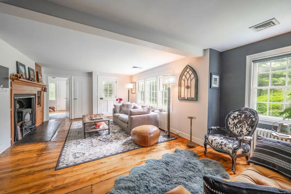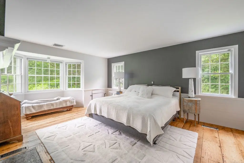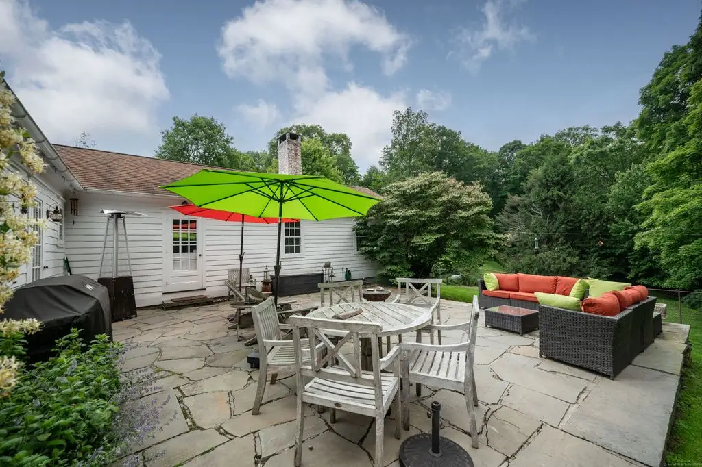 This charming 1870 antique home is pure perfection conveniently located in West Redding. The secluded 3+ acre property with rolling landscape and exquisite perennial gardens with old stone walls is a true gem with beautiful period home features, wide-planked floors and 5 working fireplaces. The master suite with fireplace and full bath is conveniently located on the main floor with private access to the patio, with second bedroom or office en-suite. Charming Eat-in Kitchen features Granite Counters and adjacent dining room with wood stove. The Sunny Living Room has its own fireplace with beautiful wide-Board floors. A Family room with an electric stove and an additional full bath is located on the Main floor. Upstairs features 2 more bedrooms, 1 full bath and an office that has built-ins and hardwood floors. The rear patio offers stunning sunset views in a very private setting. The Green House is an added perk for gardeners or, with running water and electricity, can be easily converted to an outdoor spa. The above ground propane tank for gas stove, grill and whole house generator is located in the back yard. Three zoned nest system is included and the basement heat can be managed from the main floor. Great location with easy access to the metro train station, Rt 7, Merritt Parkway and I 84. Only 1 hour from NYC and conveniently minutes from Main street with many fine restaurants, pubs, shops, markets and minutes from public schools and Library.