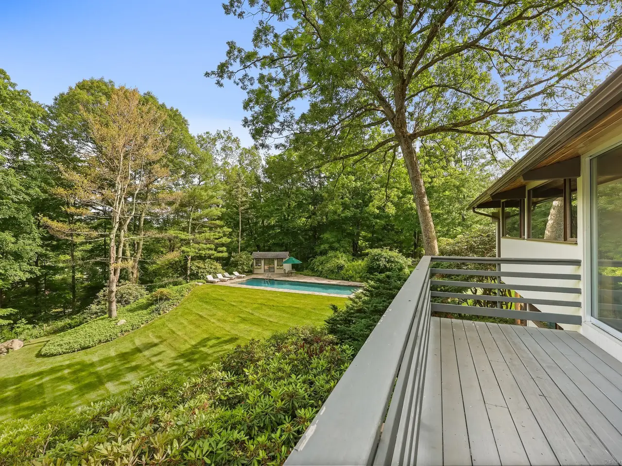 Never before on the market! A true once-in-a lifetime opportunity to own an architectural gem! This custom mid-century deck house, built and lovingly maintained by its original owners, has been thoughtfully expanded and updated over the years to meet the evolving needs of modern living-all while preserving its timeless design. Flooded withnatural light and offering unmatched privacy, this home is perfectly sited on a stunning 2.48 -acre parcel. Mature trees, lush rhododendrons and sweeping views of surrounding open space create an idyllic retreat just 6 minutes from Georgetown Center, Carluccio's market and the Redding Metro North train station. Key Features include: **A 15x50 Gunite heated lap pool with bluestone patio and outdoor lighting, **A separate 160SF pool cabana with bath and its own dedicated septic system, **A 600SF Heated and Cooled Artist/Yoga studio- Featuring Vaulted ceilings, skylights, beams, and designer lighting. **A 720SF Detached Two-Car Garage with additional storage and attached workshop/potting room, ** two large wooden framed detached sheds for wood and tool storage, **Multiple outdoor entertaining areas including a partially covered, expansive and elevated wrap-around-deck overlooking the stunning grounds and pool area. With nature views from every room and abutting acres of preserved open space, this property offers peace, inspiration and the rare chance to own a truly iconic and magical piece of West Redding history! This is your needle in a haystack The one you've been waiting for. Do not miss!!