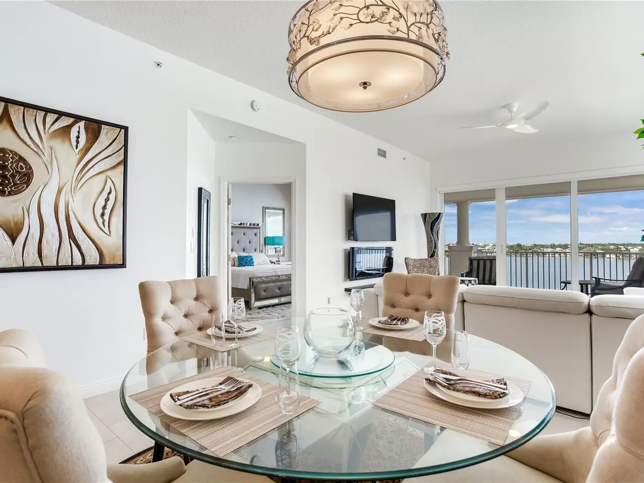WATERFRONT LUXURY LIVING FURNISHED | 3 BEDROOM, 3 BATH CORNER CONDO WITH PANORAMIC VIEWS Welcome to this stunning corner residence at 17717 Gulf Blvd, Unit 606, offering the ultimate Florida coastal lifestyle with breathtaking views of the Intracoastal Waterway and the Gulf of Mexico. From sunrise over the water to glowing sunset skies, this home captures it all from its expansive, private balcony—perfect for relaxing or entertaining with friends and family. Step inside and be greeted by an open-concept floor plan filled with natural light. The gourmet kitchen features black granite countertops, an island with seating, sleek stainless-steel appliances, double ovens, and warm wood cabinetry. The adjoining dining and living spaces offer an effortless flow, accented by tray ceilings, designer lighting, and polished tile floors throughout. The primary suite is a true retreat, complete with balcony access, serene water views, and a spa-style bath with dual vanities, a soaking tub, and a separate walk-in shower. Each guest bedroom offers its own en suite bath, providing privacy and comfort for family and guests. Enjoy resort-style amenities including a waterfront pool and spa, fishing dock, and direct access to the beach just steps away. Experience coastal living at its finest—where every day feels like a vacation and every evening ends with a sunset over the Gulf.