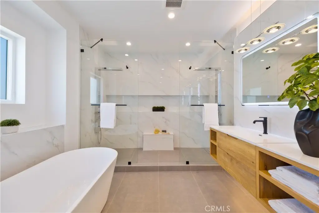 Step into modern luxury with this beautifully crafted 4-bed, 3.5-bath detached townhome, where thoughtful design and high-end finishes come together to create the perfect living space. Wide-plank oak engineered hardwood flooring complements the sleek, custom-built cabinetry and durable porcelain countertops in the kitchen. High-end appliances, including a JennAir range, refrigerator, microwave drawer, and Bosch dishwasher, ensure a top-tier culinary experience, while under-cabinet lighting and a stylish dry bar add extra flair. The master suite is a true retreat, featuring a spa-like bathroom with double-glazed porcelain tiles and a two-person shower. Custom built-in closets provide ample storage, and imported solid Nordic Oak interior doors from Spain, complete with magnetic latches, add a sophisticated touch. Designed for efficiency and convenience, this home is equipped with a high-efficiency electric heat pump for heating and air, a hybrid water heater, and a central vacuum system. Nine Philadelphia Solar Panels and a SolarEdge Hybrid Inverter make it battery-ready for energy-conscious living. Tech-savvy features include pre-wiring for surround sound, built-in speaker connections in the family room and master bedroom, and LED touch mirrors for a modern finish. The spacious walk-in laundry room with a sink, an electric vehicle charging outlet, and a steel-back double-insulated garage door further enhance functionality. Vinyl fencing around your lush backyard provides privacy, and the home’s seamless indoor-outdoor flow makes it perfect for both relaxing and entertaining. When you buy here, you're buying a lifestyle!