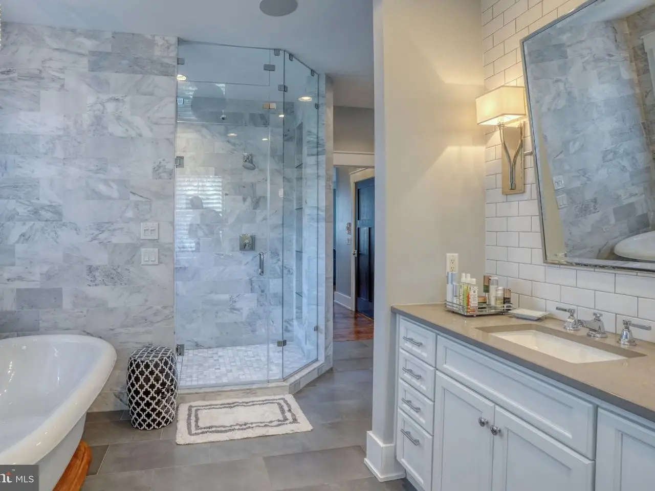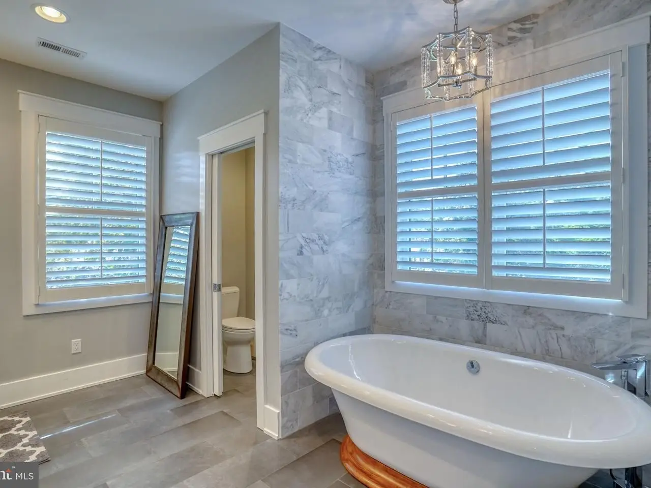 Spa-inspired bath with heated floors