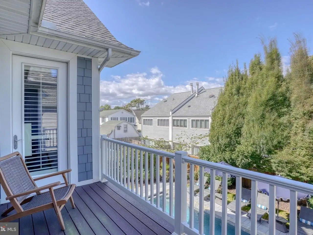 Second-floor deck overlooking pool