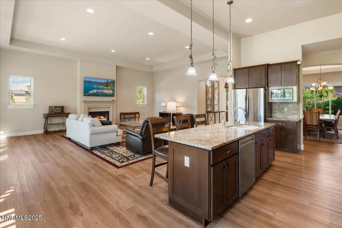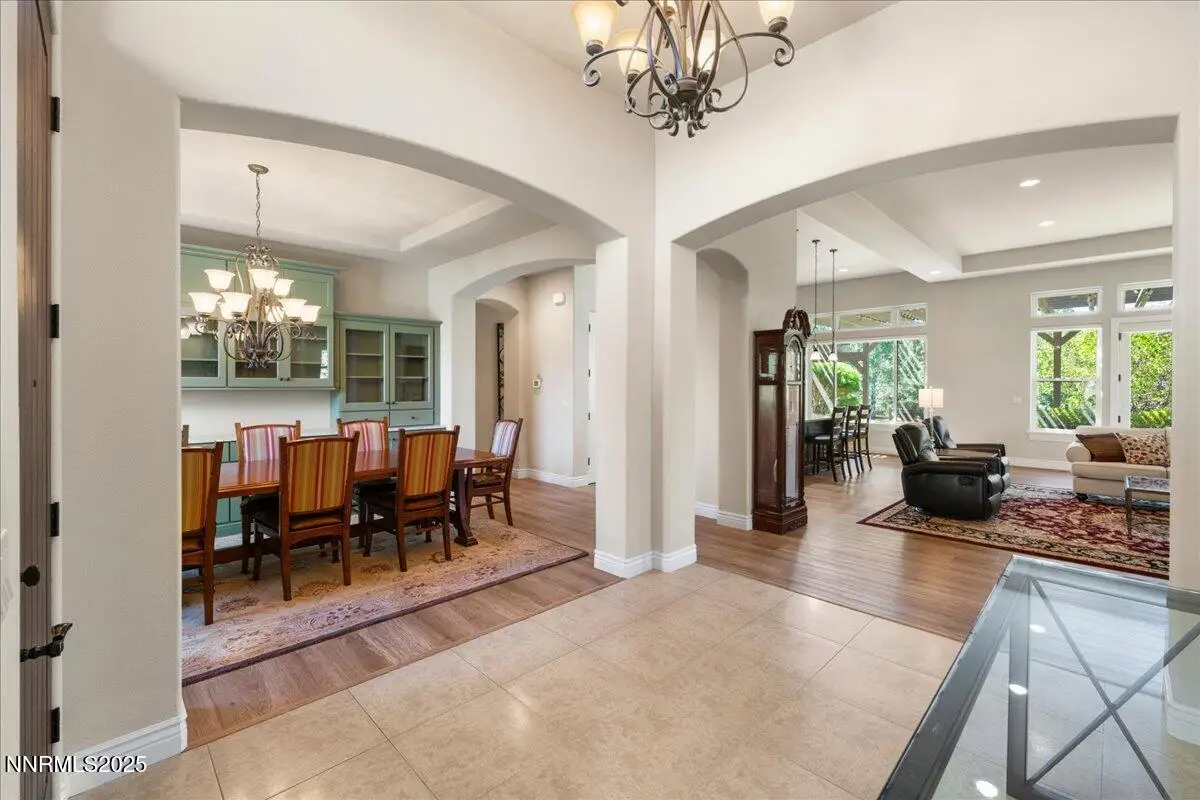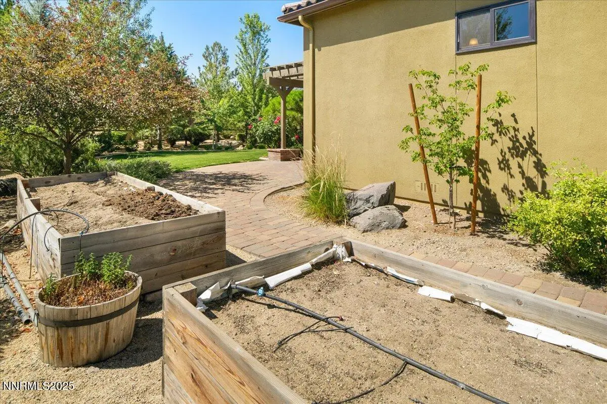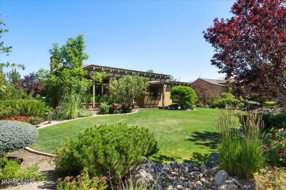 Beautiful Single-Level Home in the Gated Monte Rosa Community. Tucked within the secure gates of Monte Rosa, this thoughtfully designed SINGLE LEVEL home combines quality construction with a bright, open floorplan. Surrounded by mature, park-like landscaping, the property with picturesque views of Mt. Rose and the Sierra Mountains. Enjoy spacious living with tall ceilings, a great room layout perfect for entertaining, and a formal dining room with custom built-ins. The large primary suite features dual walk-in closet. A charming gated front courtyard welcomes you, while the backyard offers a covered pergola, paver patios, and raised garden beds—ideal for relaxing or outdoor dining. Additional features include a three-car garage, paver driveway, and light-filled interiors throughout. Located just oF Mt. Rose Highway, you're minutes from shopping, hiking trails, Mt. Rose Ski Resort, and only 15 minutes to the airport. This well-maintained home offers rare comfort and convenience in one of Reno's most desirable gated communities.