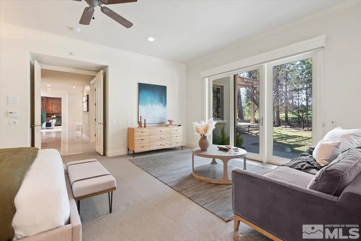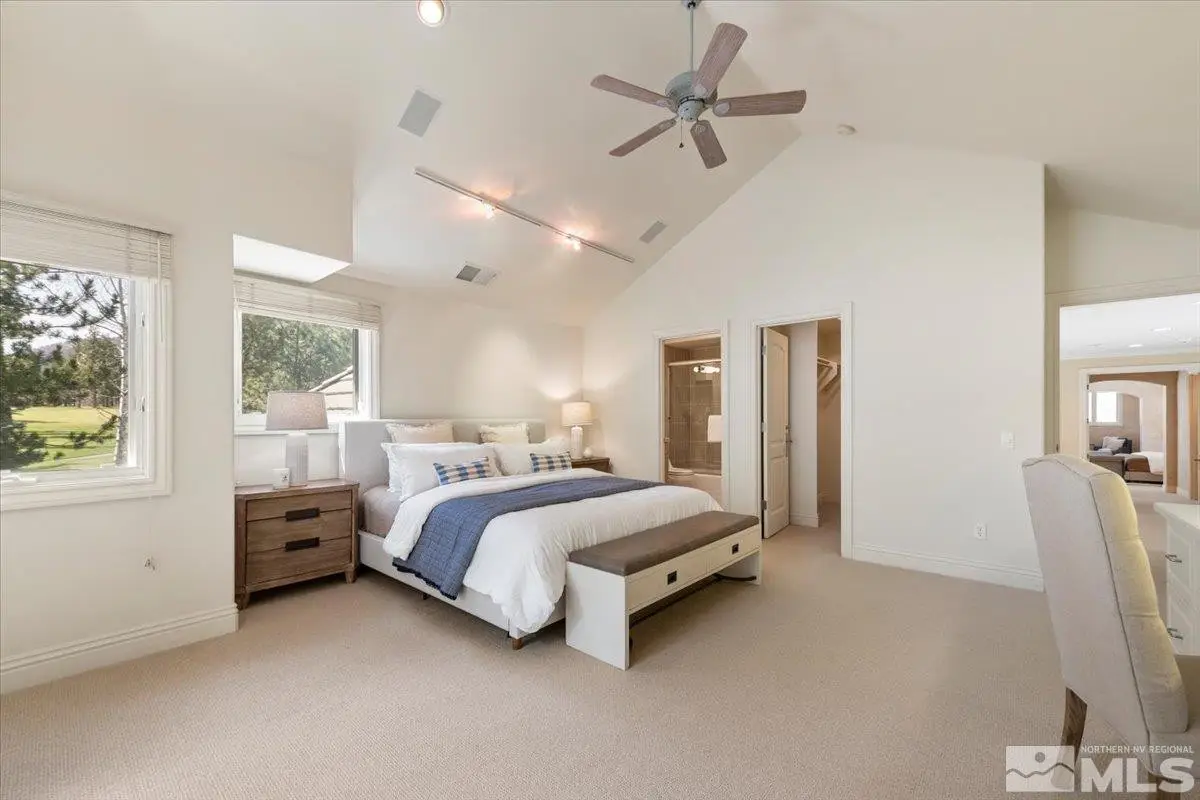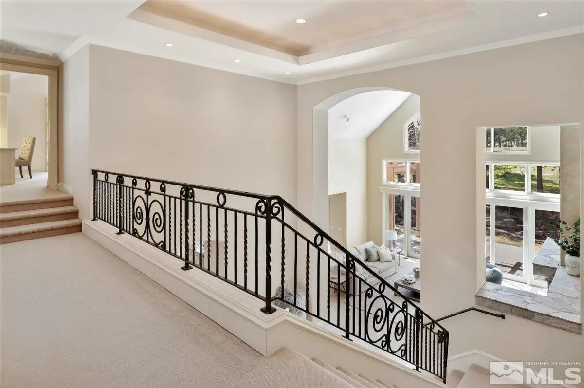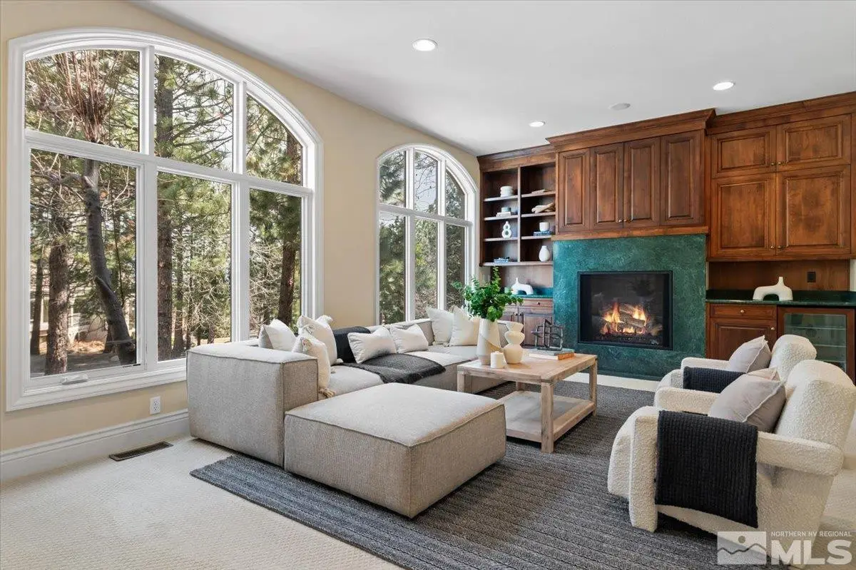 Breathtaking panoramic views in Montreux, overlooking the 14th & 15th fairways, Sierra mountains & tall pines. Soak in the Southern exposure through floor-to-ceiling windows. Featuring 2 spacious primary suites (up & down), 4 en suite Bedrooms in total, 5 baths, a den and a bonus room, the open-concept design is ideal for entertaining. Sophisticated yet warm, this home offers luxury and comfort in perfect harmony. Montreux Sports membership included. Upgrades abound including a large rock fireplace in the family room, a brand new 48-inch Sub-Zero, large walk-in closets, garage heater, central vac, whole house stereo system, expansive landscaping, etc. Montreux is Renos premier gated Nicklaus golf course community. Ideal location, only 20 minutes to the Reno/Tahoe Airport & 25 mins to Lake Tahoe. Close to the entry & miles of trails.