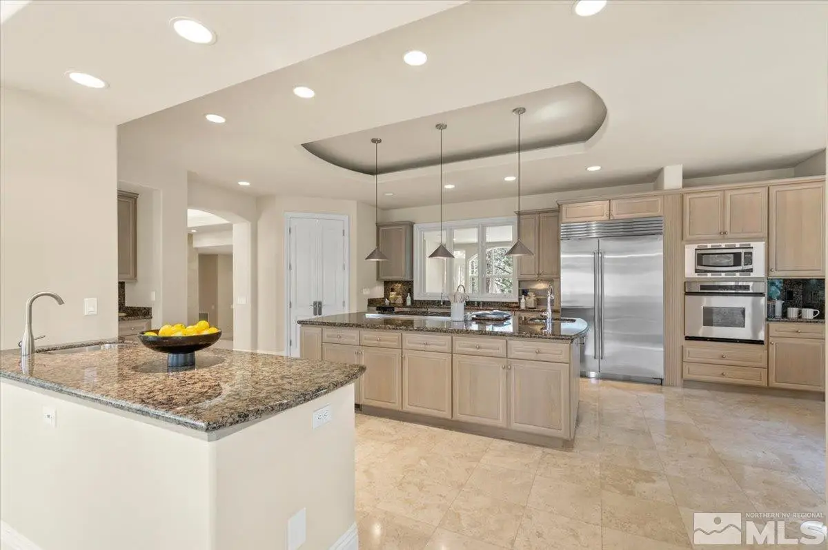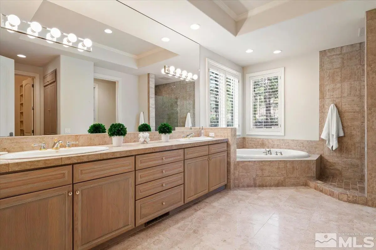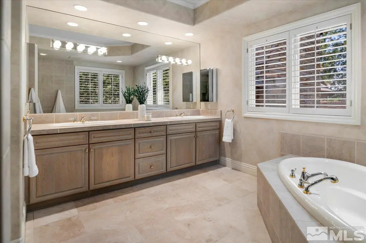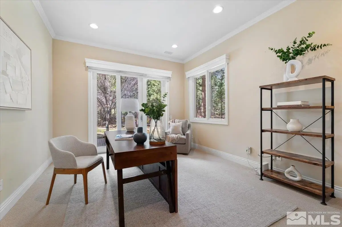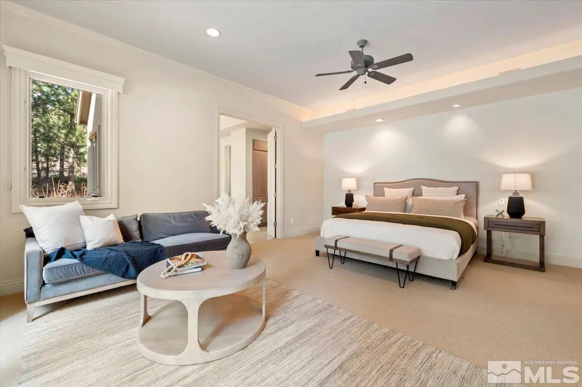 Breathtaking panoramic views in Montreux, overlooking the 14th & 15th fairways, Sierra mountains & tall pines. Soak in the Southern exposure through floor-to-ceiling windows. Featuring 2 spacious primary suites (up & down), 4 en suite Bedrooms in total, 5 baths, a den and a bonus room, the open-concept design is ideal for entertaining. Sophisticated yet warm, this home offers luxury and comfort in perfect harmony. Montreux Sports membership included. Upgrades abound including a large rock fireplace in the family room, a brand new 48-inch Sub-Zero, large walk-in closets, garage heater, central vac, whole house stereo system, expansive landscaping, etc. Montreux is Renos premier gated Nicklaus golf course community. Ideal location, only 20 minutes to the Reno/Tahoe Airport & 25 mins to Lake Tahoe. Close to the entry & miles of trails.