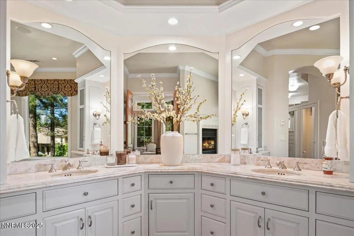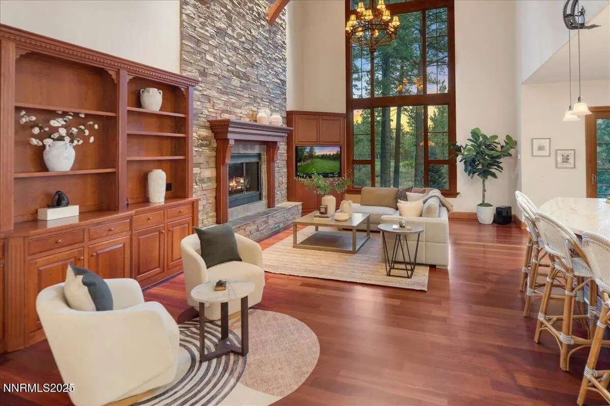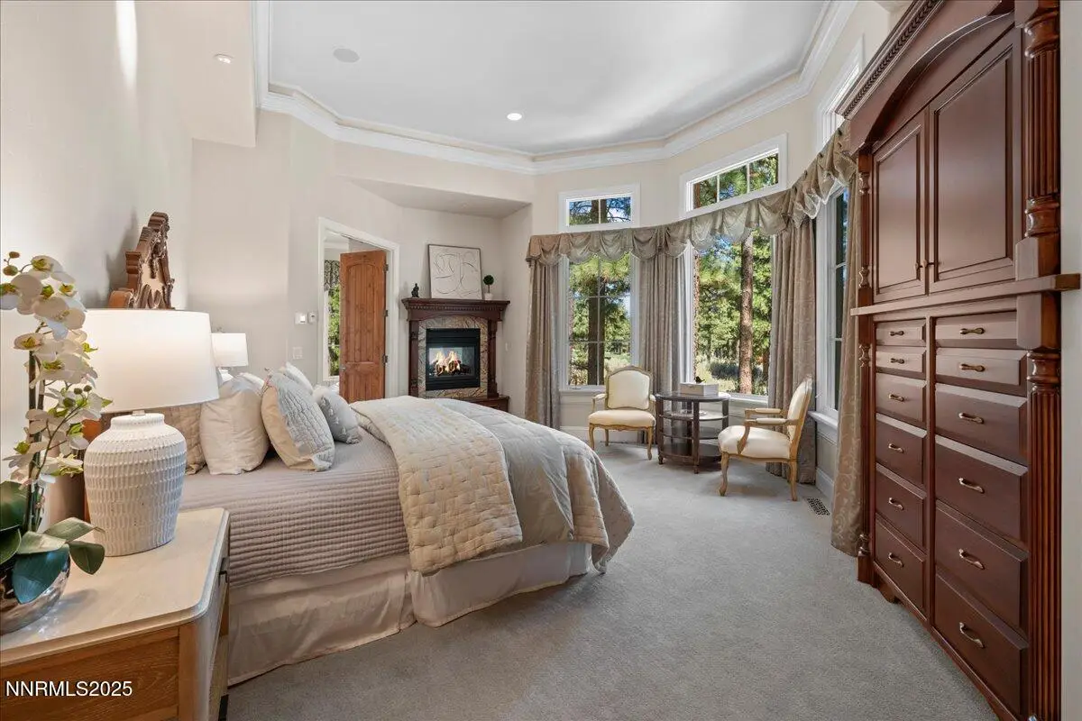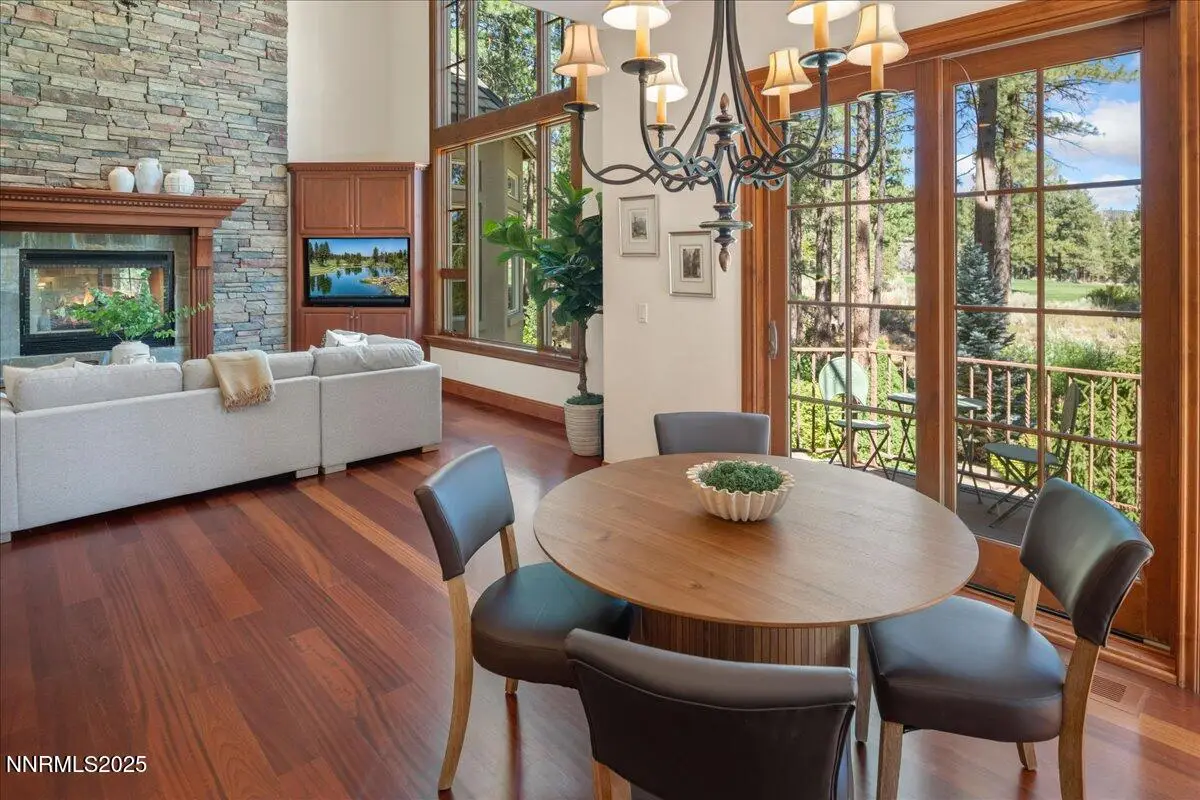 Elegant custom estate in Montreux that sits at the end of a cul-de-sac on the 13th Fairway of the Jack Nicklaus Signature golf course. This home has Hydronic heating on all floors, plus forced air backup. The Great room has 26' custom fireplace and open beam trusses, Brazilian cherry flooring with a new Lutron lighting system. While in the home you are in a beautiful mature forest setting. Main floor has the primary bed/bath, guest suite/bath, living room, kitchen, great room, dining room, laundry room, garages, deck and a Sunroom. Upstairs are 2 bedrooms, 2 bathrooms, office and game room/study. Epoxy floors are in all of the garages. Great floor plan by a renowned local architect.