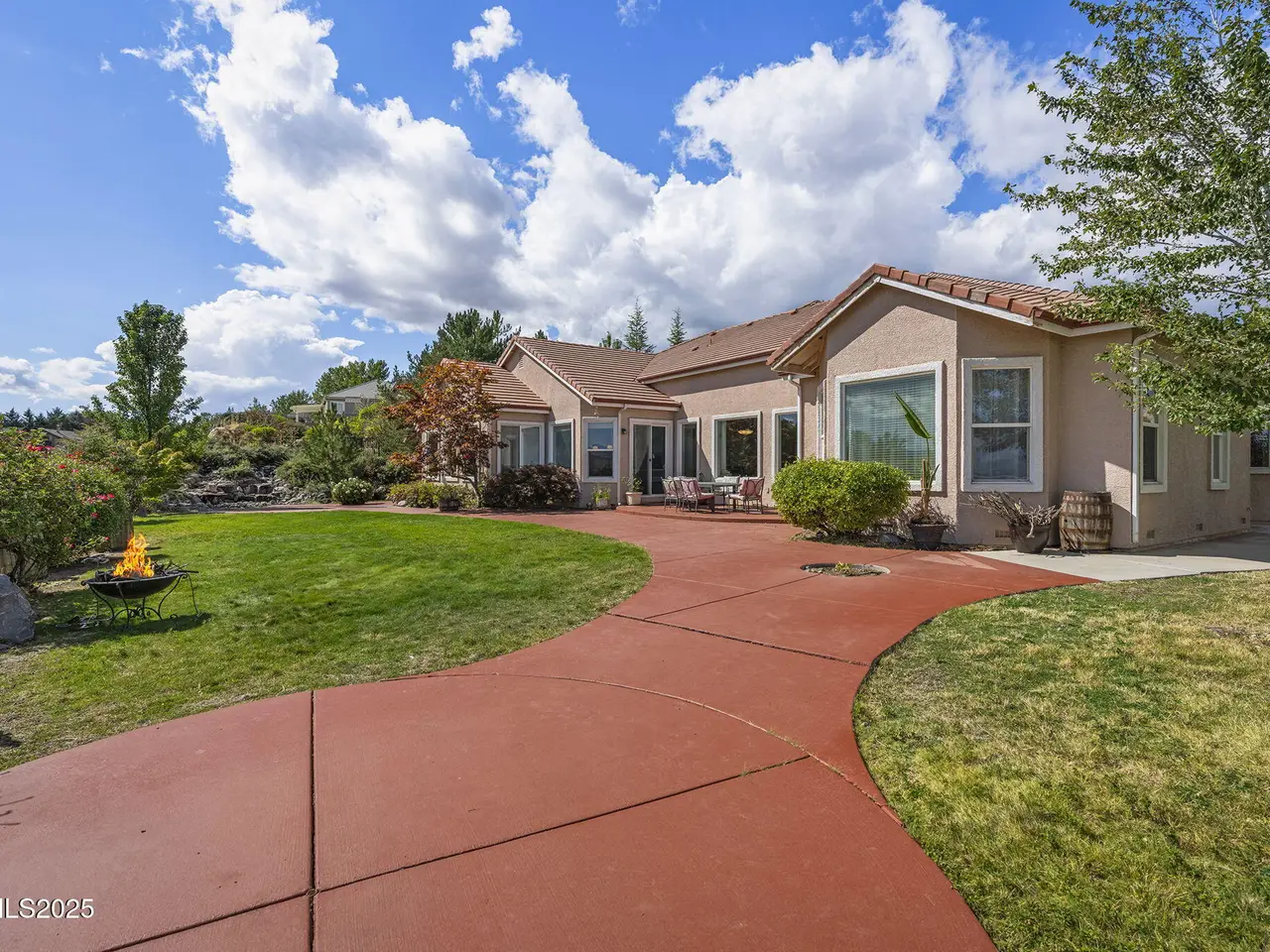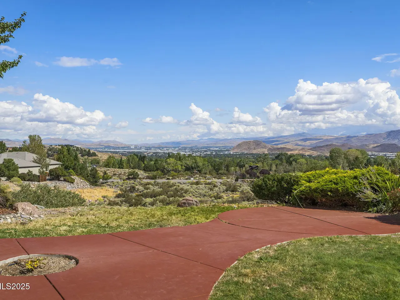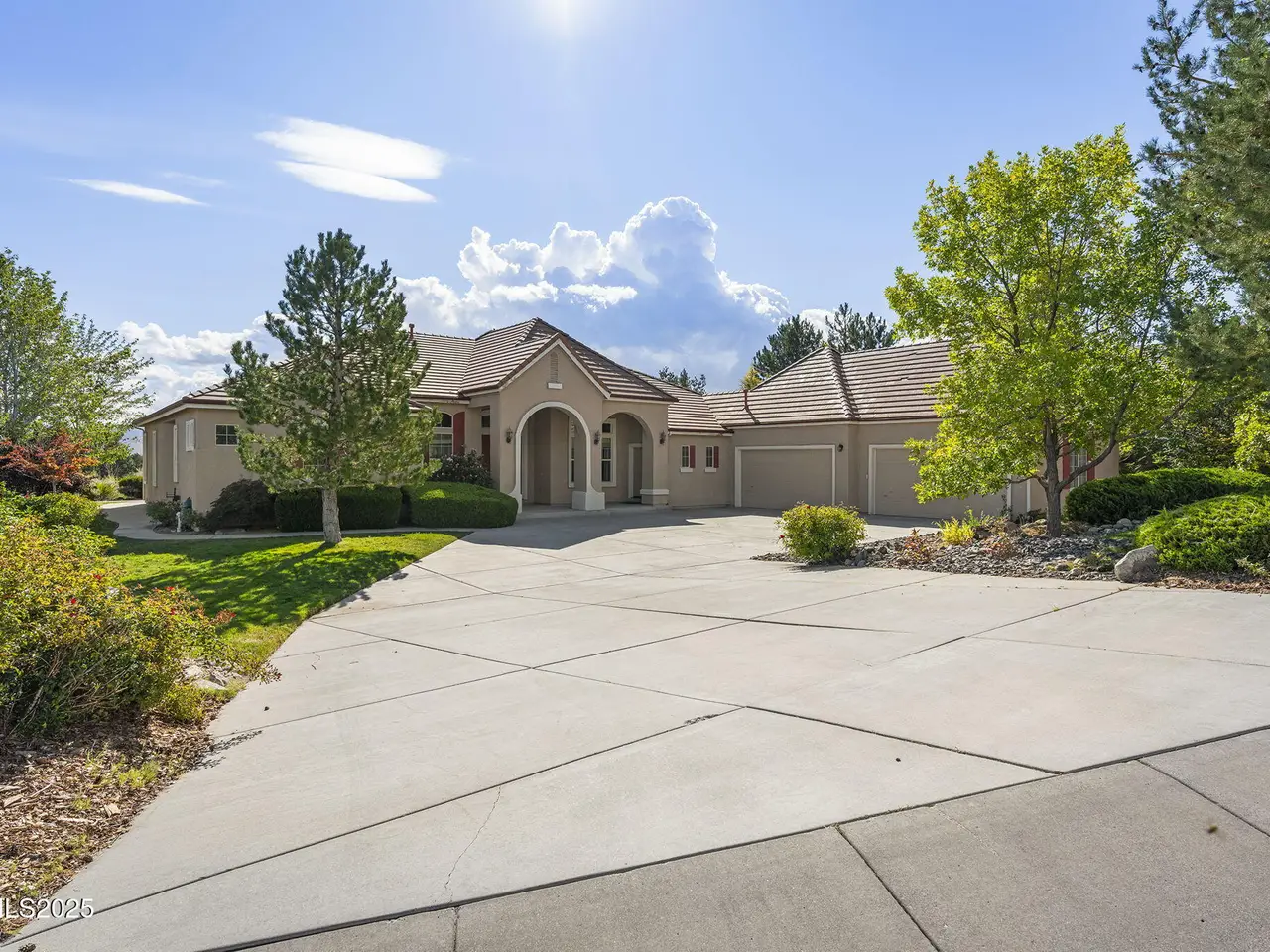 Experience elevated living in this elegant single-story home perched in the desirable Southwest Reno foothills in the prestigious community of Southwest Vistas. Perfectly situated on a spacious lot, this property offers unobstructed panoramic views of the surrounding mountains, valleys, and sweeping Nevada skies—creating a serene backdrop for everyday life. Close to top rated schools, major shopping and quick access to Mt. Rose. From the moment you arrive, the circular driveway and stately covered entry welcome you inside to soaring ceilings, architectural columns, and a bright, open floor plan designed for both comfort and style. The formal living area features expansive windows framing breathtaking vistas, a cozy gas fireplace, and an effortless flow into the dining space—ideal for hosting gatherings or enjoying quiet evenings in. The open kitchen is both functional and inviting, with a center island breakfast bar, abundant cabinetry, double ovens, and a walk-in pantry. It seamlessly connects to casual dining and family spaces, making it the heart of the home. Retreat to the luxurious primary suite, where picture windows capture the views and the spa-like bath features a soaking tub framed by columns, dual vanities, and a generous walk-in closet. Additional bedrooms are spacious and private, perfect for family, guests, or a home office. Step outside to your own slice of Nevada beauty. Expansive patios and walking paths meander through mature landscaping and natural rock features, offering multiple spaces to relax, entertain, or simply take in the fresh mountain air. Whether you're sipping morning coffee while watching the sunrise or hosting sunset dinners, the views will never disappoint. Located in a tranquil, established neighborhood with easy access to hiking trails, golf, shopping, dining, and top-rated schools, this home blends privacy, comfort, and convenience. With its timeless design, generous living spaces, and unmatched scenery, 5350 N Elk River Road is more than just a home—it's a lifestyle.