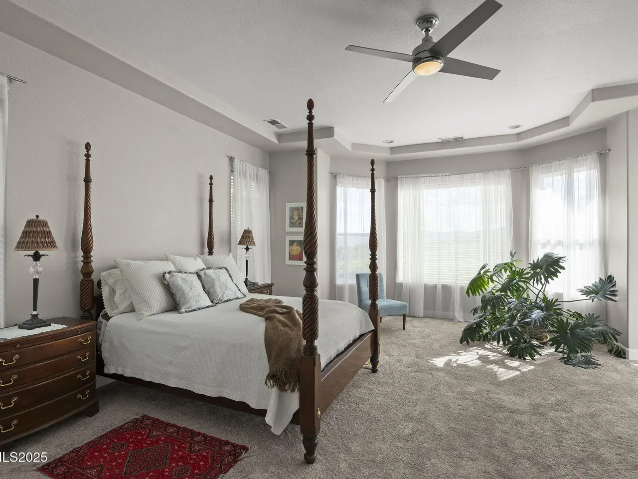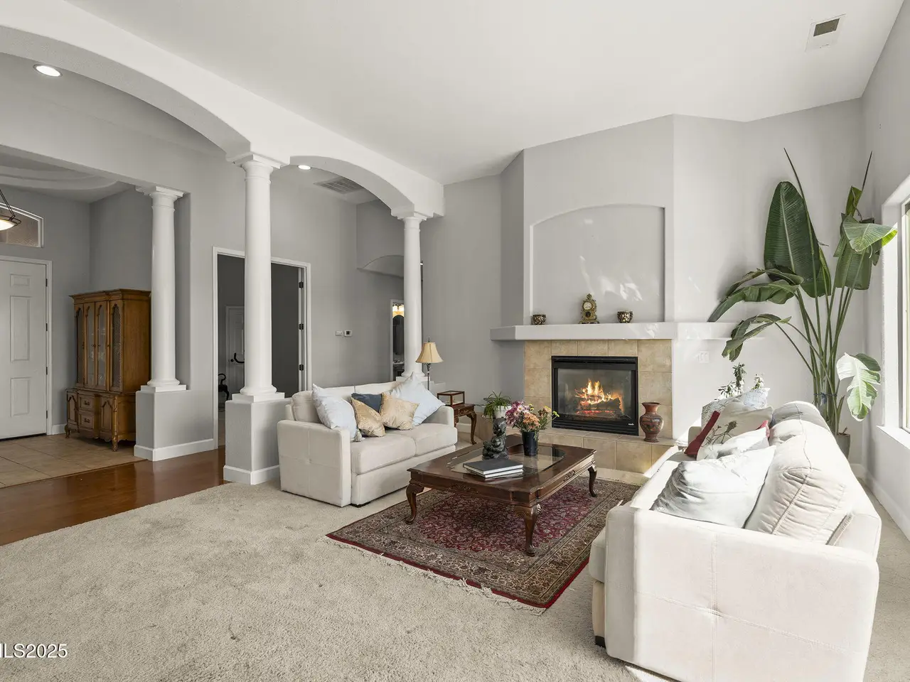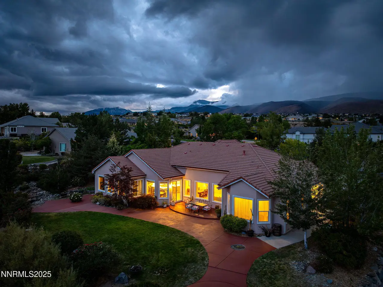 Experience elevated living in this elegant single-story home perched in the desirable Southwest Reno foothills in the prestigious community of Southwest Vistas. Perfectly situated on a spacious lot, this property offers unobstructed panoramic views of the surrounding mountains, valleys, and sweeping Nevada skies—creating a serene backdrop for everyday life. Close to top rated schools, major shopping and quick access to Mt. Rose. From the moment you arrive, the circular driveway and stately covered entry welcome you inside to soaring ceilings, architectural columns, and a bright, open floor plan designed for both comfort and style. The formal living area features expansive windows framing breathtaking vistas, a cozy gas fireplace, and an effortless flow into the dining space—ideal for hosting gatherings or enjoying quiet evenings in. The open kitchen is both functional and inviting, with a center island breakfast bar, abundant cabinetry, double ovens, and a walk-in pantry. It seamlessly connects to casual dining and family spaces, making it the heart of the home. Retreat to the luxurious primary suite, where picture windows capture the views and the spa-like bath features a soaking tub framed by columns, dual vanities, and a generous walk-in closet. Additional bedrooms are spacious and private, perfect for family, guests, or a home office. Step outside to your own slice of Nevada beauty. Expansive patios and walking paths meander through mature landscaping and natural rock features, offering multiple spaces to relax, entertain, or simply take in the fresh mountain air. Whether you're sipping morning coffee while watching the sunrise or hosting sunset dinners, the views will never disappoint. Located in a tranquil, established neighborhood with easy access to hiking trails, golf, shopping, dining, and top-rated schools, this home blends privacy, comfort, and convenience. With its timeless design, generous living spaces, and unmatched scenery, 5350 N Elk River Road is more than just a home—it's a lifestyle.