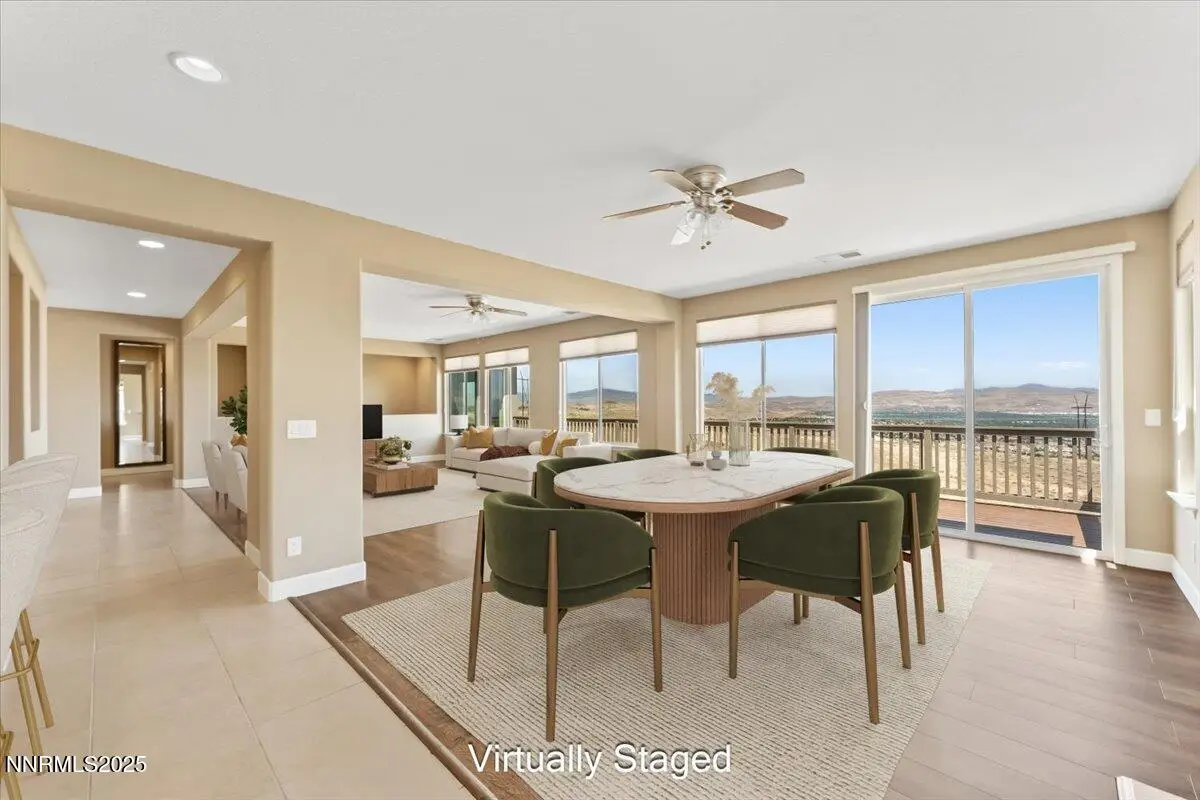 Some of the BEST VIEWS and elevated living with special financing rates are now available - you will find it all above the fray in the University Ridge community, offering breathtaking views of Downtown Reno/Sparks and the Sierras beyond! Be sure to arrange your visit during the evening as the skyline and valley transform into spectacular views of city lights below and don't forget about the opportunities to experience multiple Independence Day fireworks shows and the epic Balloon Races. Seller has secured special financing rates and this amazing home qualifies for interest rates in the low 5 percent range with seller closing cost assistance. Starting from the private front entrance vestibule, this expansive 3,770sf home provides ample space to host special gatherings or simply enjoying large family get-togethers with ease, effortlessly flowing with its abundant natural light, from the spacious main level great room, adjoining kitchen, to the extensive rear deck. Additionally, the separate lower-level walk-out/day-light basement features a central gathering room, considerable storage space, and a large paver patio for extended outdoor activities. Both levels offer commanding views of Northern Nevada's natural 4-season beauty, which reminds us of why we call this home. The entertainer's kitchen is equipped with stainless steel appliances, pull-out cabinetry shelves, a breakfast bar, breakfast nook, and opens to the spacious great room with a fireplace and built-in niche. The large primary suite gets bathed in glorious morning sunrises, includes access to the rear deck with stunning views, a large garden tub with an adjoining shower, double vanities, and a walk-in closet. Notable features include one of the largest lots at .62acres, substantial storage space on the lower level to tuck away any holiday items or could be the perfect wine cellar for any wine connoisseur. Enjoy any season with dual HVAC systems, an oversized laundry/mud room that can accept gas or electric dryers, and a finished garage with sealed floors. Your home is just a quick walk to the neighborhood park and offers easy access to dining, shopping, and reputable schools, and major highways. Truly a special home with its 6 bedrooms, 3.5 bathrooms, 3-car garage, and for any of life's adventures... your search ends here.