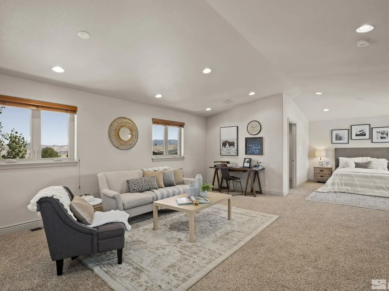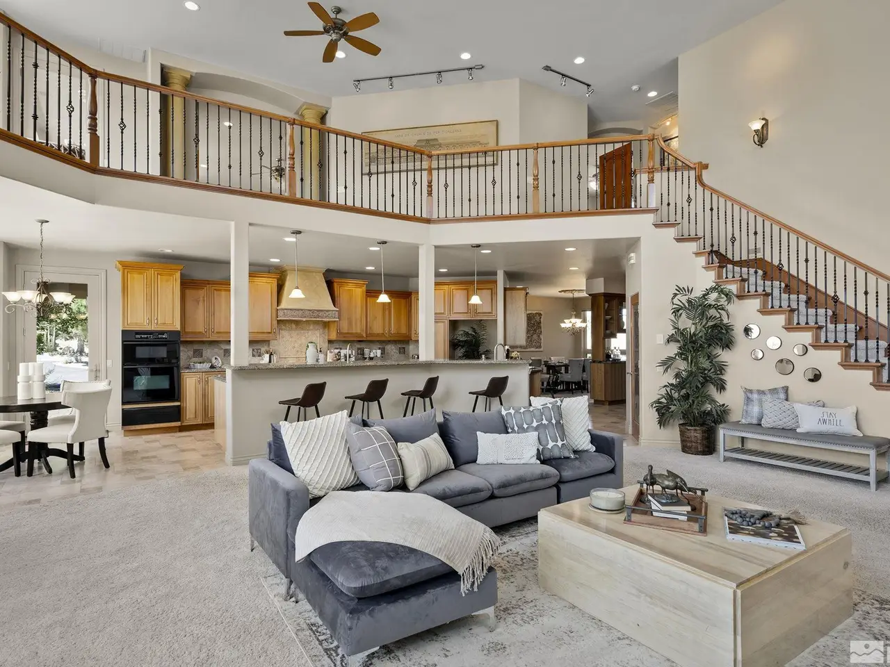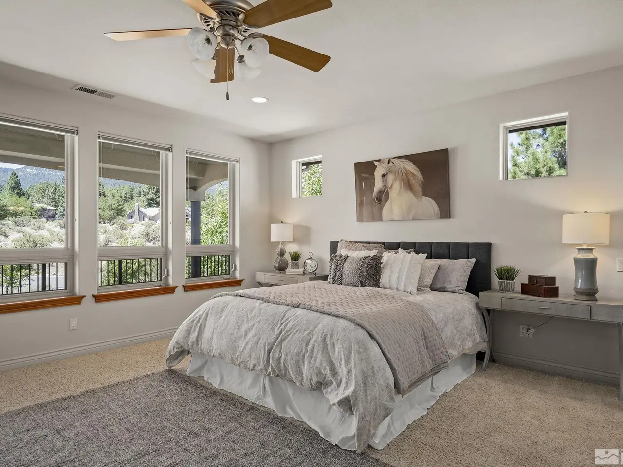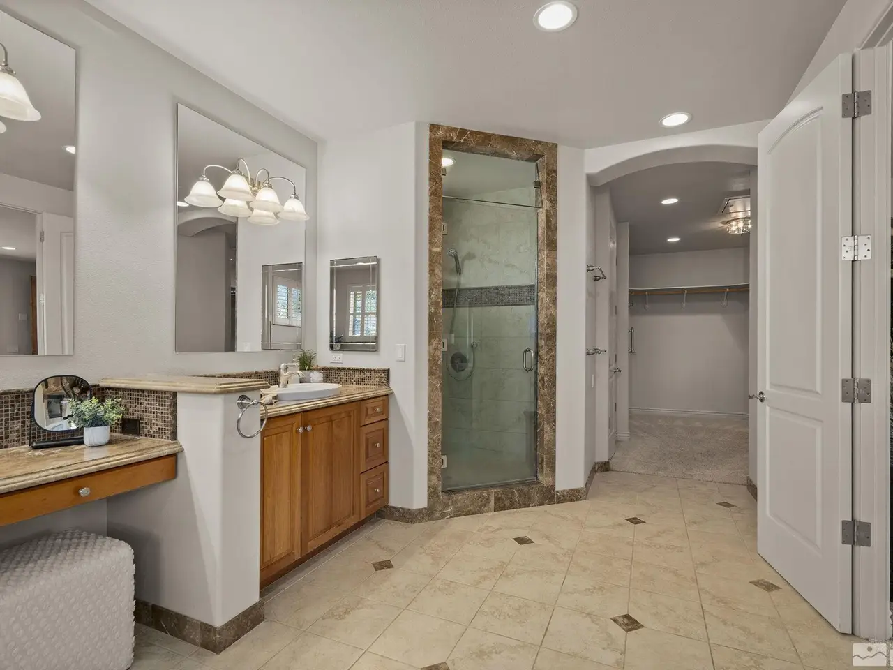 Welcome to the ideal St. James’s Village sanctuary. Located in the esteemed gated community halfway between the shores of Lake Tahoe & the conveniences of Reno.This forested retreat offers uncompromising views of the Sierra Mountains, captured through expansive windows. Every box will be checked, 5 Bedrooms in the main house, plus a theater and countless custom touches. The garages are something you dream about 6+, bring your largest RV and all the toys. Ideal In-Law’s unit with nearly 1000 SF, over garage.