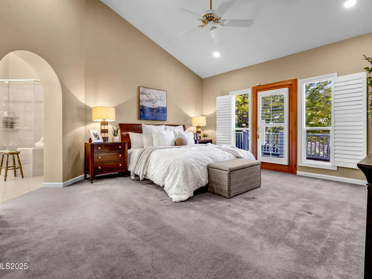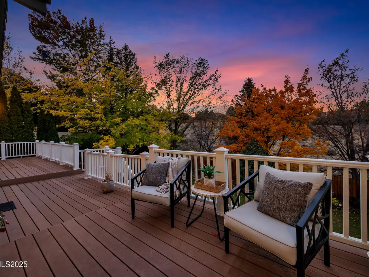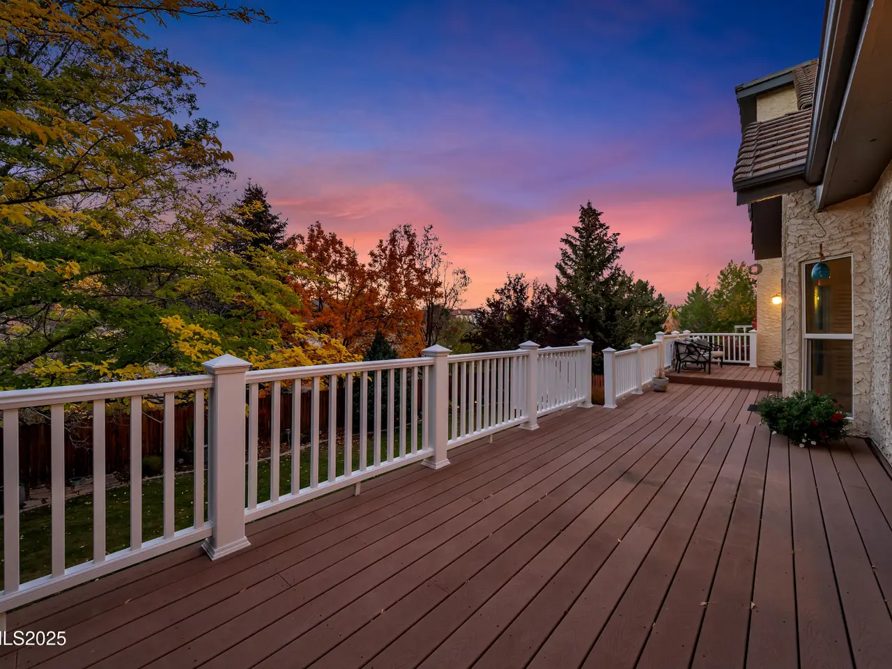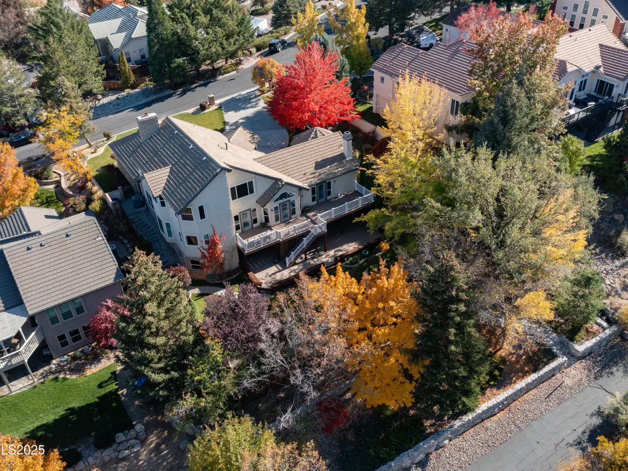 This majestic home, nestled on one of Reno's most picturesque streets, offers an unparalleled living experience. Centrally located in SW Reno, it provides convenient access to all the amenities and attractions you desire. Step into quality craftsmanship and custom details in this meticulously maintained home. The main level boasts beautiful wood floors, plantation shutters, and high ceilings. An inviting entry features a sweeping staircase beneath a dramatic cathedral ceiling. The living and dining rooms are open yet defined, offering tree views through large windows and deck access through French doors. The kitchen is a chef's dream, featuring a corner sink with windows overlooking mature trees, a walk-in pantry, a center island with a breakfast bar, an appliance garage, a trash compactor, a dining nook, and high-end appliances. It overlooks a warm and inviting family room, complete with a wood-burning fireplace and ceiling fan. A bar with display cabinets, a sink, and granite counters makes entertaining effortless - the perfect spot to relax and enjoy a game or movie. The large primary bedroom, conveniently located on the main floor, offers tall ceilings, ceiling fan, and French doors leading to the deck. Its spacious en-suite bathroom includes a soaking tub, a roomy shower, and an extensive vanity with two sinks, complemented by separate his and hers closets. The second story features a large loft/office with built-in shelves and double doors for privacy, along with three generous bedrooms and a full bathroom with a tub. The walk-out basement offers endless possibilities: multi-generational living, a teenage hangout, family entertainment space, a man cave, additional office space, or simply room to spread out. The spacious main area includes a wood-burning fireplace, a nook ideal for a game table, and easy access to the lower deck and backyard. There's also a large bedroom and full bathroom, plus a bonus room, perfect for an in-law unit or guest suite. Abundant storage is available in a huge laundry/utility room and additional storage closets. Outside, mature and well-maintained landscaping on the expansive half acre lot provides picturesque views from every window. Two beautiful Trex-style decks, one on the main level with convenient stairs to the ground level deck. A wonderful place for parties or relaxing afternoons. An extra-large, finished three-car garage features built-in cabinets and new paint. There is NO HOA. A private road maintenance agreement is 500 per year, and an access road easement in the back of the property is managed by the City of Reno. The kitchen refrigerator, washer, dryer and basement TV are included. The home also features a 2022 HVAC system and a newer water heater. Come visit this extraordinary home!