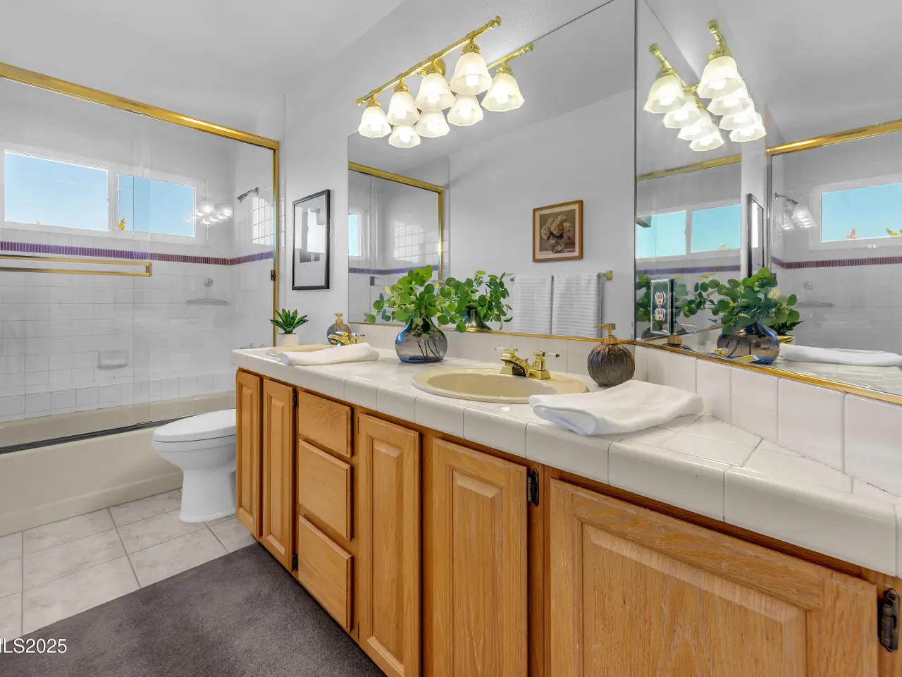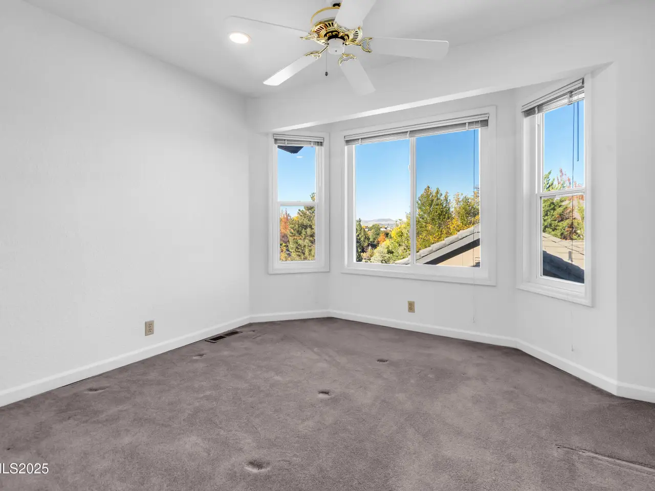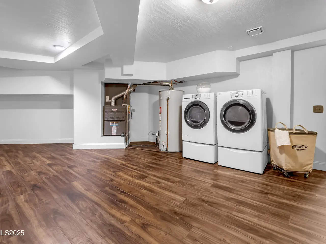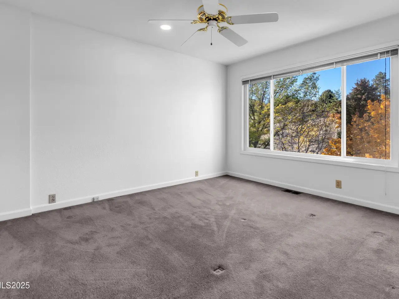 This majestic home, nestled on one of Reno's most picturesque streets, offers an unparalleled living experience. Centrally located in SW Reno, it provides convenient access to all the amenities and attractions you desire. Step into quality craftsmanship and custom details in this meticulously maintained home. The main level boasts beautiful wood floors, plantation shutters, and high ceilings. An inviting entry features a sweeping staircase beneath a dramatic cathedral ceiling. The living and dining rooms are open yet defined, offering tree views through large windows and deck access through French doors. The kitchen is a chef's dream, featuring a corner sink with windows overlooking mature trees, a walk-in pantry, a center island with a breakfast bar, an appliance garage, a trash compactor, a dining nook, and high-end appliances. It overlooks a warm and inviting family room, complete with a wood-burning fireplace and ceiling fan. A bar with display cabinets, a sink, and granite counters makes entertaining effortless - the perfect spot to relax and enjoy a game or movie. The large primary bedroom, conveniently located on the main floor, offers tall ceilings, ceiling fan, and French doors leading to the deck. Its spacious en-suite bathroom includes a soaking tub, a roomy shower, and an extensive vanity with two sinks, complemented by separate his and hers closets. The second story features a large loft/office with built-in shelves and double doors for privacy, along with three generous bedrooms and a full bathroom with a tub. The walk-out basement offers endless possibilities: multi-generational living, a teenage hangout, family entertainment space, a man cave, additional office space, or simply room to spread out. The spacious main area includes a wood-burning fireplace, a nook ideal for a game table, and easy access to the lower deck and backyard. There's also a large bedroom and full bathroom, plus a bonus room, perfect for an in-law unit or guest suite. Abundant storage is available in a huge laundry/utility room and additional storage closets. Outside, mature and well-maintained landscaping on the expansive half acre lot provides picturesque views from every window. Two beautiful Trex-style decks, one on the main level with convenient stairs to the ground level deck. A wonderful place for parties or relaxing afternoons. An extra-large, finished three-car garage features built-in cabinets and new paint. There is NO HOA. A private road maintenance agreement is 500 per year, and an access road easement in the back of the property is managed by the City of Reno. The kitchen refrigerator, washer, dryer and basement TV are included. The home also features a 2022 HVAC system and a newer water heater. Come visit this extraordinary home!