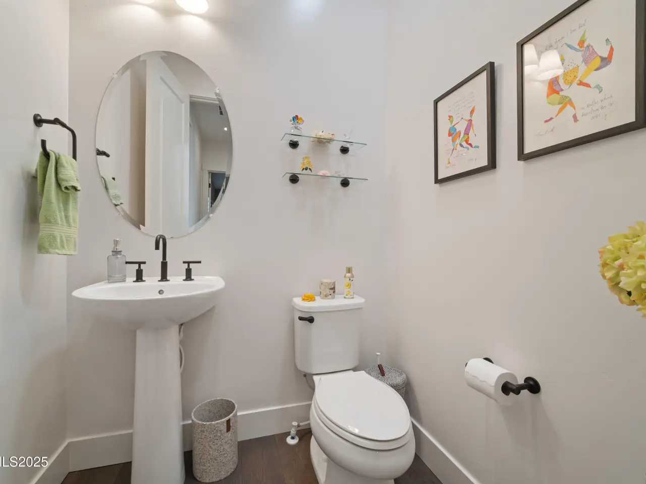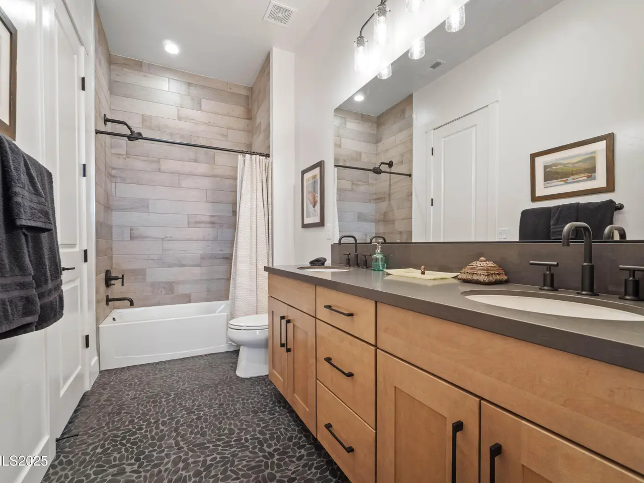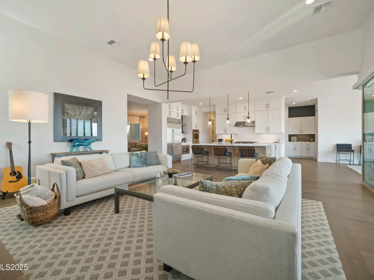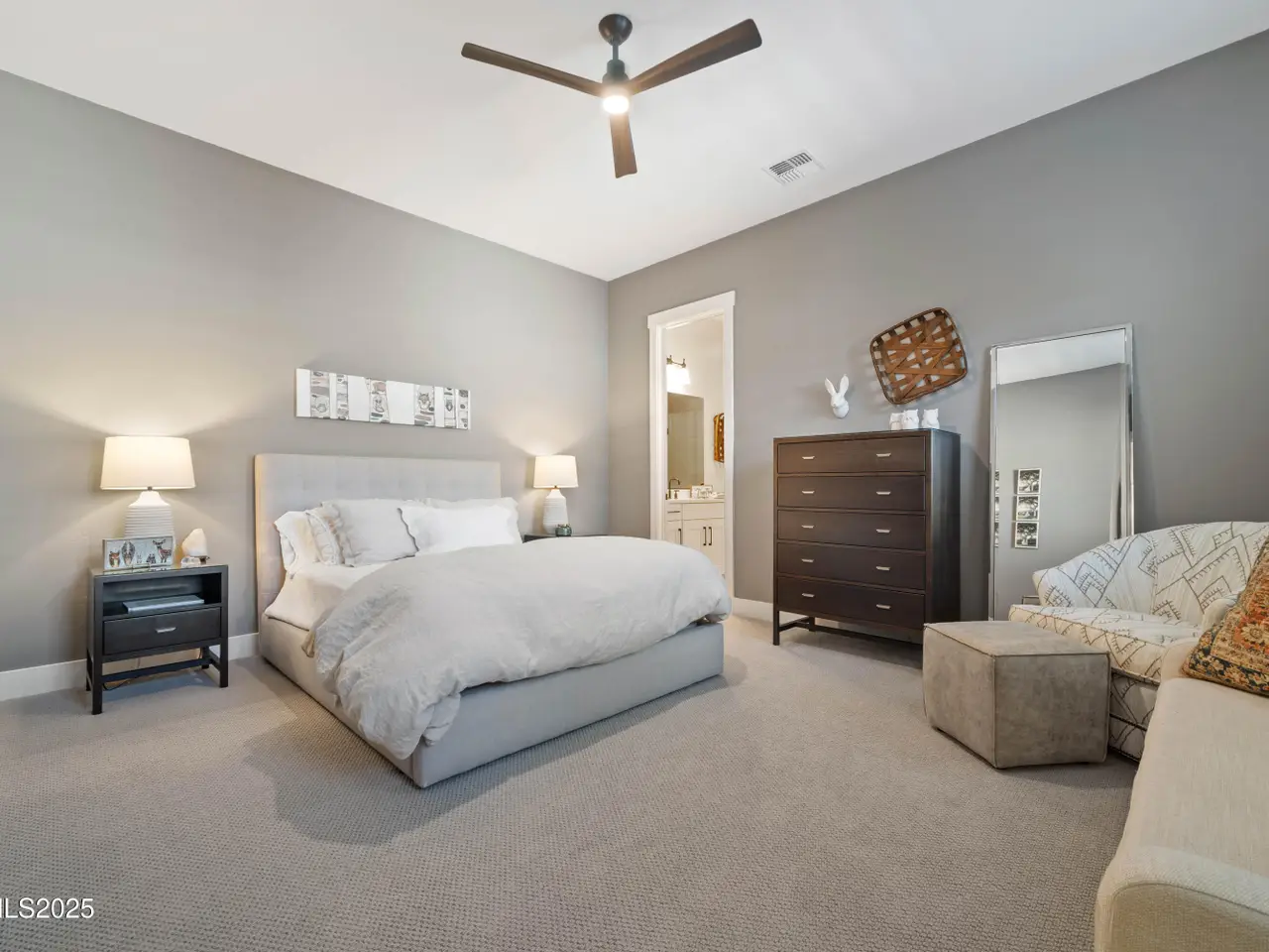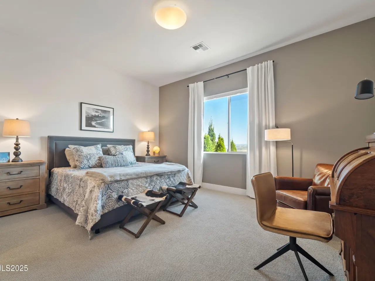 Stunning Modern Home in The Cliffs at Somersett. Discover luxury living in this exquisite 5-bedroom, 5.5-bathroom home located in the prestigious Cliffs community of Somersett. Perched on a premium 180-degree view lot, this meticulously designed residence boasts breathtaking mountain views, sophisticated architecture, and high-end finishes throughout. Enter through a private front courtyard into a spacious open floor plan highlighted by floor-to-ceiling picture windows, hand-troweled walls, and a striking rolled steel fireplace with I-beam detail. The custom glass and wood staircase sets a contemporary tone, while 7" white oak plank flooring adds warmth and elegance. The entertainer's kitchen is a showstopper, featuring a massive 9-foot quartz island, Sub-Zero refrigerator, JennAir appliances, double ovens, a walk-in pantry, and soft-close dovetail cabinetry. Designer light fixtures, black matte hardware, and Italian porcelain surfaces complete the sophisticated design. The walk-out basement includes a newly added fireplace with Italian tile surround, covered patio, and an in-ground hot tub overlooking stunning mountain vistas. Upstairs, enjoy seamless indoor-outdoor living with a multi-panel corner sliding door leading to a large deck—perfect for entertaining. The luxurious primary suite offers a cozy fireplace, spa-like walk-in shower, double vanities, and a spacious walk-in closet. Additional highlights include dual-zone HVAC with two furnaces and water heaters, smart home security, insulated interior walls for soundproofing, never-freeze roof de-icing system, TV/data smurf tubes, a pure water softener, and professionally designed WaterSense landscaping. With a 3-car garage, large laundry/mud room, and exceptional craftsmanship throughout, this home offers comfort, style, and functionality in one of Reno's most sought-after communities.