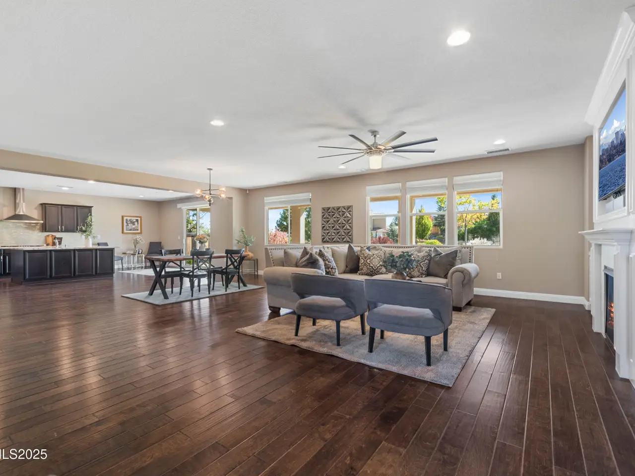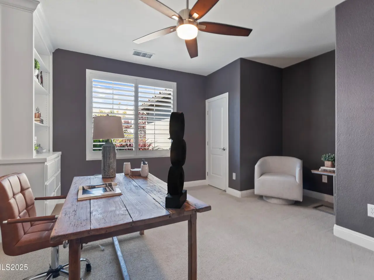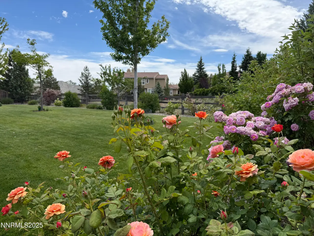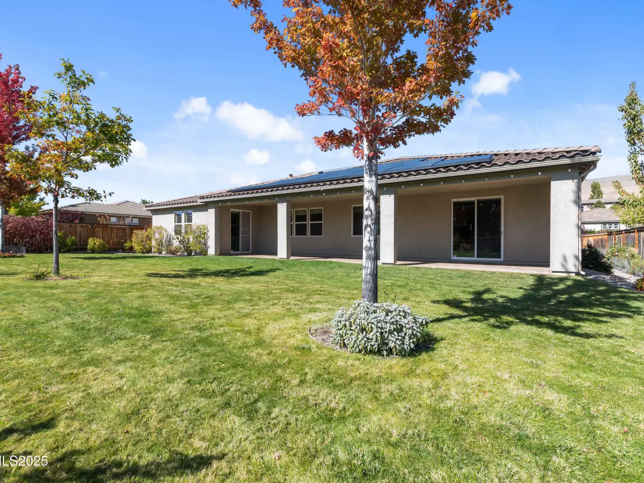 "Open house Saturday 10-18 from 12 to 3 pm" Welcome to your dream home in the prestigious Somersett Golf Community of Reno, Nevada! This stunning, newer residence boasts a desirable single-level open floor plan, perfect for entertaining family and friends. Step inside to discover elegant upgrades that mirror those found in the model home, including exquisite marble countertops and beautiful real hardwood flooring. One of the standout features of this home is the Tesla solar with a Powerwall, ensuring you're never left in the dark and virtually no power bills! The exterior is a gardener's paradise, adorned with an array of fruit trees, vibrant flowers, and aromatic herbs. Enjoy warm evenings on the expansive covered patio, ideal for hosting gatherings or simply relaxing outdoors. Additional highlights include ceiling fans in the main living area and all bedrooms for year-round comfort, an impeccably organized garage with hanging shelves, and soft-close drawers throughout the kitchen. Custom window treatments, including plantation shutters, add a touch of sophistication to every room. This home has been meticulously maintained and is in pristine condition. Don't miss your chance to own a piece of luxury in Somersett—schedule your showing today!