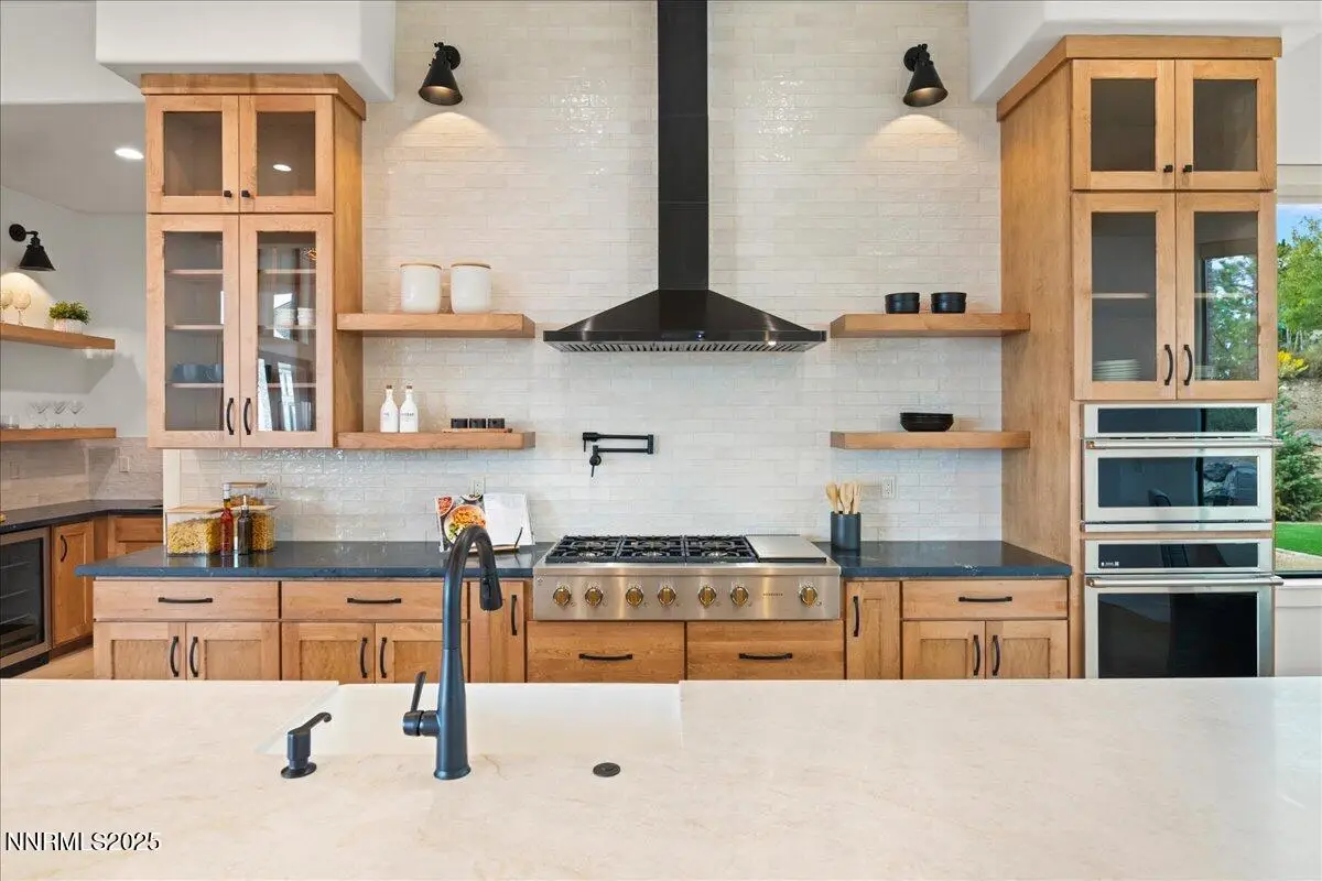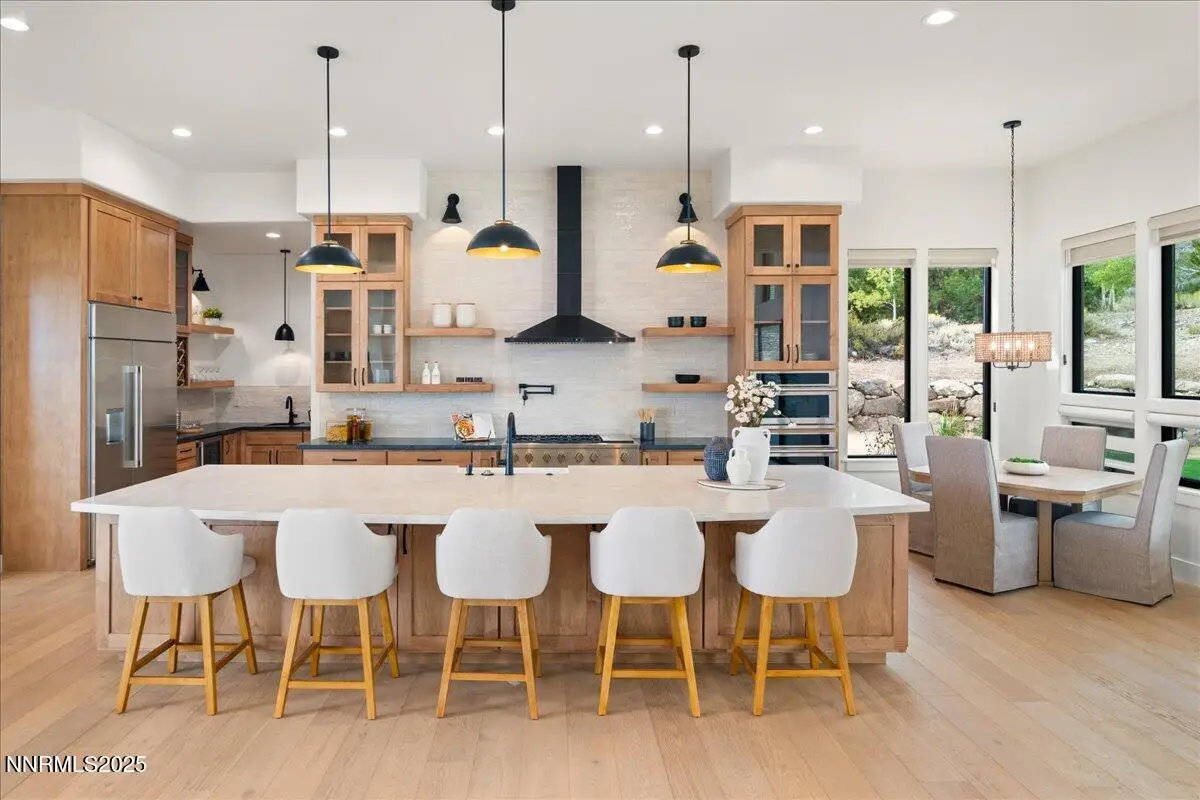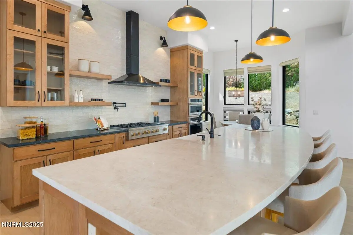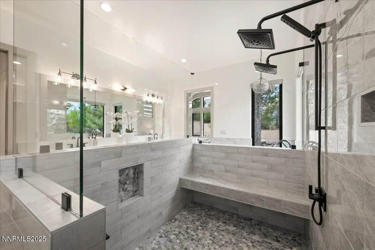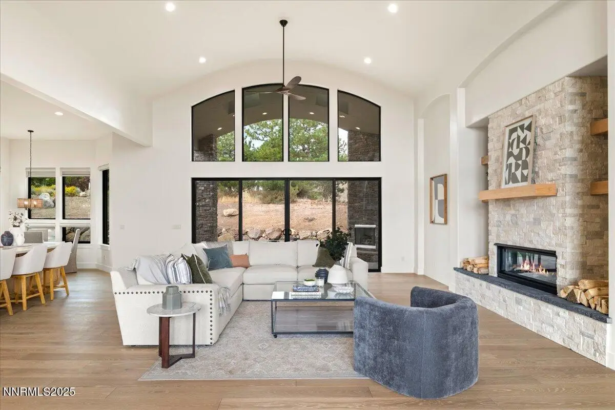 BRAND NEW CONSTRUCTION in ArrowCreek - rare single story with 8-car garage! Outstanding contemporary custom finishes include an upscale suite of GE Monogram kitchen appliances, Taj Mahal quartz and honed leather granite countertops, 7.5" plank hardwood flooring, custom maple cabinetry with soft-close and pull-out drawers, banded and Roman shades, impressive custom front door entry, Toto toilets, and so much more. The Chef's Kitchen showcases a 6-burner stovetop + griddle, built-in oven, convection microwave, pot filler, apron sink, and spacious walk-in pantry. An adjacent Wet Bar is ready for entertaining with a beverage refrigerator, sink, and additional storage. The brilliantly-designed floor plan flows seamlessly with the Primary Suite on one wing, and 2 Guest Suites and a dedicated Office on the other. The voluminous ceilings and extensive custom stonework provide grandeur, which is balanced by the warm tones and inviting spaces that make you feel right at home. The 8+ Car Garage is an absolute knockout. Fully equipped with epoxy flooring throughout, a utility sink, and two RV indoor dump stations. Located at the end of a quiet cul-de-sac, this home has multiple exterior options to relax and enjoy, including a front courtyard and a remarkable covered backyard patio, complete with outdoor fireplace and low-maintenance quality turf. Exceptional opportunity to enjoy brand-new construction in ArrowCreek! This home at 10755 Renegade Court is just .2 miles away from ArrowCreek's "Harbottle Park," which offers a shaded pavilion, playground, bocce ball, and more. All ArrowCreek residents can enjoy the Residents' Center, which includes a community pool complex, tennis and pickle ball courts, basketball court, fitness center, playgrounds, BBQ areas, open lawn space with surrounding par course, and miles of walking trails. The Club at ArrowCreek recently unveiled a remarkable 70M expansion. Members can enjoy 36 holes of golf, elevated dining outlets, pool amenities, state-of-the-art fitness center, driving range, putting greens and chipping areas, bocce ball, special event spaces, and clubhouse activities and events. There is no membership offered with this sale; please inquire with ArrowCreek's Membership Director for membership options and availability. ArrowCreek is a private gated golf course community with 24-hour manned security. Just 20 minutes to the Reno-Tahoe International Airport, 25 minutes to the Mt. Rose Ski Resort, and a short 40-minute drive to beautiful Lake Tahoe.