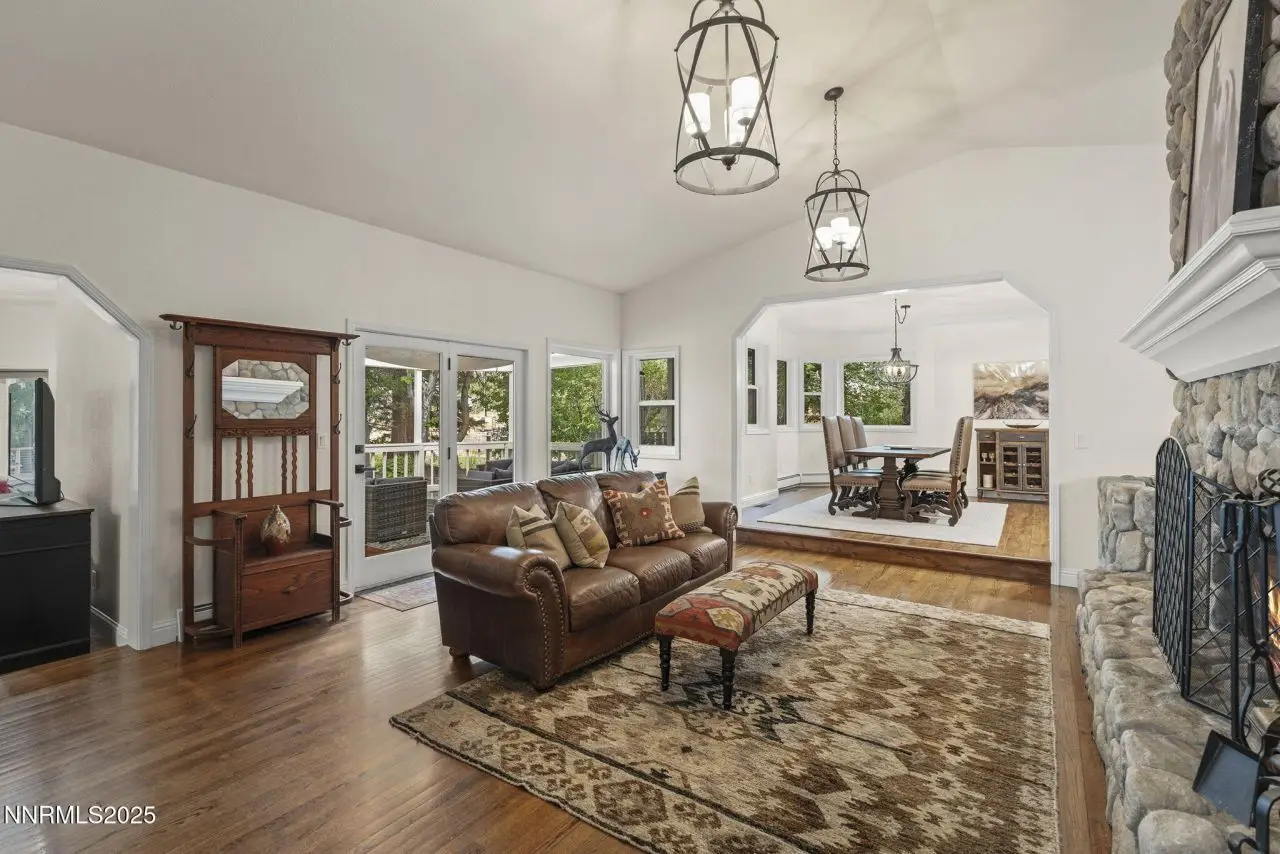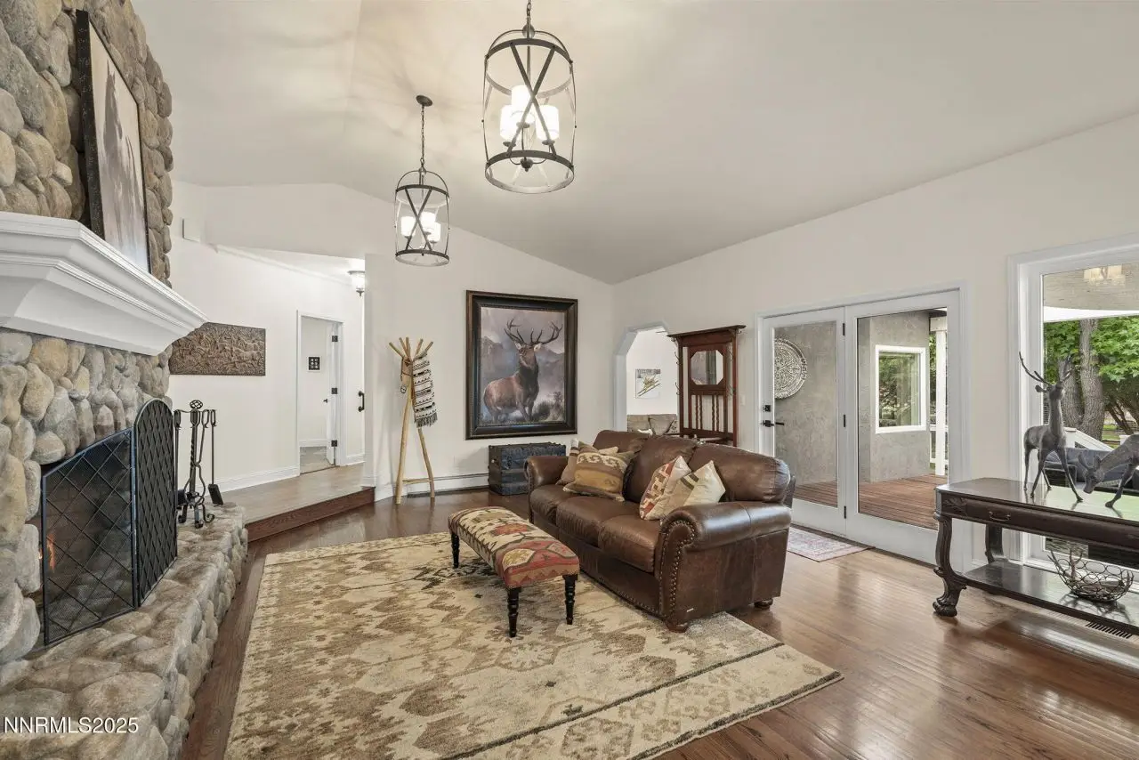 This rare 1-acre lot in the heart of Reno combines timeless charm with extensive modern updates. Featuring 3 bedrooms plus versatile flex spaces - ideal for a home office, gym, or game room - and two separate living areas, the layout is designed for today's lifestyles. A stunning rock fireplace greets you at the entry and creates a cozy centerpiece in the living room. Recent upgrades include fresh exterior paint with updated lighting, all-new windows, luxury vinyl plank flooring, and thoughtfully designed built-ins. The chef's kitchen has been enhanced with updated granite counters, modern appliances, and stylish finishes, while the remodeled primary bath offers a spa-like retreat. Additional improvements such as a new cedar deck, split AC in the primary suite, and re-mortared chimney with caps add to the home's comfort and longevity. Step outside into your private backyard oasis - partially fenced with a charming gate and featuring lush grass, a fire pit, and a pergola. Bring your horses! The barn has been refreshed with a new corrugated tin roof and paint, while upgraded irrigation, re-graveled service road, and two added yard hydrants make outdoor living and maintenance effortless. Located in a mature neighborhood with no HOA! This property offers a balance of privacy and convenience, zoned for highly rated schools and just minutes from shopping, dining, and more.