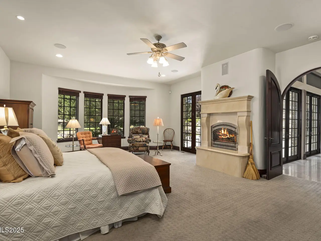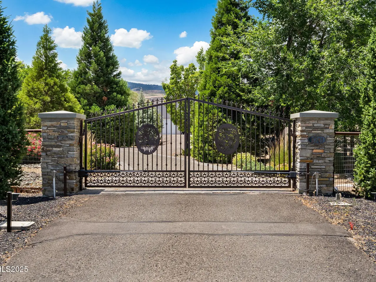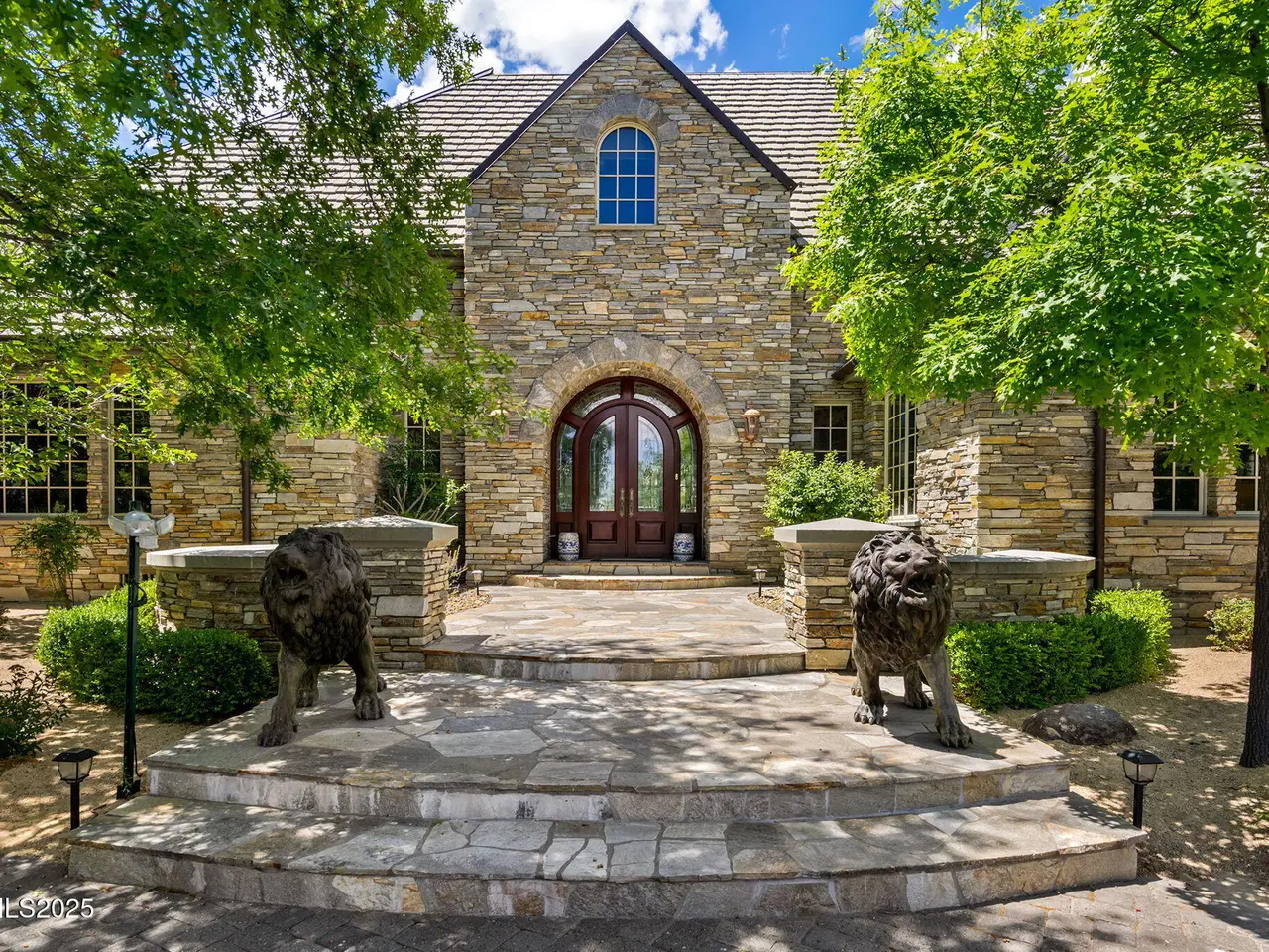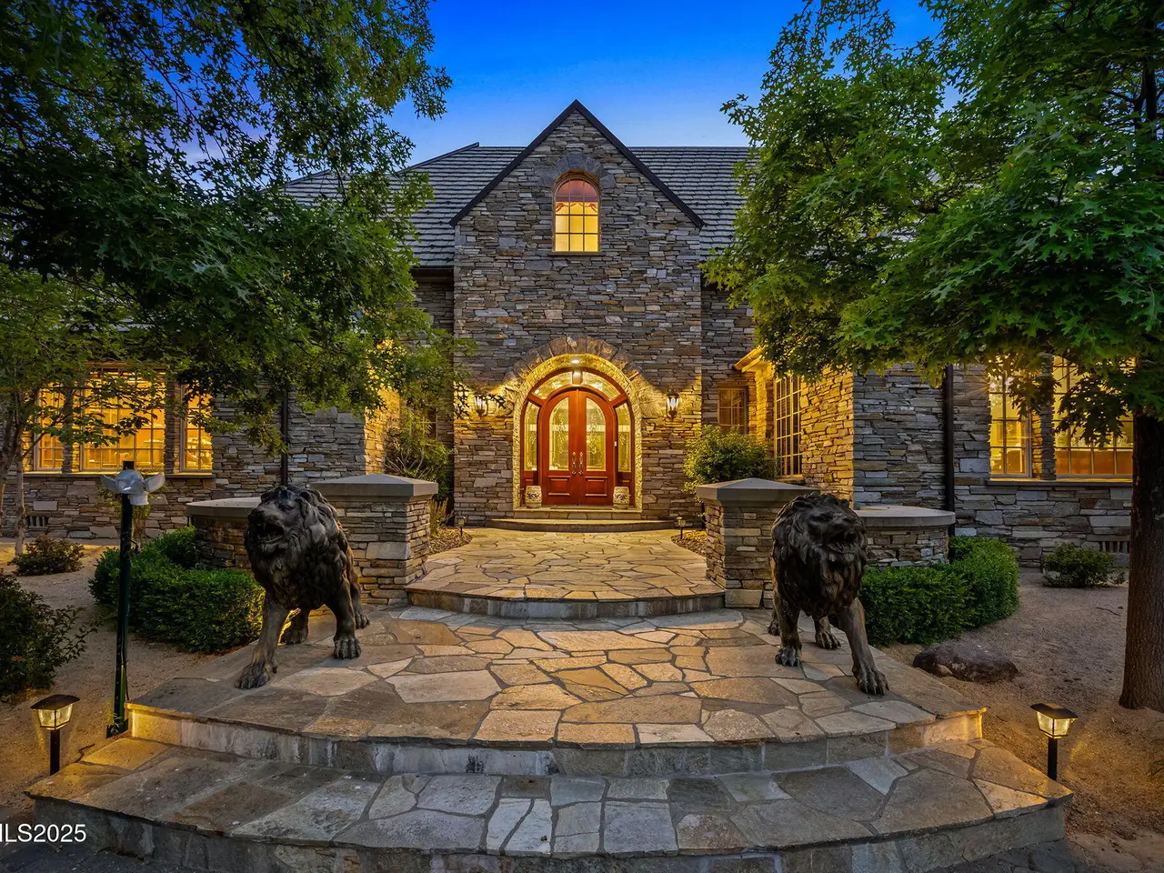 Rare and stunning property on 2.47 acres in coveted SW Suburban Reno Lakeside/Holcomb area. Down a long driveway and through the private gated entry, you will immediately be impressed by the mature landscaping and stunning exterior of this exquisite country manor with full hand-laid stone exterior. Wonderful curb appeal with beautiful entry, circular drive with water feature, and carriage breezeway between two 2-car garages. Additionally, there is a detached fully insulated and heated garage/car barn with soaring 18' ceilings, 3 doors including RV door. Steamboat ditch irrigation rights, domestic well plus AG water rights. The comfortable yet elegant floorplan features 4 ensuite bedrooms and 3 separate half baths. Large office with beautiful built-ins and the primary suite located on the main level feature a fireplace, luxurious bath, and huge walk in closet. The magnificent gourmet kitchen is open to the family room featuring 20 foot ceilings and extraordinary floor to ceiling stone fireplace and hearth. The grand formal dining room and separate living room with wall of windows overlook the grounds. Upstairs has 3 large bedrooms with private baths, a 1/2 bath, and beautiful landing open to the family room below and leading to expansive game room with walk-in wet bar, plenty of room for seating, dining, or extra office space! Other features include 8' solid Mahogany doors, water processing system, Control 4 lighting and Mesh Network Wi-Fi system. New insulated steel garage doors on attached garages, Generac whole house generator, extensive lighting and much more! Please see features list for more. Very close to all amenities .and airport yet very secluded country lifestyle Must see this extremely special home, location, and property!