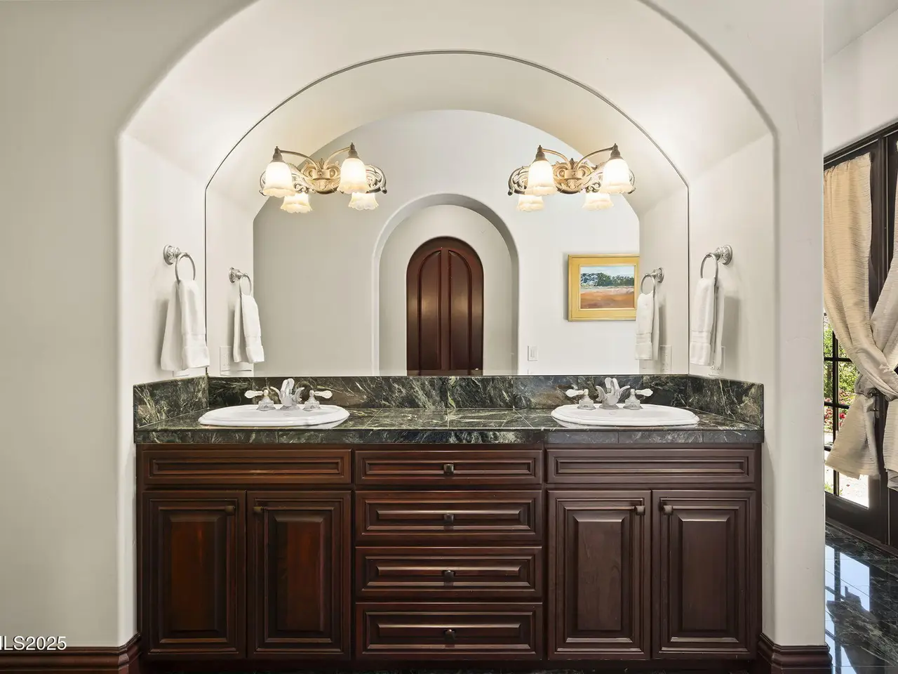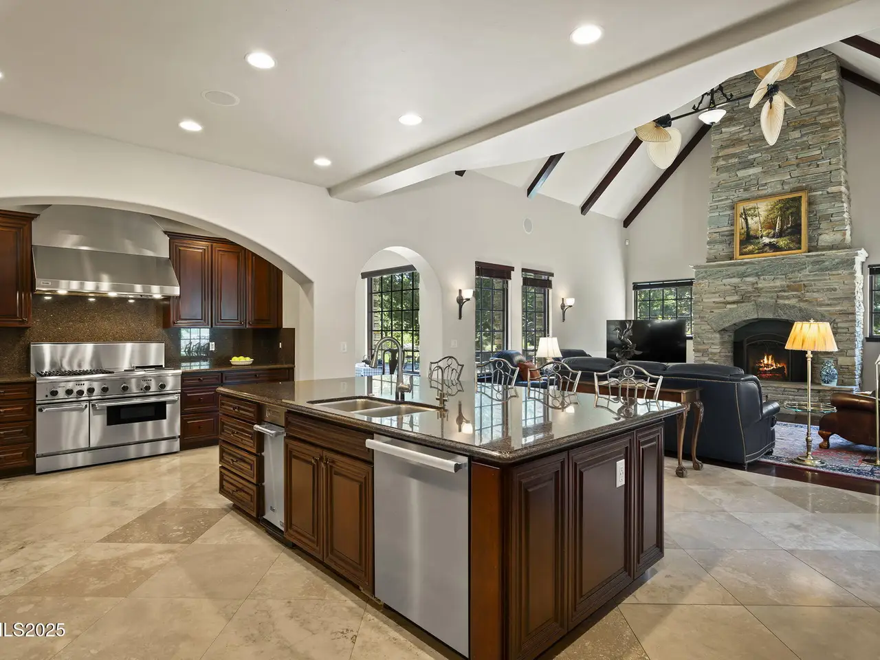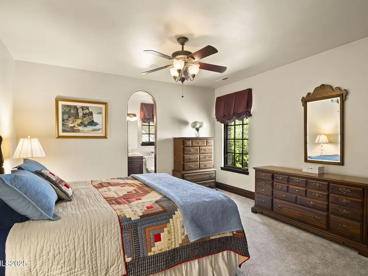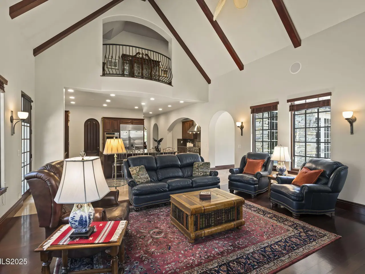 Rare and stunning property on 2.47 acres in coveted SW Suburban Reno Lakeside/Holcomb area. Down a long driveway and through the private gated entry, you will immediately be impressed by the mature landscaping and stunning exterior of this exquisite country manor with full hand-laid stone exterior. Wonderful curb appeal with beautiful entry, circular drive with water feature, and carriage breezeway between two 2-car garages. Additionally, there is a detached fully insulated and heated garage/car barn with soaring 18' ceilings, 3 doors including RV door. Steamboat ditch irrigation rights, domestic well plus AG water rights. The comfortable yet elegant floorplan features 4 ensuite bedrooms and 3 separate half baths. Large office with beautiful built-ins and the primary suite located on the main level feature a fireplace, luxurious bath, and huge walk in closet. The magnificent gourmet kitchen is open to the family room featuring 20 foot ceilings and extraordinary floor to ceiling stone fireplace and hearth. The grand formal dining room and separate living room with wall of windows overlook the grounds. Upstairs has 3 large bedrooms with private baths, a 1/2 bath, and beautiful landing open to the family room below and leading to expansive game room with walk-in wet bar, plenty of room for seating, dining, or extra office space! Other features include 8' solid Mahogany doors, water processing system, Control 4 lighting and Mesh Network Wi-Fi system. New insulated steel garage doors on attached garages, Generac whole house generator, extensive lighting and much more! Please see features list for more. Very close to all amenities .and airport yet very secluded country lifestyle Must see this extremely special home, location, and property!