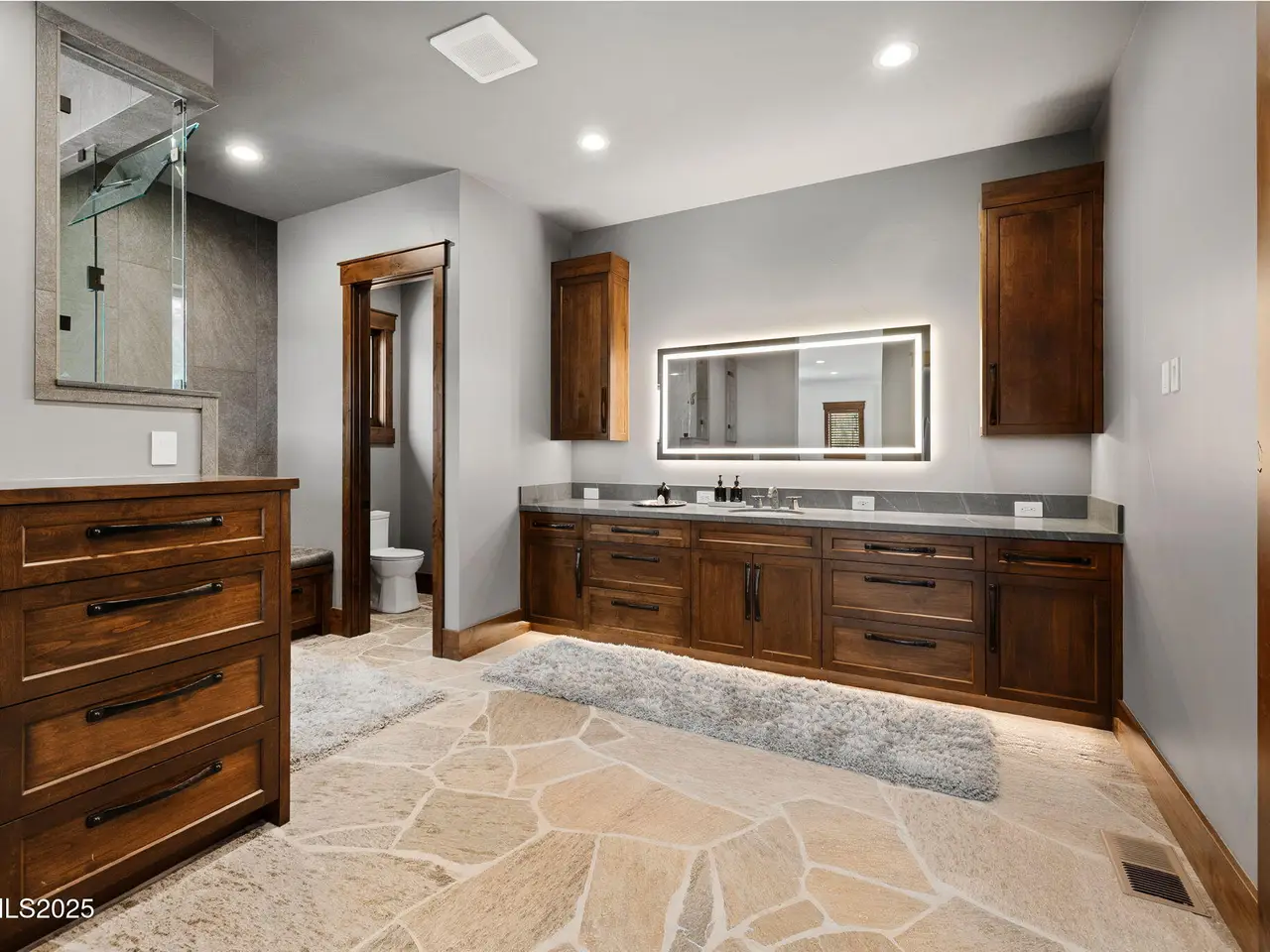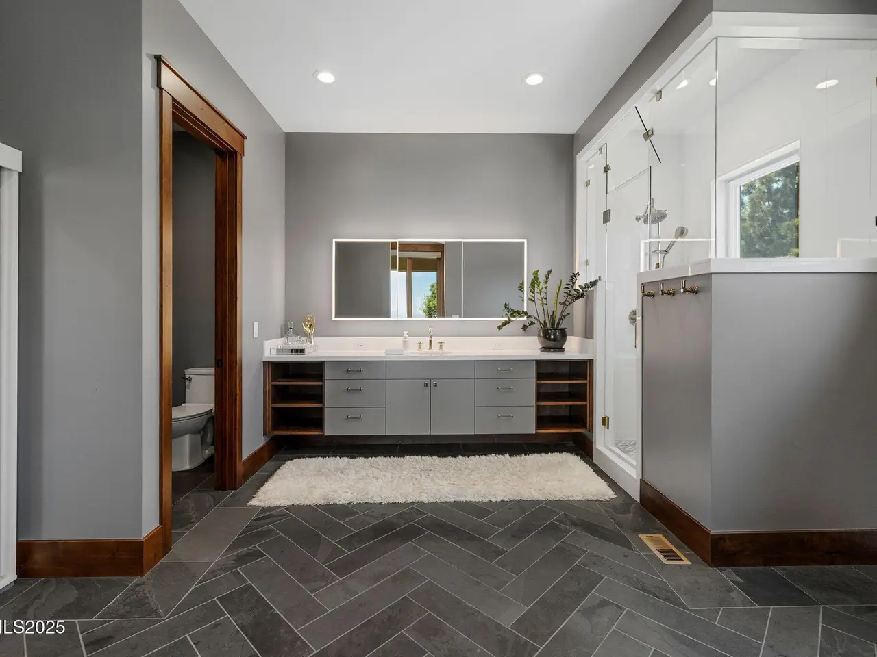 Come home to the only mountaintop that matters at 29 Bennington Court—a 4,831 sq ft single-level, 3 bd/3.5 bath home on 6.33 acres, including an adjacent lot. Designed for privacy, presence, and purposeful luxury, this custom home's features include heated quartzite counters, radiant floors, Waterstone fixtures, and Thermador appliances. Outside, the terrace opens to a Bullfrog spa, gas firepit, wood-burning hearth, and panoramic views of Mt. Rose, the city, and the forest for gatherings and grounded living. Where clarity meets craftsmanship and where home meets horizon, you'll find 29 Bennington Court. A rare alignment of location, design, and intention, this 6.33-acre property—including the adjacent lot—is ideal for those seeking space, presence, and enduring quality on a mountaintop estate unlike any other in the region. This single-level residence was designed with intention for liveable luxury. Every room opens to views of Mt. Rose, downtown Reno, and the surrounding forest canopy, while remaining just minutes from restaurants, schools, and shopping in South Reno. Inside, timeless craftsmanship is paired with intelligent modern upgrades. Radiant in-floor heating runs throughout the bathrooms, while heated counters add to the kitchen. A full suite of Thermador appliances—including a six-burner range with griddle, dual convection ovens, and commercial-grade ventilation—anchors the chef's kitchen. Soft-close cabinetry flows into a walk-through butler's pantry, featuring a pebble ice maker, custom storage, open shelving for effortless entertaining, and direct access to the oversized garage, which features epoxy floors and space for storage. The home's wide hallways, soaring soffit ceilings, and unobtrusive transitions between rooms create a grounded rhythm that invites movement and rest. Materials were chosen to age beautifully and wear comfortably: hardwood in main living areas, plush carpet in the bedrooms, and marble thresholds in transition zones. Skylights are placed to follow the arc of the sun, shifting light across the home throughout the day. A dedicated home office offers built-in storage, integrated lighting, and sweeping views—perfectly positioned for focused work, creative flow, or organizational ease. The three en-suite bedrooms offer privacy, stunning views, and spa-level finishes. The primary suite features a soaking tub, a walk-in essential oil steam shower, and a custom dressing room featuring mirrored cabinetry, soft-close drawers, tailored lighting, and a clever pass-through to the oversized laundry room. Dual washers and dryers, integrated hampers, and abundant storage make daily living more doable. An additional powder room with a Chanel-inspired wall texture accommodates guests and outdoor use. Beyond the view-filled windows, the outdoors unfolds with a similar sense of ease and intentionality. A recessed Bullfrog spa, a built-in gas firepit, and a wood-burning hearth create three zones for gathering, storytelling, and stargazing. The concrete terrace is plumbed for gas heaters and a future outdoor kitchen or enclosed pavilion. Hand-selected landscaping stones, including rare moss-covered granite boulders, were sourced from the land. Technology, comfort, and craftsmanship work in tandem: Lutron smart lighting, Brizzo hardware and Waterstone fixtures, prewiring for audiovisual integration, and ceiling heights engineered for long-term maintenance ease—no scaffolding required. The adjacent parcel at 33 Bennington Court is included in the sale, offering rare flexibility. Expand your compound. Build a guest home, artist's studio, multigenerational retreat, or simply preserve the land for peace, investment, or the future you haven't imagined yet. This home was built for gatherings that span generations, careers that evolve, and for people who understand that living well means living with purpose. Whether hosting, resting, creating, or simply being, this home meets you where you are.