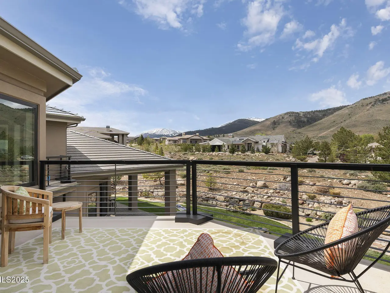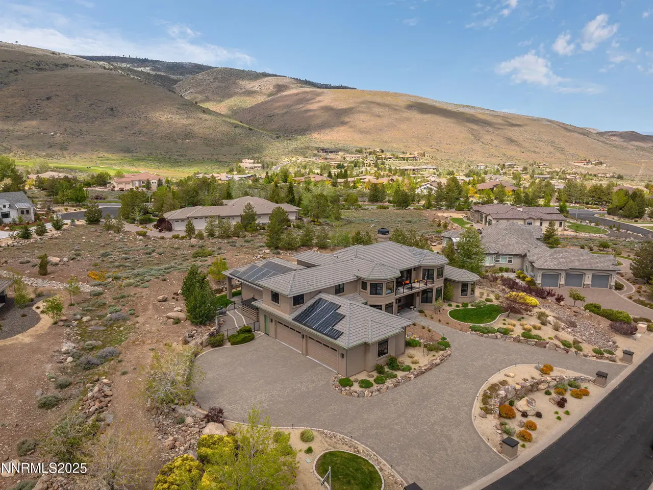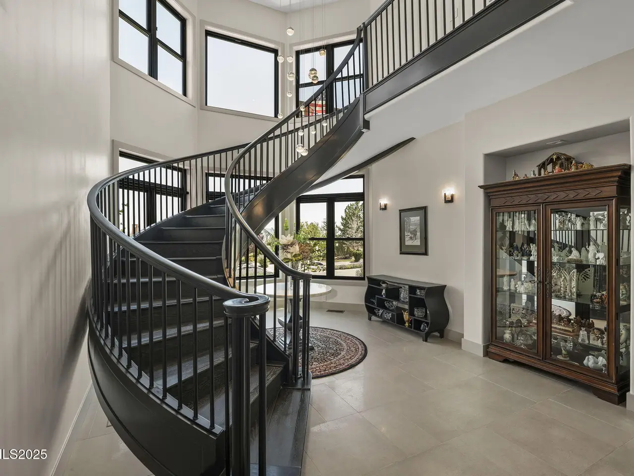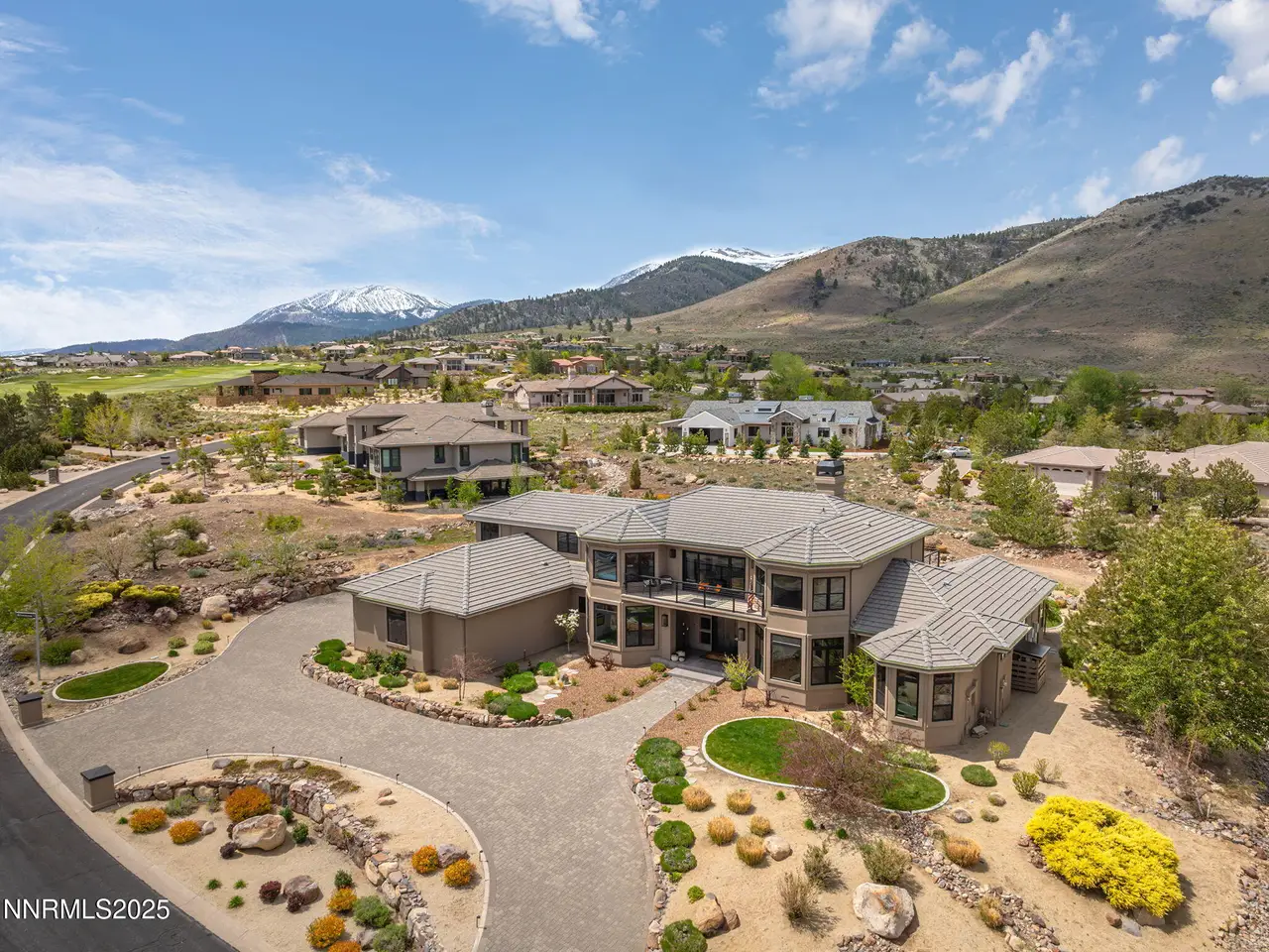 Step into 6177 North Featherstone, a residence reimagined from the ground up to embody the sophistication of design and the effortless grace of High Desert living. Nestled within the prestigious ArrowCreek community, this fully remodeled estate offers 5,586 square feet of inspired living on a full acre. With sweeping views across the Sierra Nevada and Mt. Rose mountains, lush golf fairways, and sparkling city lights, every angle of this home tells a story of elegance and connection to its surroundings. The owners began their remodel with purpose: to create a seamless flow, where form meets function and every detail enhances life, leisure, and entertaining. Walls were softened, pillars removed, and spaces reimagined to capture natural light and open sightlines. Modern finishes and thoughtful design balance grandeur with comfort. A finished basement and upstairs library added 312 square feet, expanding versatility without sacrificing intimacy. Arrival makes an unforgettable impression with a custom 9x6 steel pivot door by Modern Steel Doors of Arizona. Inside, a light-filled foyer leads to an expanded balcony, where sweeping golf course and city views set the stage for sunrise coffee or starlit evenings. At the heart of the home, the Dining Room has been elevated into a dramatic entertaining space with soaring two-story ceilings and a two-sided fireplace connecting indoors and outdoors. Andersen sliding doors open to patios and gardens, while striking Sonneman fixtures and art lighting create ambiance. Whether hosting holidays or intimate dinners, the space adapts with ease. The Main En Suite is a private retreat, complete with custom California Closets, cove lighting, and remote-controlled Hunter Douglas shades. The spa-inspired bath showcases a freestanding soaking tub beneath chandeliers, a dual-entry steam shower with rain head and sprayers, natural stone floors, shimmering glass tile, and custom cabinetry with quartz counters and lighted mirrors. The Great Room centers on a custom travertine fireplace with black quartz mantel, complemented by wood-grain tile floors, a Minka Aire fan, and integrated Sonos audio. The Kitchen and Nook feature a Wolf 48" range, Sub-Zero refrigerator, and a central island with seating. The Games Room delights with Hubbardton Forge lighting, speakers, and motorized shades. A dramatic staircase of black-stained oak and iron railings rises beneath a cascading Sonneman chandelier. Upstairs, the new Library offers custom bookcases, club seating, and a 12-foot Andersen glass wall opening to a balcony with panoramic views. Four additional en suite bedrooms provide privacy, storage, and character. Outdoors, multiple patios, a two-sided fireplace, and landscaped grounds enhanced with solar lighting create serene gathering spaces. Modern systems include central HVAC with three units, radiant heated floors, Tesla solar panels, Cat-6 wiring, Sonos audio, and a four-car garage with EV charger. This estate is more than a home—it is a lifestyle. From morning coffee on the balcony to wine in the library at dusk, from quiet family nights to grand celebrations, this residence harmonizes elegance, comfort, and versatility. Every space has been thoughtfully crafted, every view a reminder of Reno's beauty. This is a rare opportunity to own a fully realized vision of home, where luxury and ease coexist seamlessly.