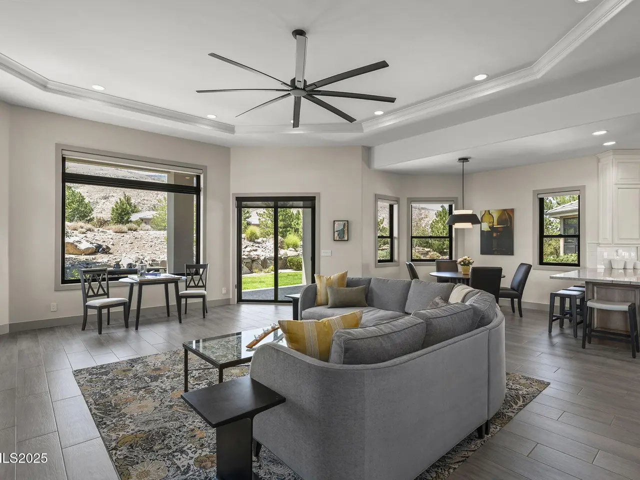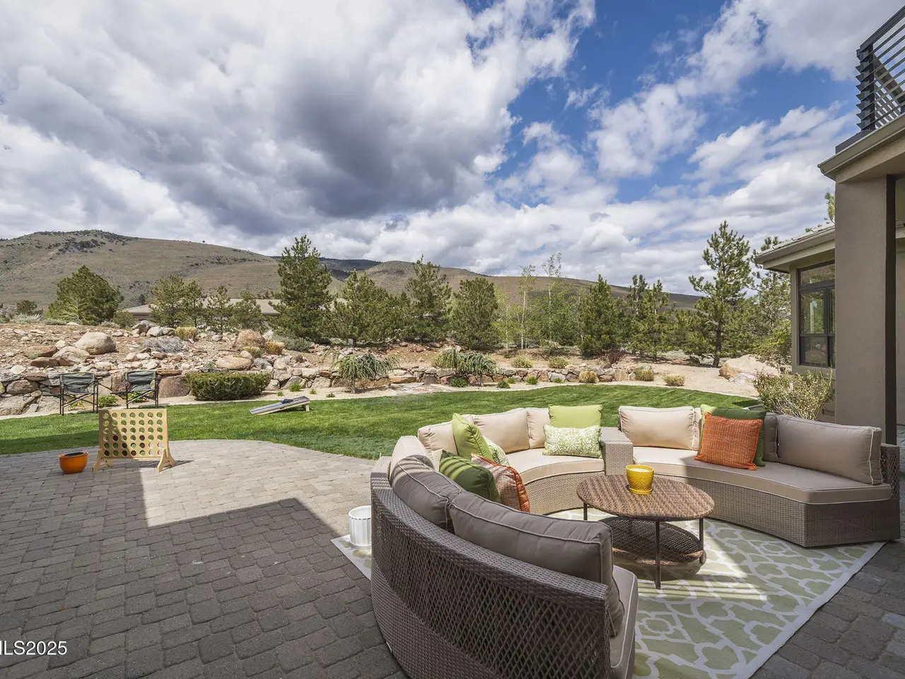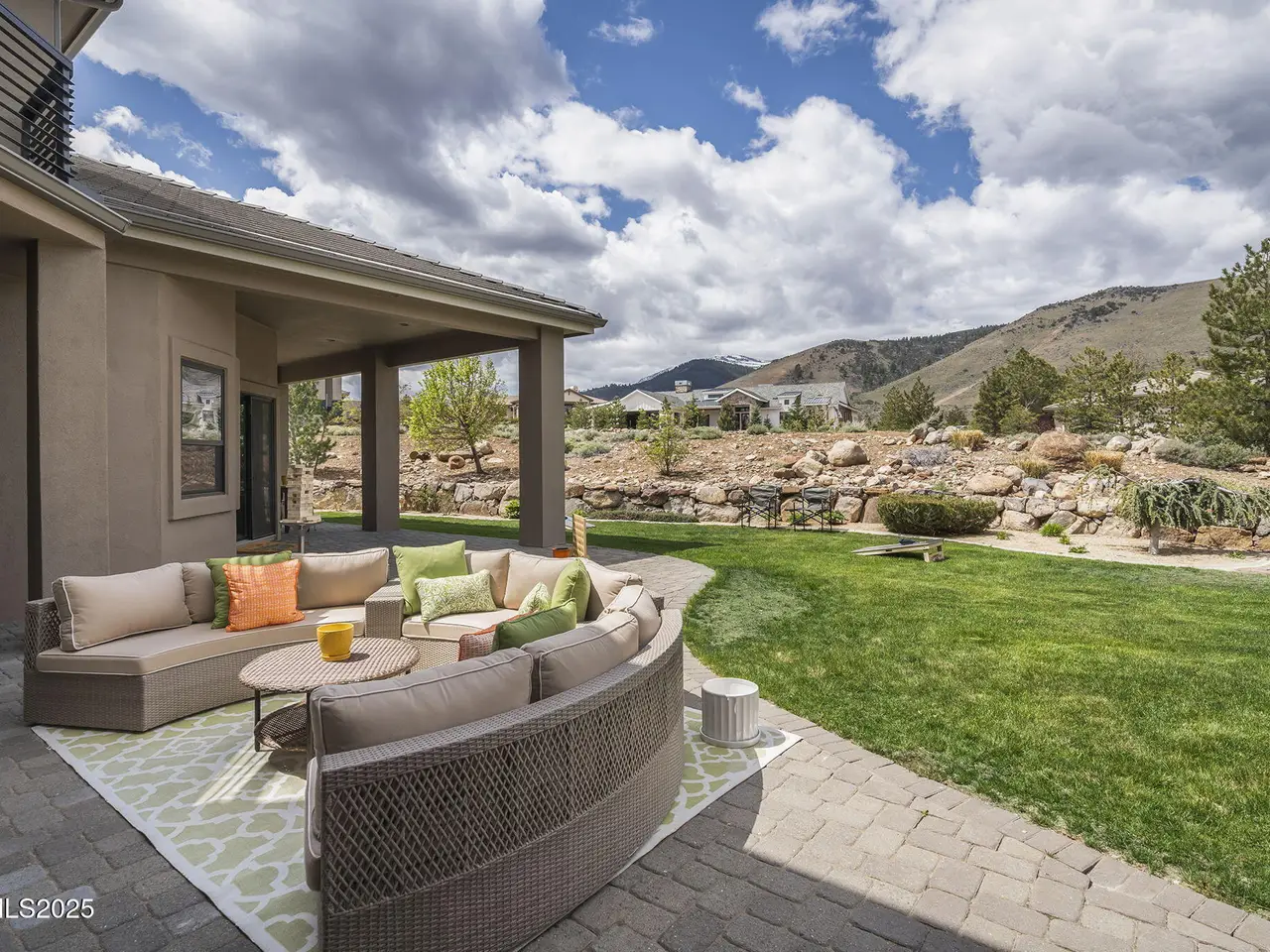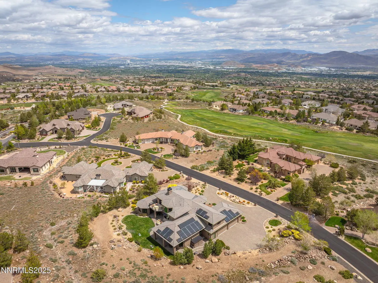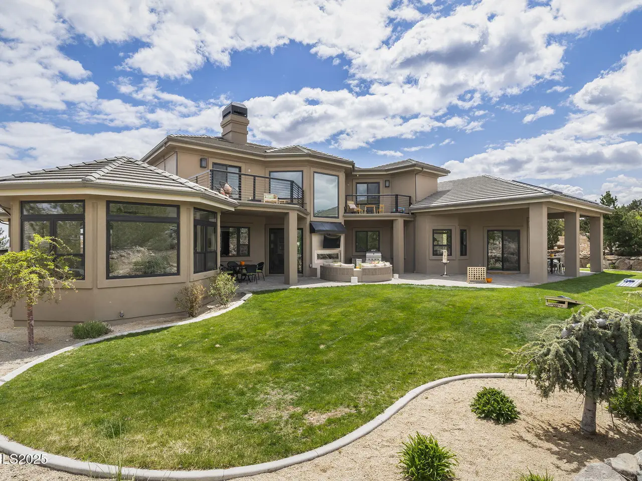 Step into 6177 North Featherstone, a residence reimagined from the ground up to embody the sophistication of design and the effortless grace of High Desert living. Nestled within the prestigious ArrowCreek community, this fully remodeled estate offers 5,586 square feet of inspired living on a full acre. With sweeping views across the Sierra Nevada and Mt. Rose mountains, lush golf fairways, and sparkling city lights, every angle of this home tells a story of elegance and connection to its surroundings. The owners began their remodel with purpose: to create a seamless flow, where form meets function and every detail enhances life, leisure, and entertaining. Walls were softened, pillars removed, and spaces reimagined to capture natural light and open sightlines. Modern finishes and thoughtful design balance grandeur with comfort. A finished basement and upstairs library added 312 square feet, expanding versatility without sacrificing intimacy. Arrival makes an unforgettable impression with a custom 9x6 steel pivot door by Modern Steel Doors of Arizona. Inside, a light-filled foyer leads to an expanded balcony, where sweeping golf course and city views set the stage for sunrise coffee or starlit evenings. At the heart of the home, the Dining Room has been elevated into a dramatic entertaining space with soaring two-story ceilings and a two-sided fireplace connecting indoors and outdoors. Andersen sliding doors open to patios and gardens, while striking Sonneman fixtures and art lighting create ambiance. Whether hosting holidays or intimate dinners, the space adapts with ease. The Main En Suite is a private retreat, complete with custom California Closets, cove lighting, and remote-controlled Hunter Douglas shades. The spa-inspired bath showcases a freestanding soaking tub beneath chandeliers, a dual-entry steam shower with rain head and sprayers, natural stone floors, shimmering glass tile, and custom cabinetry with quartz counters and lighted mirrors. The Great Room centers on a custom travertine fireplace with black quartz mantel, complemented by wood-grain tile floors, a Minka Aire fan, and integrated Sonos audio. The Kitchen and Nook feature a Wolf 48" range, Sub-Zero refrigerator, and a central island with seating. The Games Room delights with Hubbardton Forge lighting, speakers, and motorized shades. A dramatic staircase of black-stained oak and iron railings rises beneath a cascading Sonneman chandelier. Upstairs, the new Library offers custom bookcases, club seating, and a 12-foot Andersen glass wall opening to a balcony with panoramic views. Four additional en suite bedrooms provide privacy, storage, and character. Outdoors, multiple patios, a two-sided fireplace, and landscaped grounds enhanced with solar lighting create serene gathering spaces. Modern systems include central HVAC with three units, radiant heated floors, Tesla solar panels, Cat-6 wiring, Sonos audio, and a four-car garage with EV charger. This estate is more than a home—it is a lifestyle. From morning coffee on the balcony to wine in the library at dusk, from quiet family nights to grand celebrations, this residence harmonizes elegance, comfort, and versatility. Every space has been thoughtfully crafted, every view a reminder of Reno's beauty. This is a rare opportunity to own a fully realized vision of home, where luxury and ease coexist seamlessly.