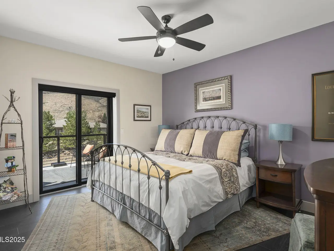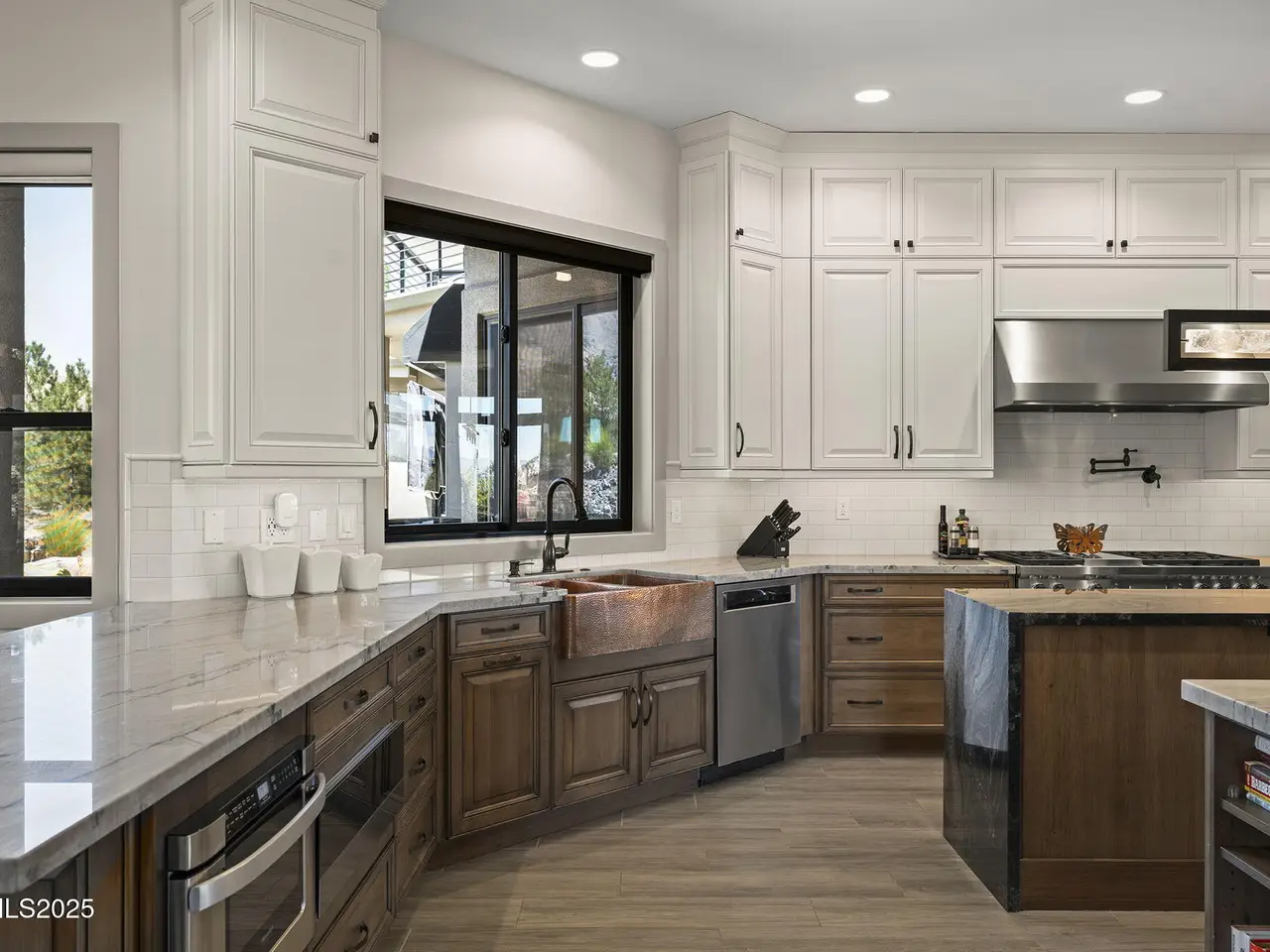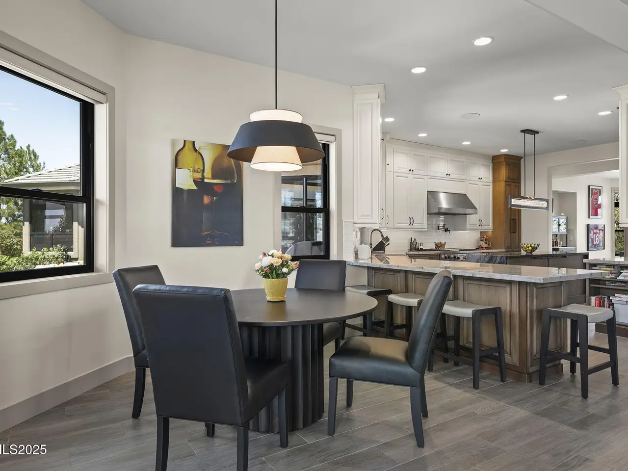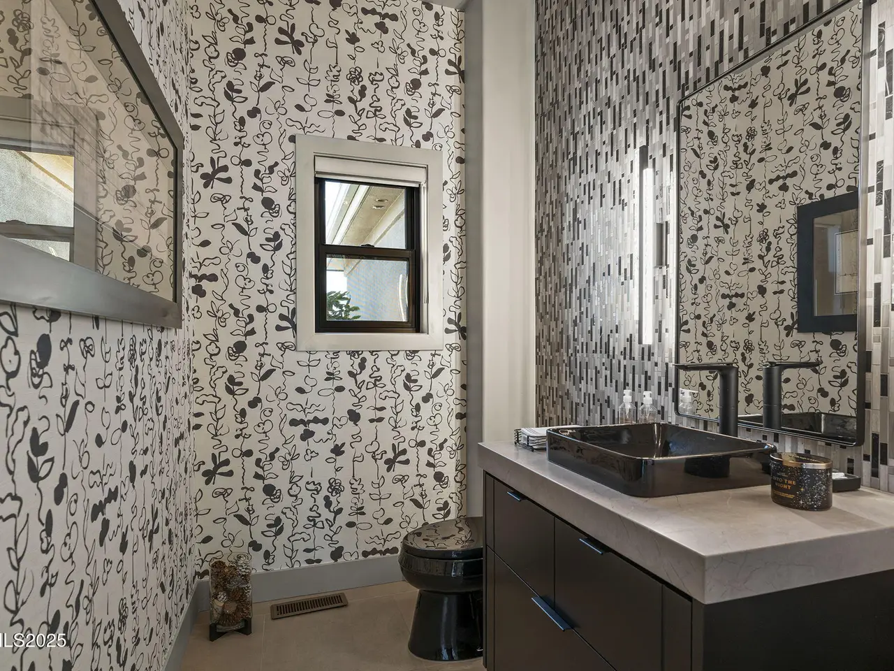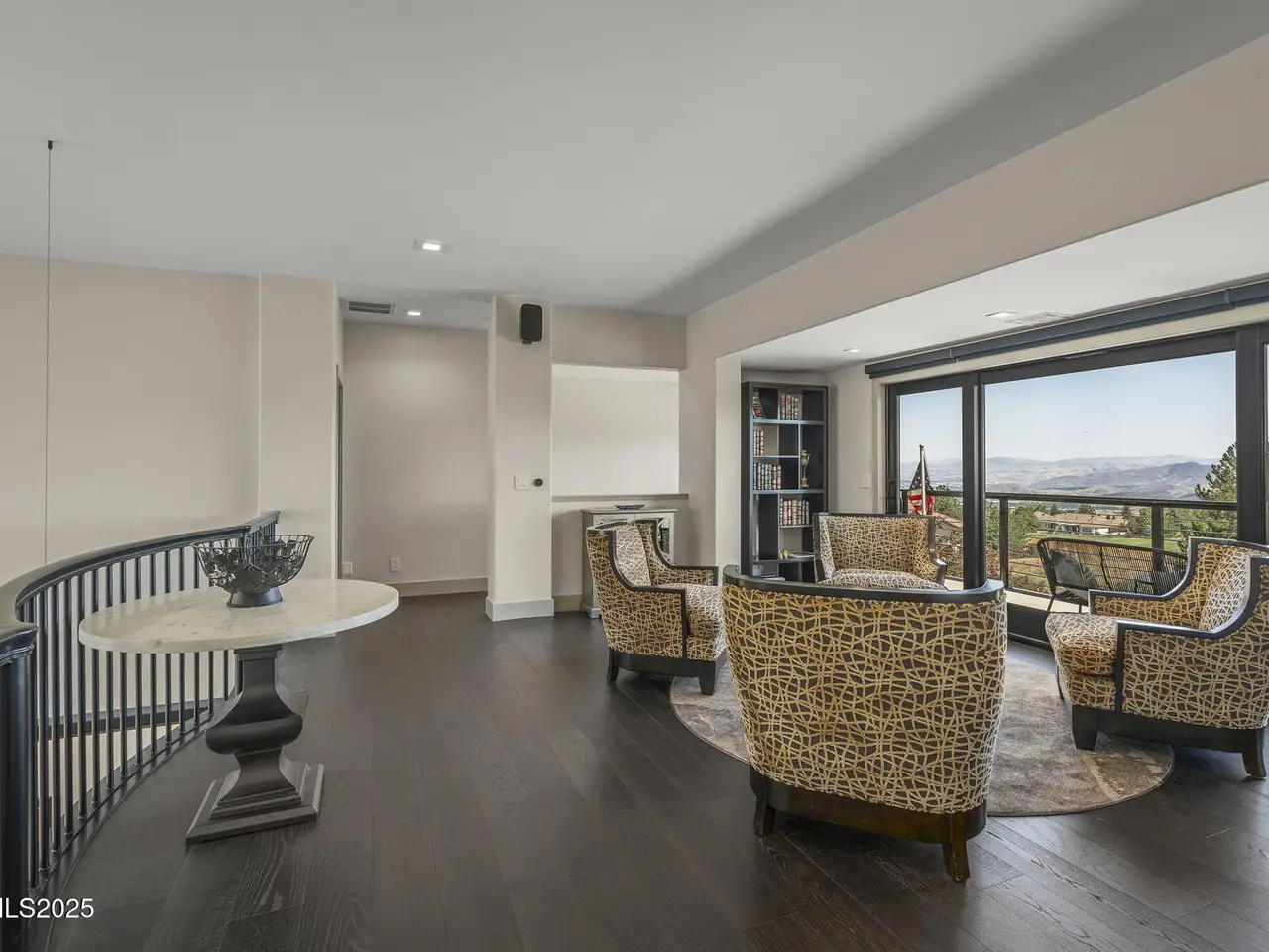 Step into 6177 North Featherstone, a residence reimagined from the ground up to embody the sophistication of design and the effortless grace of High Desert living. Nestled within the prestigious ArrowCreek community, this fully remodeled estate offers 5,586 square feet of inspired living on a full acre. With sweeping views across the Sierra Nevada and Mt. Rose mountains, lush golf fairways, and sparkling city lights, every angle of this home tells a story of elegance and connection to its surroundings. The owners began their remodel with purpose: to create a seamless flow, where form meets function and every detail enhances life, leisure, and entertaining. Walls were softened, pillars removed, and spaces reimagined to capture natural light and open sightlines. Modern finishes and thoughtful design balance grandeur with comfort. A finished basement and upstairs library added 312 square feet, expanding versatility without sacrificing intimacy. Arrival makes an unforgettable impression with a custom 9x6 steel pivot door by Modern Steel Doors of Arizona. Inside, a light-filled foyer leads to an expanded balcony, where sweeping golf course and city views set the stage for sunrise coffee or starlit evenings. At the heart of the home, the Dining Room has been elevated into a dramatic entertaining space with soaring two-story ceilings and a two-sided fireplace connecting indoors and outdoors. Andersen sliding doors open to patios and gardens, while striking Sonneman fixtures and art lighting create ambiance. Whether hosting holidays or intimate dinners, the space adapts with ease. The Main En Suite is a private retreat, complete with custom California Closets, cove lighting, and remote-controlled Hunter Douglas shades. The spa-inspired bath showcases a freestanding soaking tub beneath chandeliers, a dual-entry steam shower with rain head and sprayers, natural stone floors, shimmering glass tile, and custom cabinetry with quartz counters and lighted mirrors. The Great Room centers on a custom travertine fireplace with black quartz mantel, complemented by wood-grain tile floors, a Minka Aire fan, and integrated Sonos audio. The Kitchen and Nook feature a Wolf 48" range, Sub-Zero refrigerator, and a central island with seating. The Games Room delights with Hubbardton Forge lighting, speakers, and motorized shades. A dramatic staircase of black-stained oak and iron railings rises beneath a cascading Sonneman chandelier. Upstairs, the new Library offers custom bookcases, club seating, and a 12-foot Andersen glass wall opening to a balcony with panoramic views. Four additional en suite bedrooms provide privacy, storage, and character. Outdoors, multiple patios, a two-sided fireplace, and landscaped grounds enhanced with solar lighting create serene gathering spaces. Modern systems include central HVAC with three units, radiant heated floors, Tesla solar panels, Cat-6 wiring, Sonos audio, and a four-car garage with EV charger. This estate is more than a home—it is a lifestyle. From morning coffee on the balcony to wine in the library at dusk, from quiet family nights to grand celebrations, this residence harmonizes elegance, comfort, and versatility. Every space has been thoughtfully crafted, every view a reminder of Reno's beauty. This is a rare opportunity to own a fully realized vision of home, where luxury and ease coexist seamlessly.
