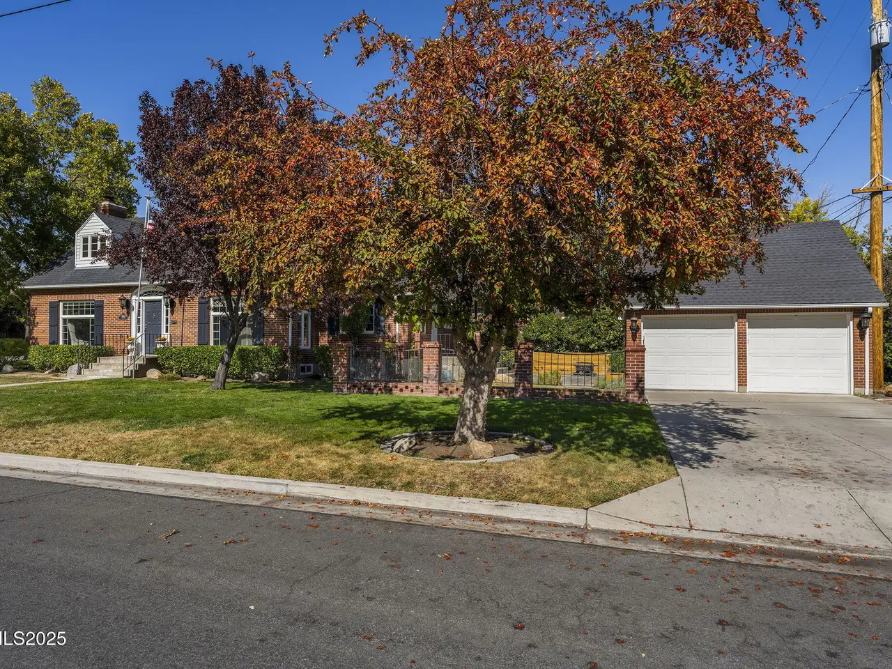 Situated on a quiet corner of a tree-lined street equidistant from the Nevada Museum of Art, Virginia Lake, and Midtown's restaurants and shops, 1190 Manor Drive offers the best of Old Southwest living: established yet vibrant, character-filled yet practical. • Thoughtfully cared for and lovingly maintained, this **3-bed, 3-bath, 2,592-sq-ft home** is a rare example of how a home can evolve while keeping its heart intact. • Don't miss the chance to live here this fall—watch the trees outside your windows shift from bright green to burnished gold and settle by the wood-burning fireplace as cooler days arrive. • **Move-In Ready** This classic brick Colonial Revival has been thoughtfully renewed, ensuring that what defines the home—its warmth, craftsmanship, 1940s architecture, character, and quiet beauty—remains intact. • Over the decades, each owner has meticulously maintained and updated the home's systems, from the 2021 furnace, A/C, and water heater to the fully remodeled kitchen and Ecobee smart-thermostat system. • Plaster detailing, crown molding, and built-in nooks represent the era's character. • Even the smallest elements—the built-ins, mail slot, and telephone inset—reflect enduring care and preservation. • **Inside** The floor plan balances privacy and functionality. • On the main level, the front door opens to an L-shaped staircase with its original balustrade and a graceful curtailed step framed by an arched threshold. • To the left, sunlight filters through tall windows onto gleaming hardwood floors in the living room, where a wood-burning fireplace anchors the generous space. • To the right, the dining room, featuring wainscoting and a graceful chandelier, opens naturally to the remodeled kitchen, which showcases quartz countertops, a Wolf gas range, thoughtful cabinetry with pull-outs and soft-close drawers, and a brick accent wall lending warmth and authenticity. • Vaulted ceilings with exposed beams lift the space, while the eat-in nook's window seat overlooks the front yard's mature landscaping, which bursts into vivid gold and red each fall. • A main-level bedroom and full bath offer convenience for guests or single-level living, while upstairs, two dormered bedrooms with built-ins and angled ceilings capture a sense of coziness and charm and bookend another full bath. • Both bathrooms blend modern tile and fixtures with classic styling in shades of white and gray—refined, not trendy. • The basement extends the home's versatility with a generous flex space easily accommodating a family room, gym, or studio. • A bonus room provides privacy for an office or creative workspace, complemented by a three-quarter bath and a tidy laundry area with modern appliances and ample storage. • **Outside** The detached two-car brick garage provides extra storage or potential workshop space. • A covered deck with white rafters filters sunlight in shifting patterns and connects directly to the kitchen, creating an easy flow for indoor-outdoor entertaining. • Beyond, the property opens into a private brick and flagstone courtyard framed by redwood planters, lush vines, and mature trees. • An ivy-covered pergola anchors the outdoor dining area, while a dog run tucked along the side yard offers convenience without sacrificing aesthetics. • Each space invites use across the seasons—morning coffee in the dappled shade, dinner gatherings under string lights, or quiet reading beside the raised garden beds. **Every season brings its own moment of beauty here—and this one-of-a-kind home is ready for you to make them all your own.**