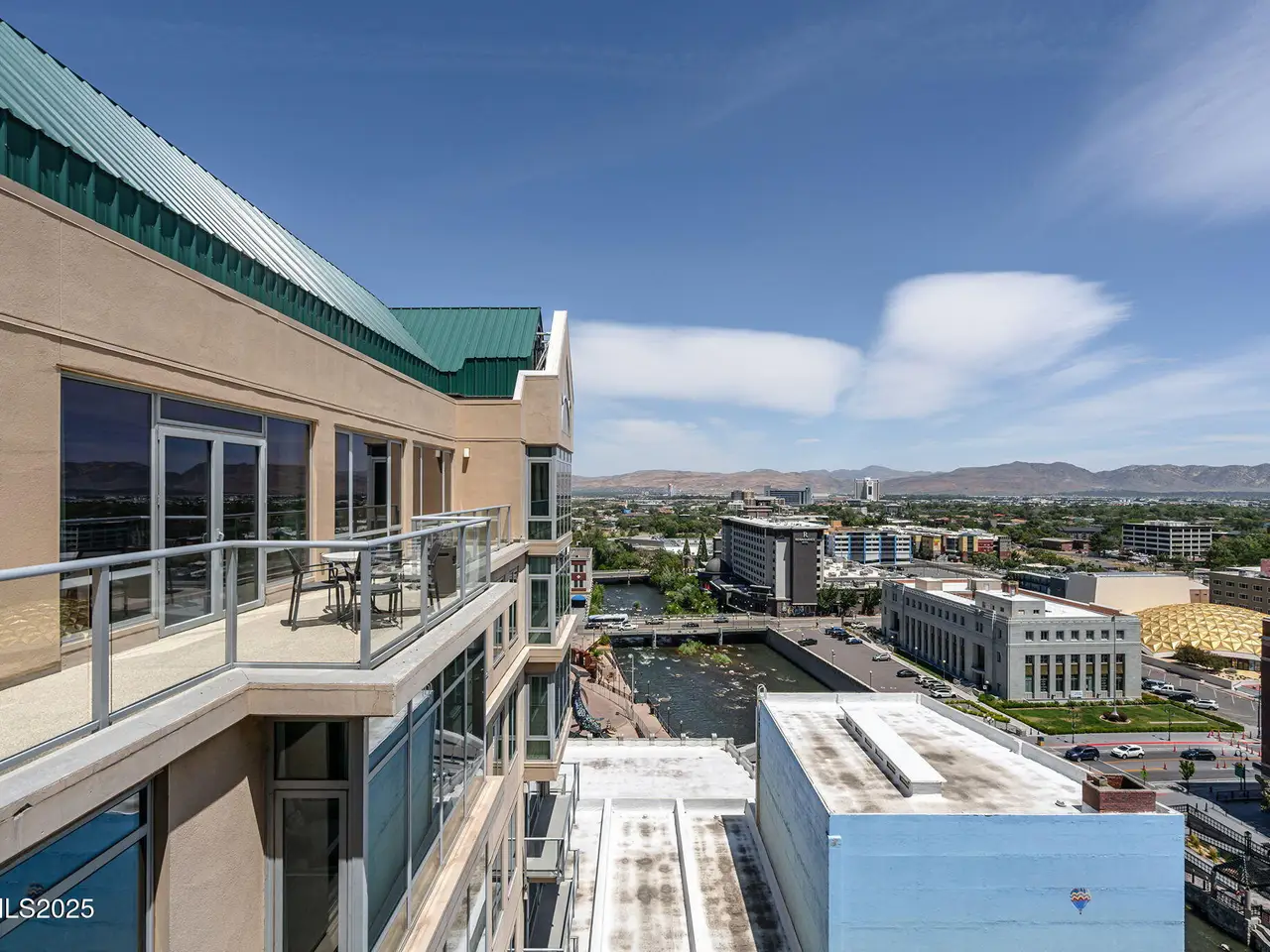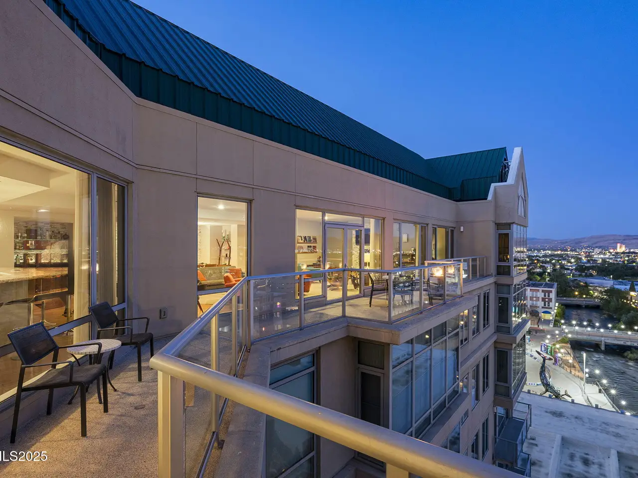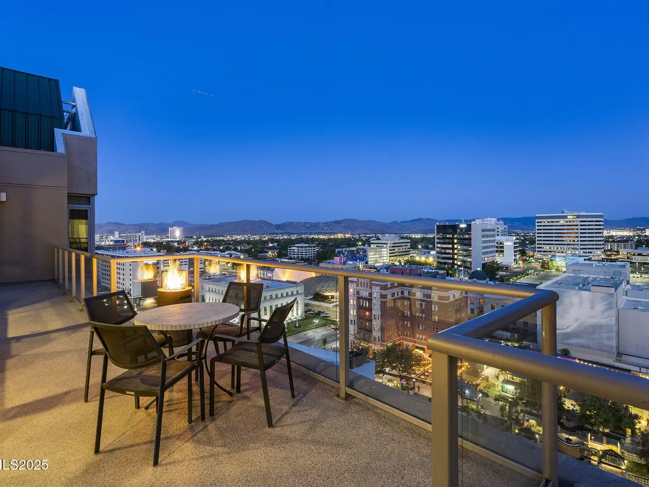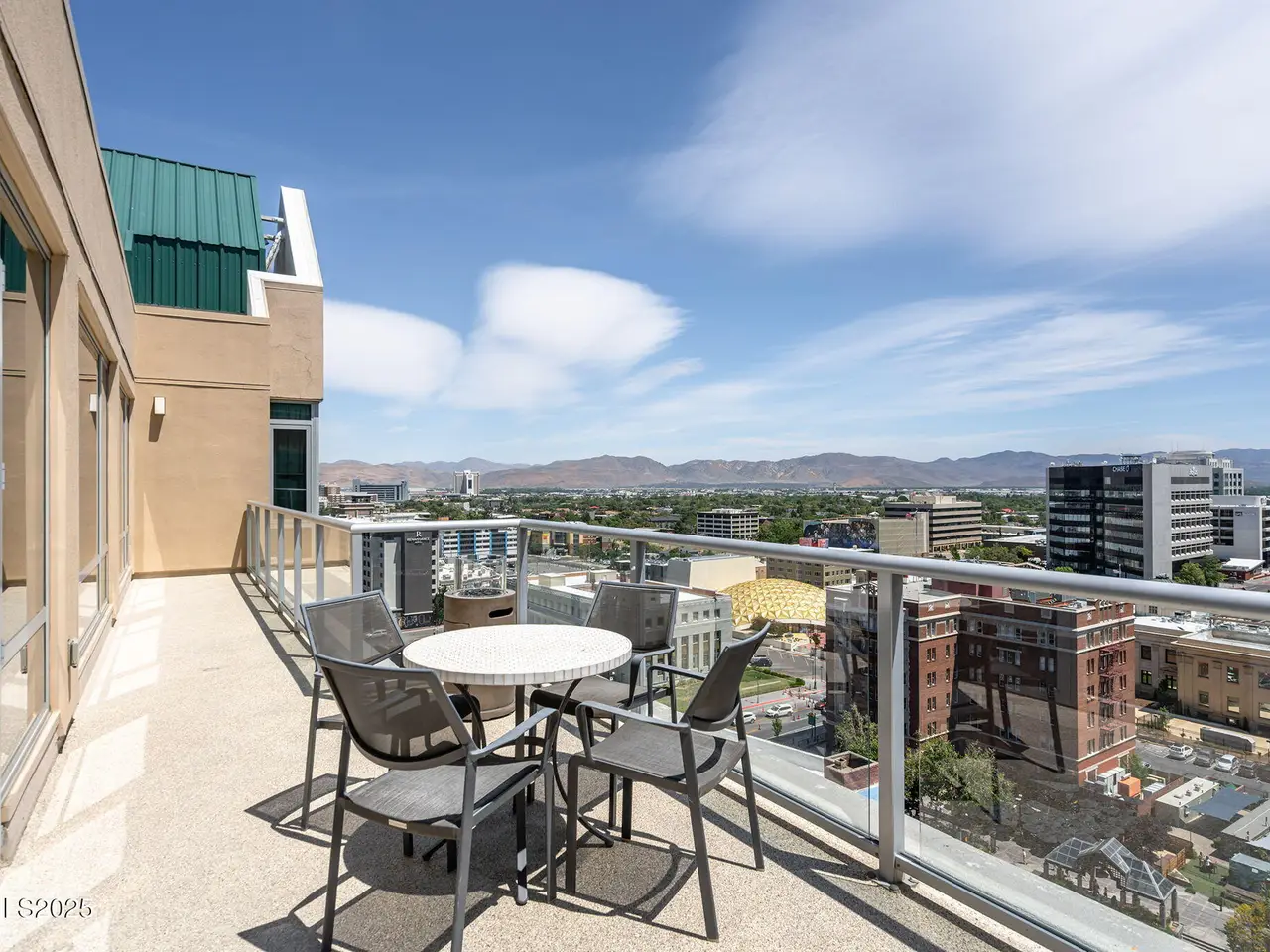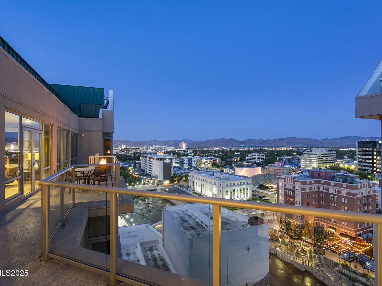 Live Above It All in Reno's "Global Headquarters" — The Palladio Penthouse. Experience the pinnacle of luxury urban living in this rare and breathtaking Penthouse at 50 N Sierra Street— in the heart of the city's vibrant downtown. One of only four exclusive penthouse residences in the prestigious Palladio, this 3-bedroom, 3.5-bath home is a masterclass in elegance, privacy, and elevated design. Step off your private express elevator—a luxury reserved for this unit—and into an expansive retreat where sophistication meets comfort. Hickory hardwood floors, polished granite surfaces, and exquisite stone finishes set the tone, while an upgraded fireplace and custom feature wall with built-in bar and uplighting create a perfect atmosphere for entertaining or relaxing in style. The sun-drenched great room is designed for gatherings large or small, anchored by a striking kitchen island bar that invites culinary creativity and connection. Extend the experience outdoors on the protected balcony spanning the full length of the unit, offering panoramic vistas of downtown Reno, the Sierra Nevada, and the flowing Truckee River. The primary suite is a serene escape with luxurious finishes, while the junior suite and additional bedroom offer flexibility for guests or home office needs. With three side-by-side parking spaces, ample storage, and a private storage unit, this home offers unmatched convenience. Located in the heart of Reno's walkable downtown, The Palladio places you steps from fine dining, art galleries, theaters, local parks, and cultural landmarks. Wake up to river views, walk to your favorite café, and end the day with a city skyline sunset—all from your new perch in Penthouse 15. This is more than a home. It's a statement. It's Reno redefined.
