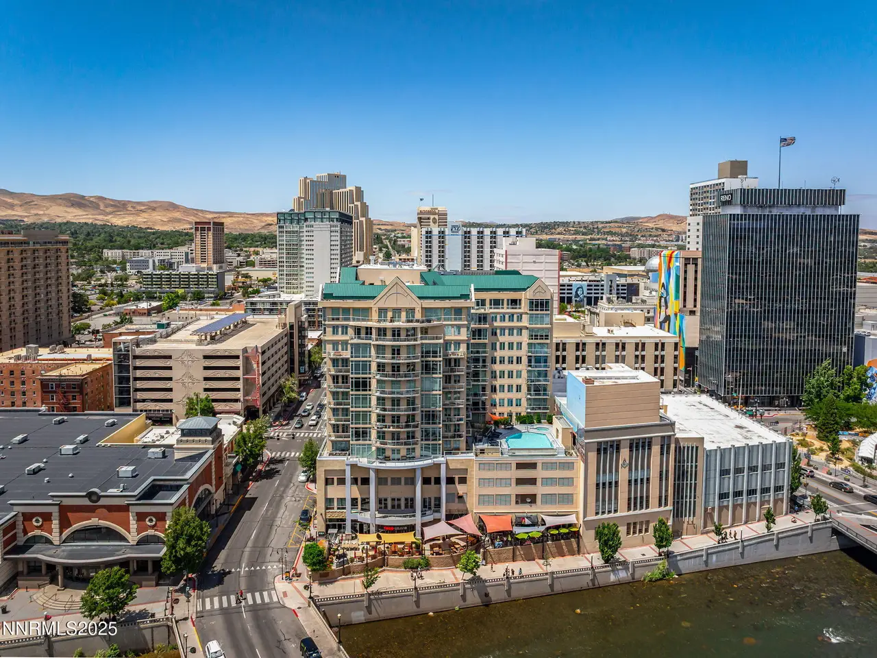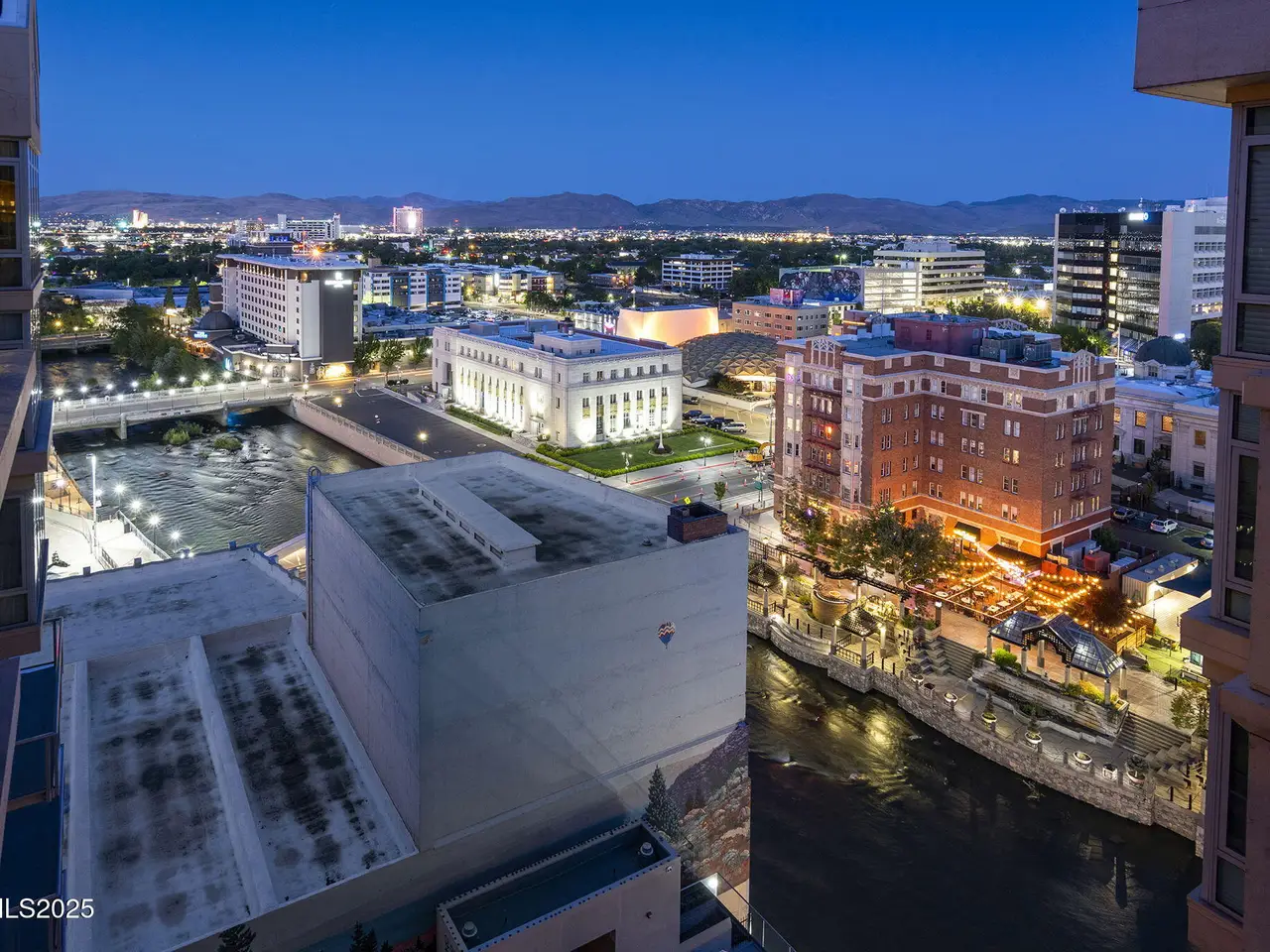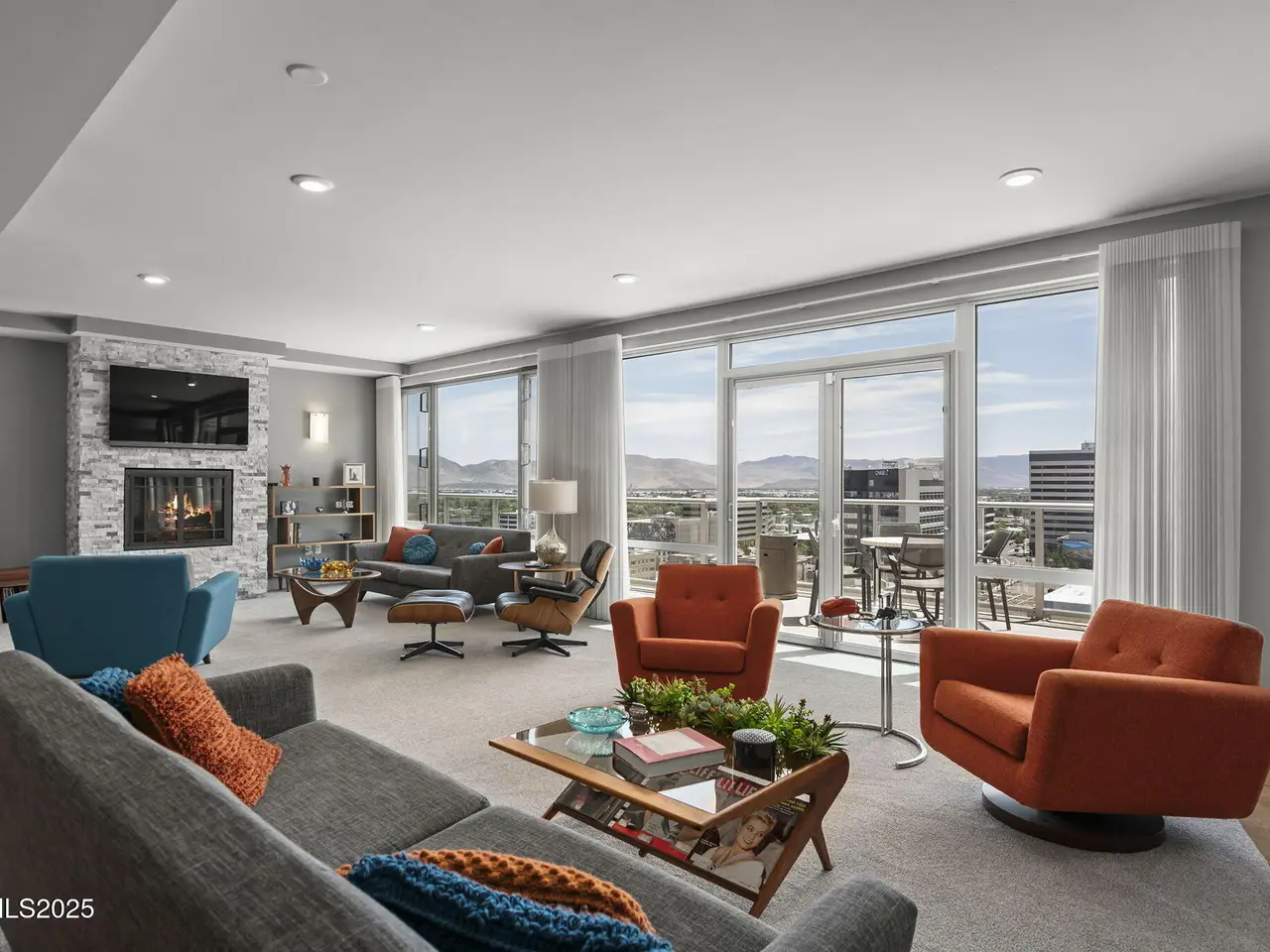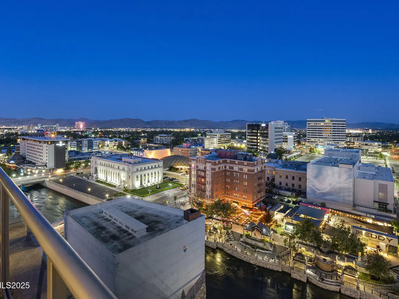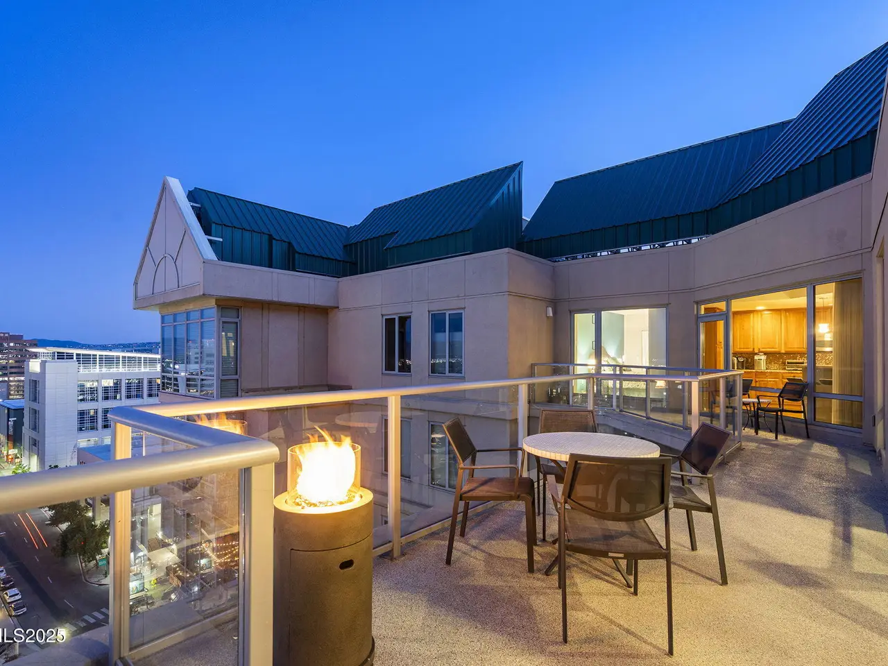 Live Above It All in Reno's "Global Headquarters" — The Palladio Penthouse. Experience the pinnacle of luxury urban living in this rare and breathtaking Penthouse at 50 N Sierra Street— in the heart of the city's vibrant downtown. One of only four exclusive penthouse residences in the prestigious Palladio, this 3-bedroom, 3.5-bath home is a masterclass in elegance, privacy, and elevated design. Step off your private express elevator—a luxury reserved for this unit—and into an expansive retreat where sophistication meets comfort. Hickory hardwood floors, polished granite surfaces, and exquisite stone finishes set the tone, while an upgraded fireplace and custom feature wall with built-in bar and uplighting create a perfect atmosphere for entertaining or relaxing in style. The sun-drenched great room is designed for gatherings large or small, anchored by a striking kitchen island bar that invites culinary creativity and connection. Extend the experience outdoors on the protected balcony spanning the full length of the unit, offering panoramic vistas of downtown Reno, the Sierra Nevada, and the flowing Truckee River. The primary suite is a serene escape with luxurious finishes, while the junior suite and additional bedroom offer flexibility for guests or home office needs. With three side-by-side parking spaces, ample storage, and a private storage unit, this home offers unmatched convenience. Located in the heart of Reno's walkable downtown, The Palladio places you steps from fine dining, art galleries, theaters, local parks, and cultural landmarks. Wake up to river views, walk to your favorite café, and end the day with a city skyline sunset—all from your new perch in Penthouse 15. This is more than a home. It's a statement. It's Reno redefined.