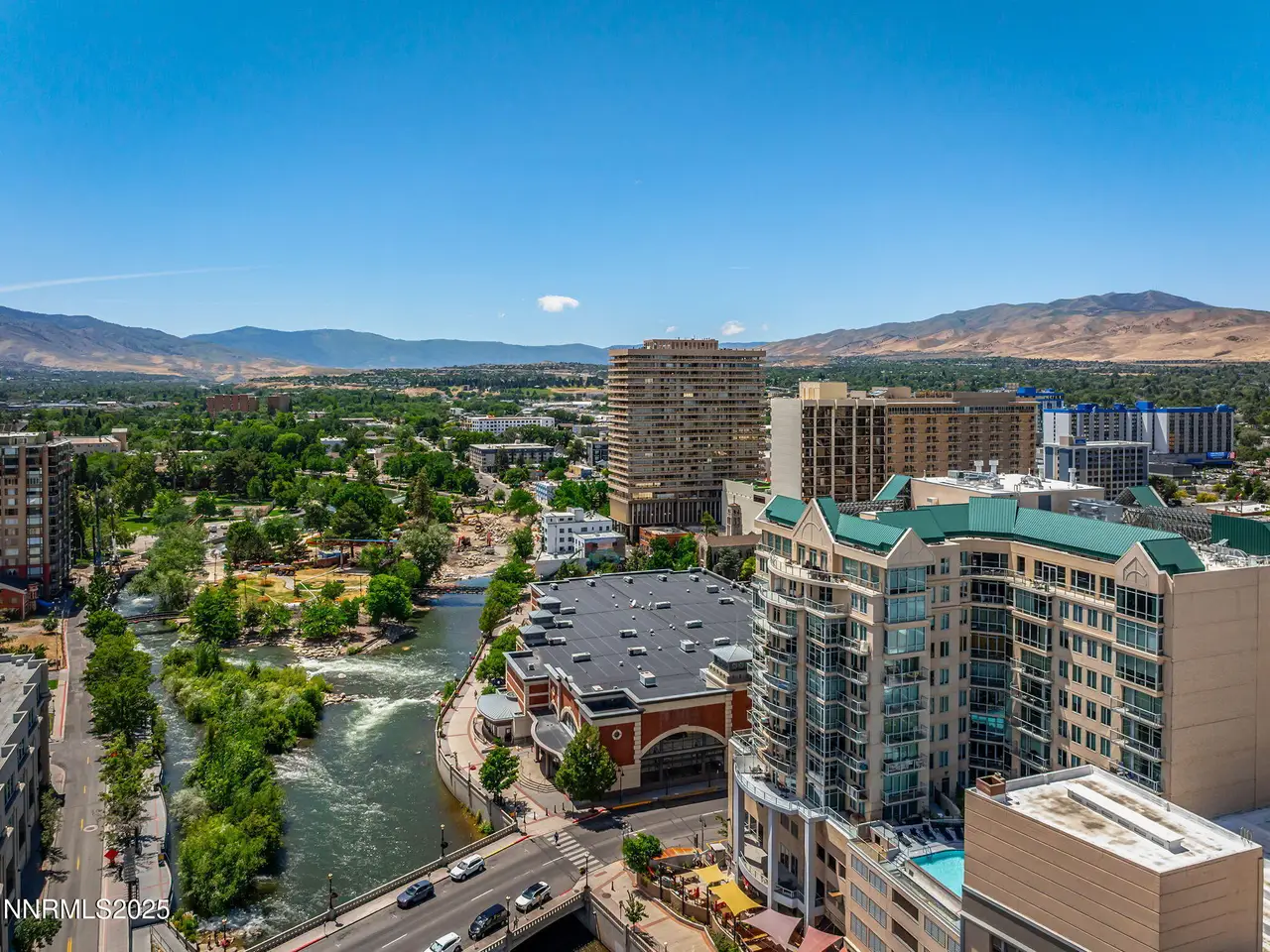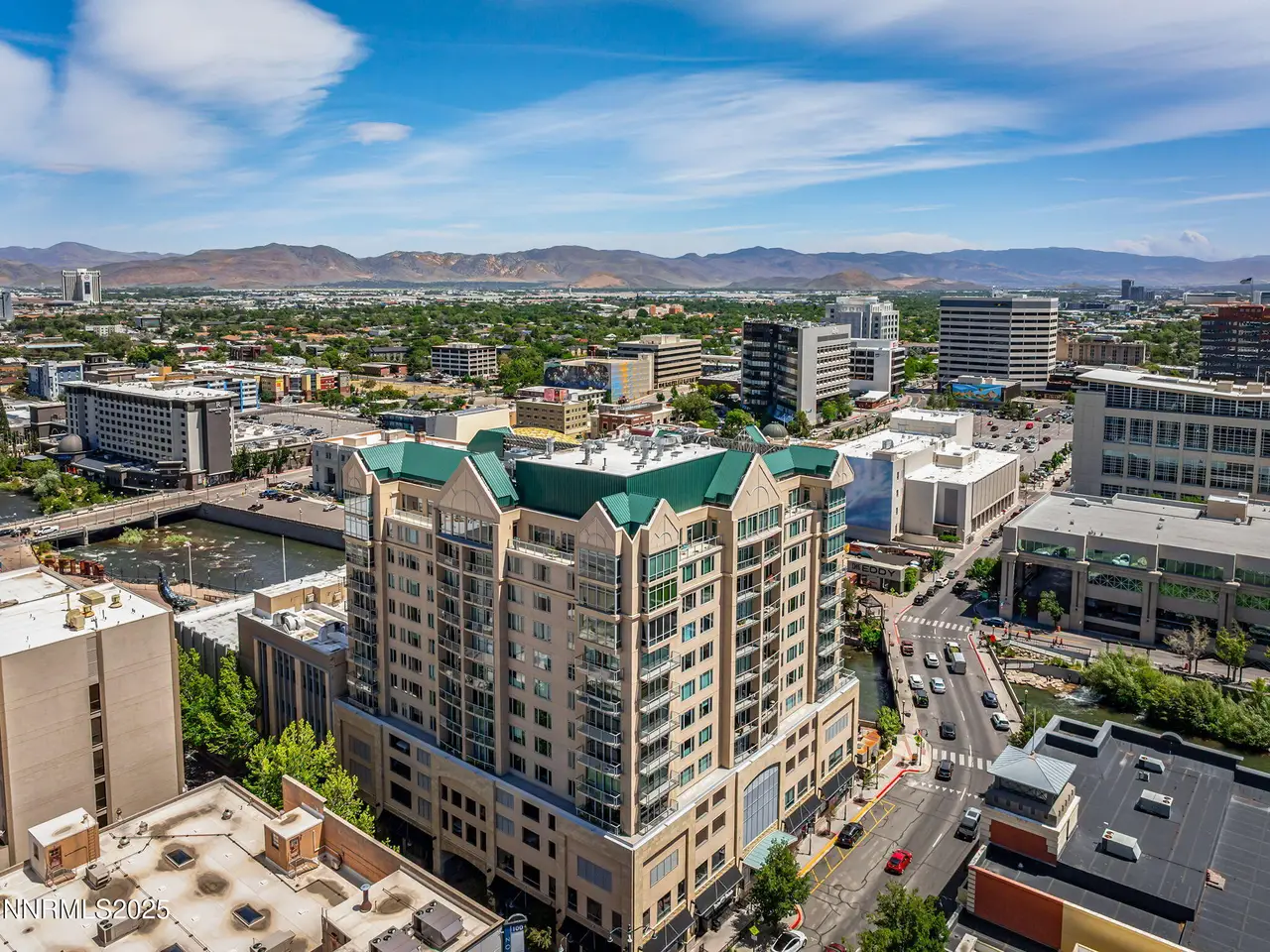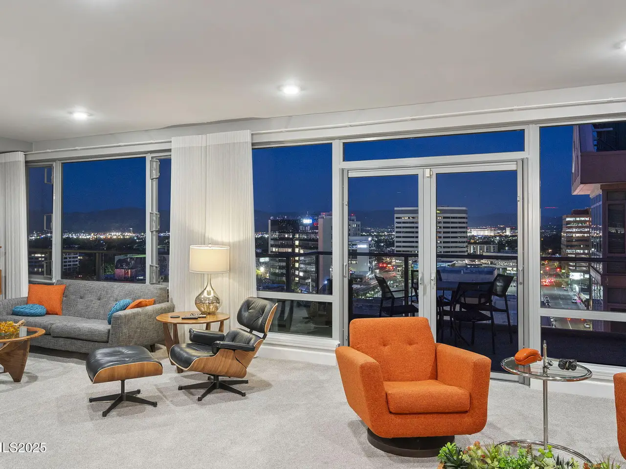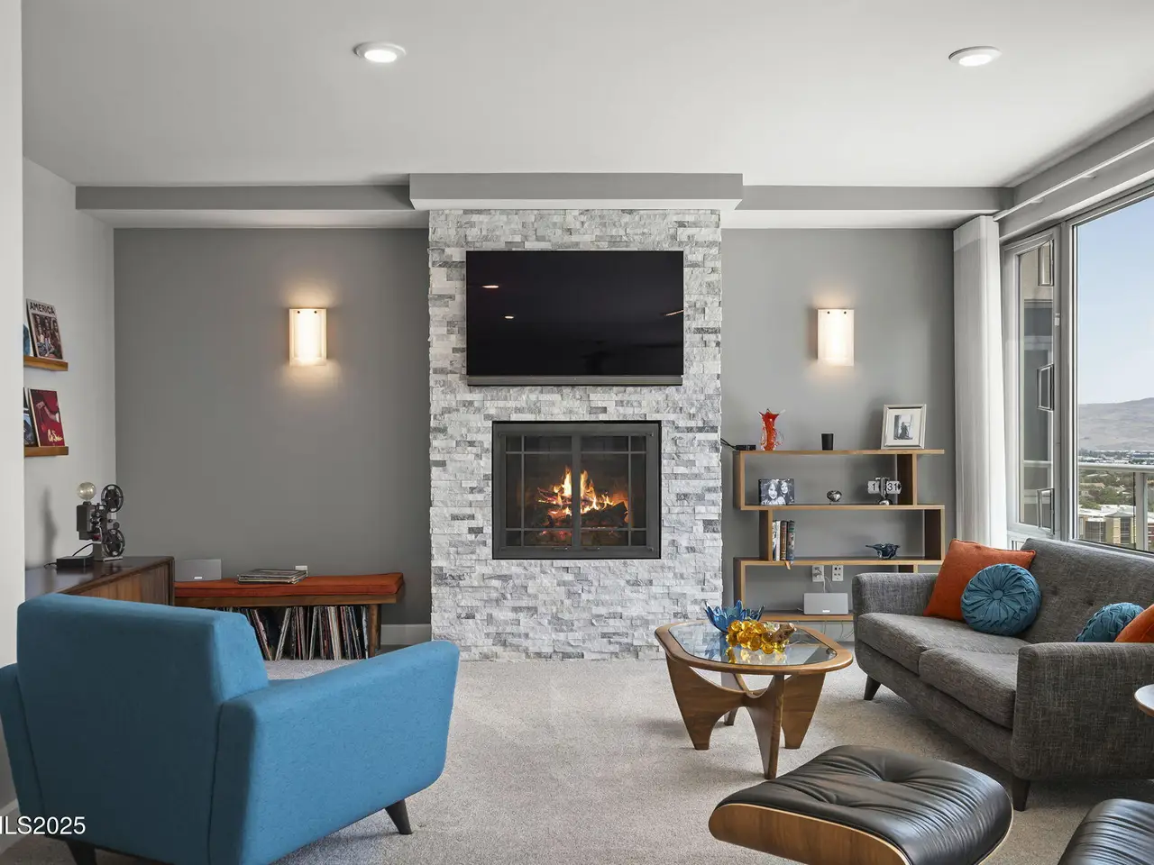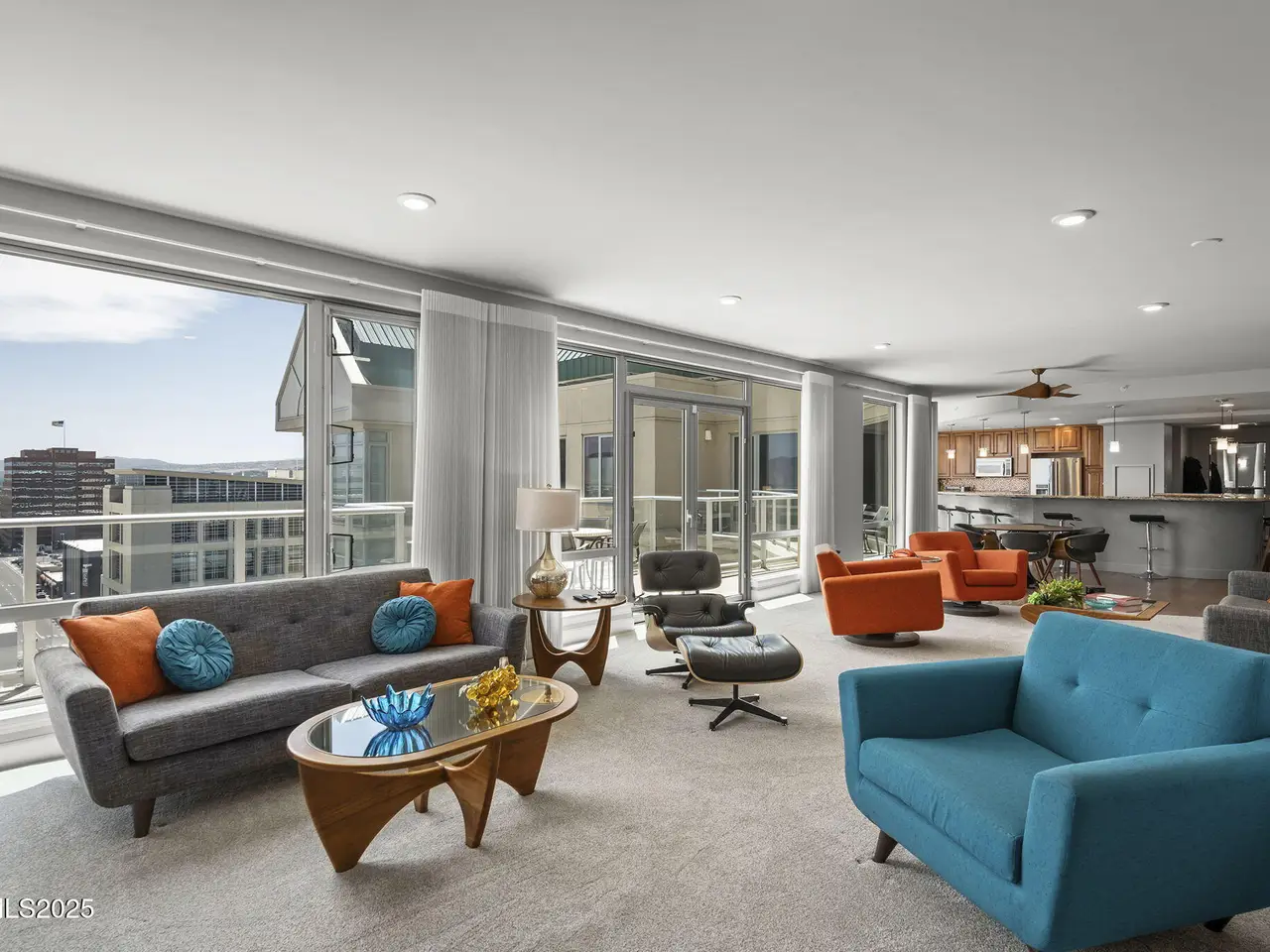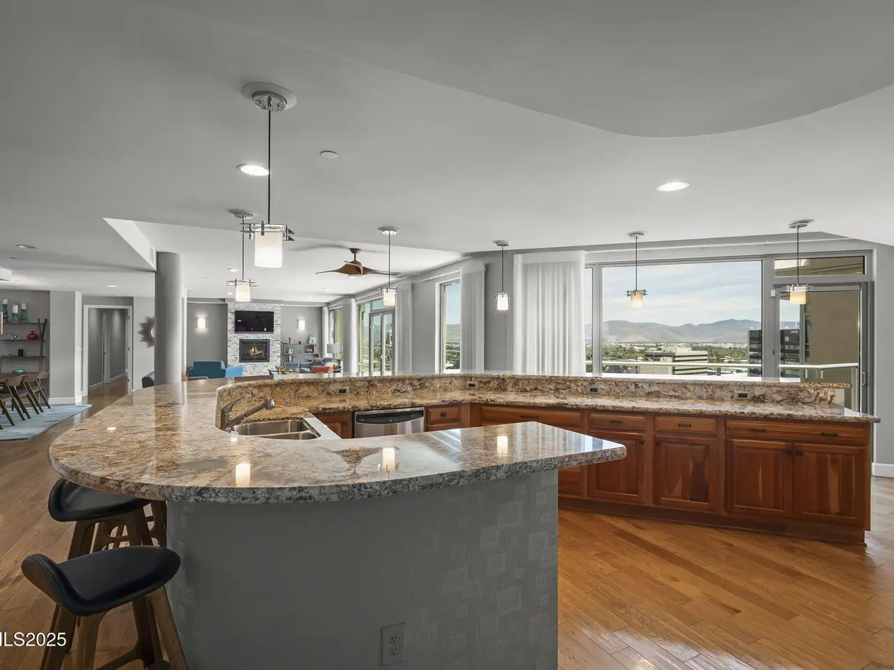 Live Above It All in Reno's "Global Headquarters" — The Palladio Penthouse. Experience the pinnacle of luxury urban living in this rare and breathtaking Penthouse at 50 N Sierra Street— in the heart of the city's vibrant downtown. One of only four exclusive penthouse residences in the prestigious Palladio, this 3-bedroom, 3.5-bath home is a masterclass in elegance, privacy, and elevated design. Step off your private express elevator—a luxury reserved for this unit—and into an expansive retreat where sophistication meets comfort. Hickory hardwood floors, polished granite surfaces, and exquisite stone finishes set the tone, while an upgraded fireplace and custom feature wall with built-in bar and uplighting create a perfect atmosphere for entertaining or relaxing in style. The sun-drenched great room is designed for gatherings large or small, anchored by a striking kitchen island bar that invites culinary creativity and connection. Extend the experience outdoors on the protected balcony spanning the full length of the unit, offering panoramic vistas of downtown Reno, the Sierra Nevada, and the flowing Truckee River. The primary suite is a serene escape with luxurious finishes, while the junior suite and additional bedroom offer flexibility for guests or home office needs. With three side-by-side parking spaces, ample storage, and a private storage unit, this home offers unmatched convenience. Located in the heart of Reno's walkable downtown, The Palladio places you steps from fine dining, art galleries, theaters, local parks, and cultural landmarks. Wake up to river views, walk to your favorite café, and end the day with a city skyline sunset—all from your new perch in Penthouse 15. This is more than a home. It's a statement. It's Reno redefined.