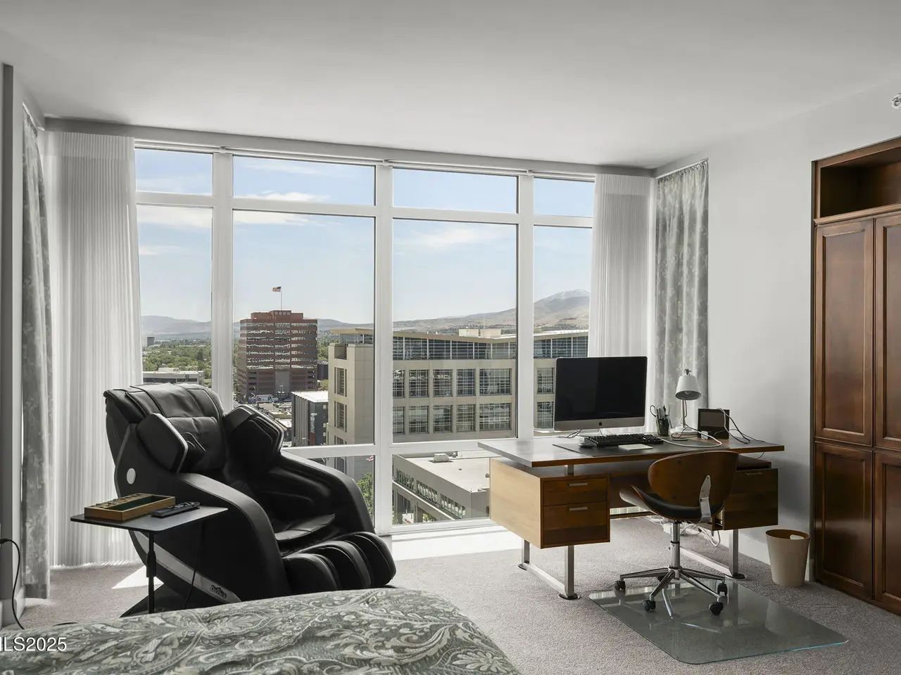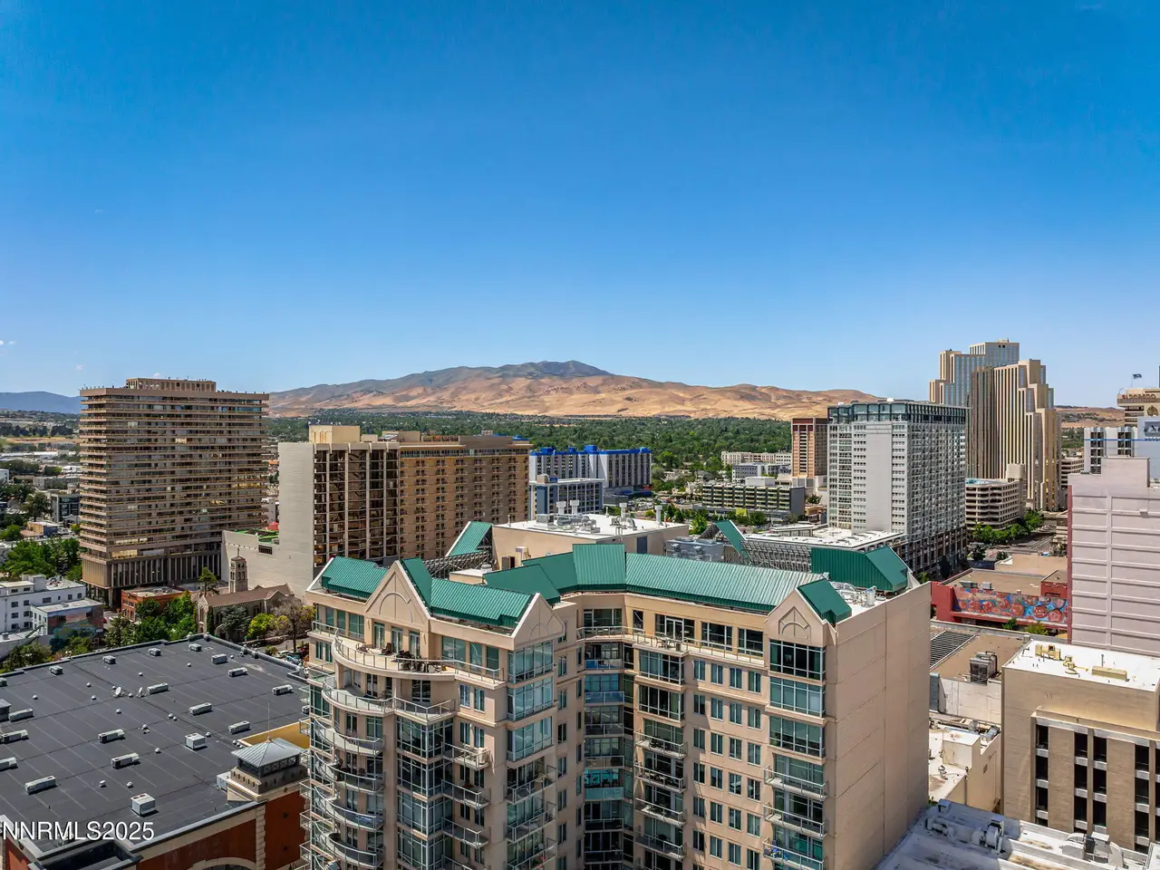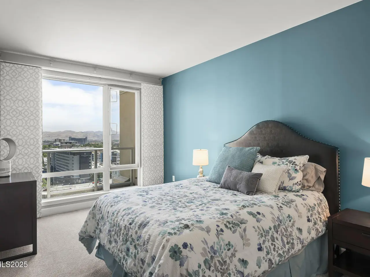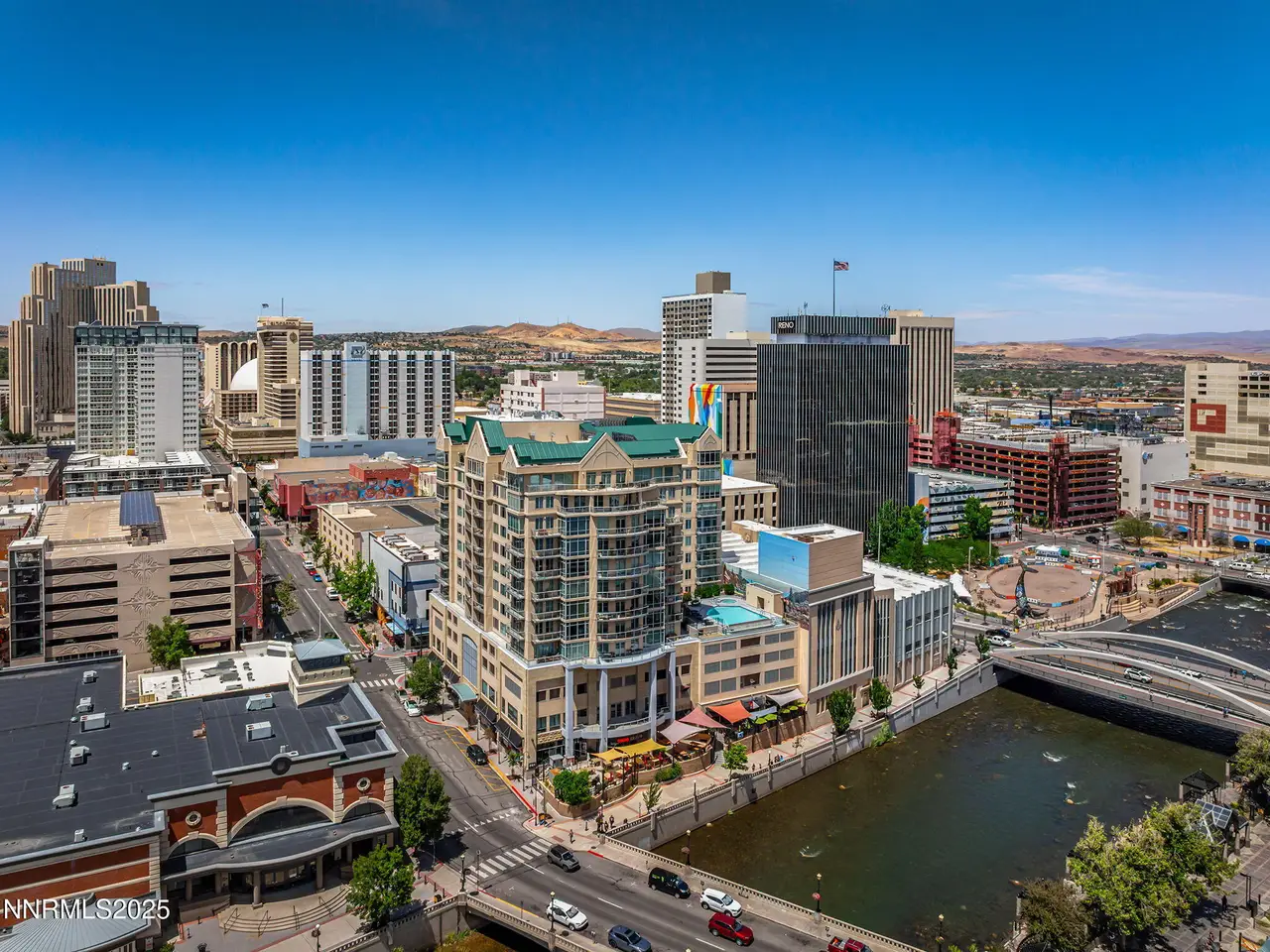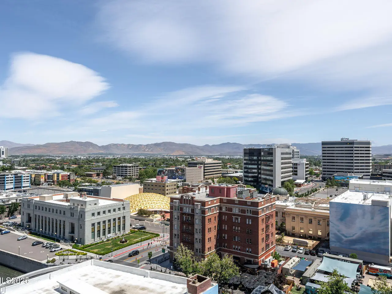 Live Above It All in Reno's "Global Headquarters" — The Palladio Penthouse. Experience the pinnacle of luxury urban living in this rare and breathtaking Penthouse at 50 N Sierra Street— in the heart of the city's vibrant downtown. One of only four exclusive penthouse residences in the prestigious Palladio, this 3-bedroom, 3.5-bath home is a masterclass in elegance, privacy, and elevated design. Step off your private express elevator—a luxury reserved for this unit—and into an expansive retreat where sophistication meets comfort. Hickory hardwood floors, polished granite surfaces, and exquisite stone finishes set the tone, while an upgraded fireplace and custom feature wall with built-in bar and uplighting create a perfect atmosphere for entertaining or relaxing in style. The sun-drenched great room is designed for gatherings large or small, anchored by a striking kitchen island bar that invites culinary creativity and connection. Extend the experience outdoors on the protected balcony spanning the full length of the unit, offering panoramic vistas of downtown Reno, the Sierra Nevada, and the flowing Truckee River. The primary suite is a serene escape with luxurious finishes, while the junior suite and additional bedroom offer flexibility for guests or home office needs. With three side-by-side parking spaces, ample storage, and a private storage unit, this home offers unmatched convenience. Located in the heart of Reno's walkable downtown, The Palladio places you steps from fine dining, art galleries, theaters, local parks, and cultural landmarks. Wake up to river views, walk to your favorite café, and end the day with a city skyline sunset—all from your new perch in Penthouse 15. This is more than a home. It's a statement. It's Reno redefined.