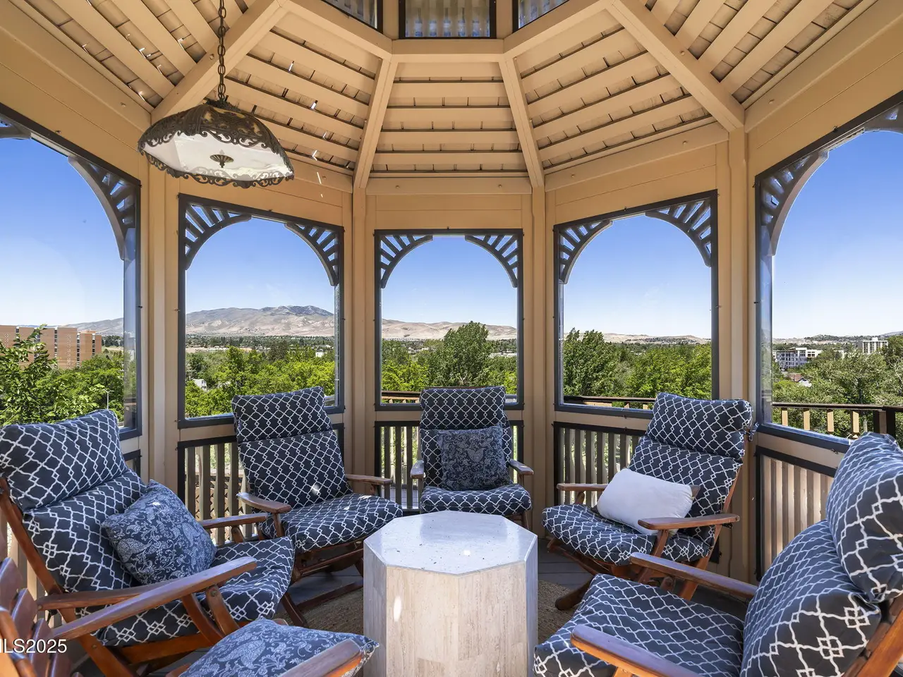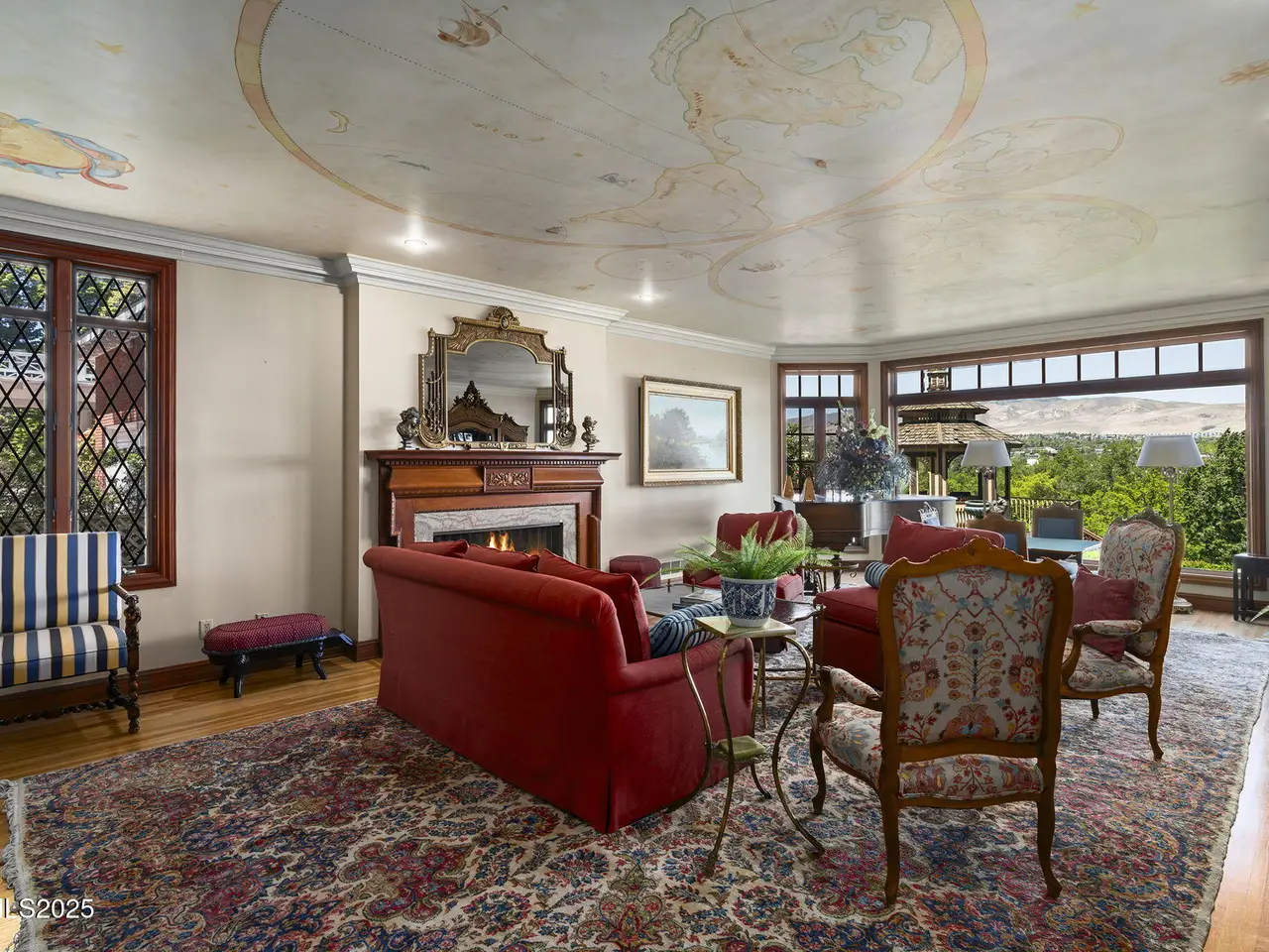 Make Reno's history into your future at 745 California Avenue, a 7,722 sq ft, 6 bd/5.5 bath English Tudor Revival home. Known as the Payne House and designed in the late 1930s, it features a 20-foot circular entry hall connecting formal and cozy living areas. Its prime location offers stunning views of the Truckee River and downtown Reno through expansive windows, a terraced yard, and a gazebo. With its rich history, detailed restoration, and modern amenities, this house is ready for its next era and owner. Discover a distinctive property that blends architecture and history on Reno's iconic bluff overlooking the Truckee River at 745 California Avenue. This 7,722 sq ft English Tudor Revival estate was designed in the late 1930s by famed Nevada architect Edward Parsons, who called it "rather a thrill." The home makes a lasting impression with decorative brickwork, half-timbering, steeply pitched symmetrical gables, leaded glass windows, and massive chimneys. Its form is most striking from above, where terraced gardens and mature trees blend seamlessly into the home's architecture, offering privacy, beauty, and a deep sense of permanence. More than 50 years after its construction, the Payne House's current owner undertook a thoughtful restoration. Key original features—hardwood flooring, hand-finished brickwork, and bespoke architectural details—were preserved. Modern upgrades include central air conditioning, forced-air gas heating, updated plumbing and electrical systems, and security. A restored vintage elevator provides convenient access across all levels of the home. The home includes 6 bedrooms and 5.5 bathrooms. The primary suite features a vintage fireplace, mountain views, dual vanities, a jetted soaking tub, a walk-in shower, and a spacious closet. The kitchen pairs classic charm with modern function, with built-in appliances and a garden-view breakfast nook. The formal dining room features oversized windows that frame panoramic views of the Truckee River and Sierra foothills. A painted ceiling mural floats above the living and game room. Wood-burning and freestanding fireplaces add warmth and character throughout the home. Additional rooms include a library, office, bonus space, and a fully finished walk-out basement with its own recreation area and workshop. The finished basement opens to the yard and adds flexible space for hobbies, guests, or extra living. The 0.79-acre lot includes a custom stone wall along California Avenue, a private driveway, a detached two-car garage, and a playhouse designed to echo the main residence. A tranquil pond anchors the front yard, while the terraced backyard unfolds to a deck, patio, and a gazebo perched above the river—perfect for gatherings, balloon watching, or quiet river moments. Located about a mile from downtown Reno, the home offers convenient access to parks, schools, and cultural venues. The Newlands Historic District is known for its concentration of other historic homes, tree-lined streets, and a landscape shaped by the City Beautiful movement. The Payne House offers more than architectural beauty—it holds a story. From its distinguished origins to its careful restoration, this home reflects vision, character, and legacy. It's ready for its next era—and for someone who values history, design, and the timeless experience of living in a truly remarkable place.