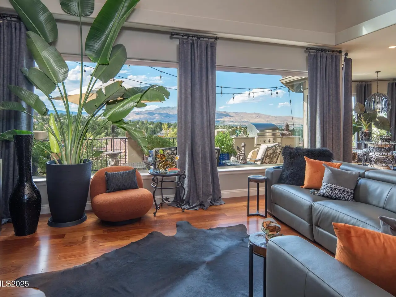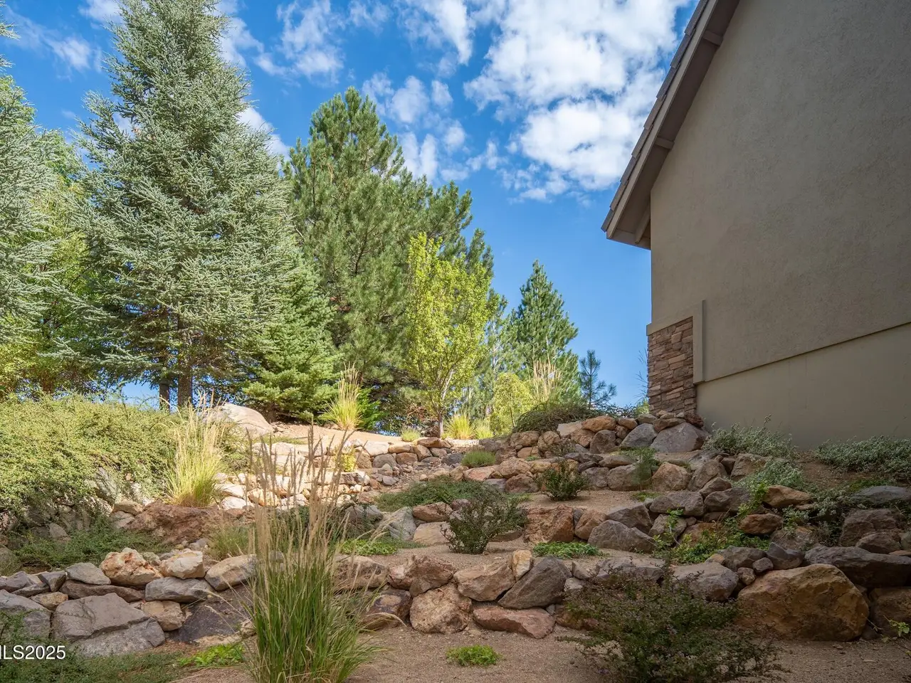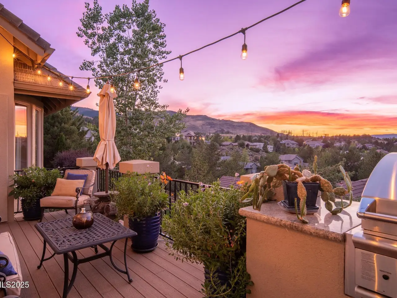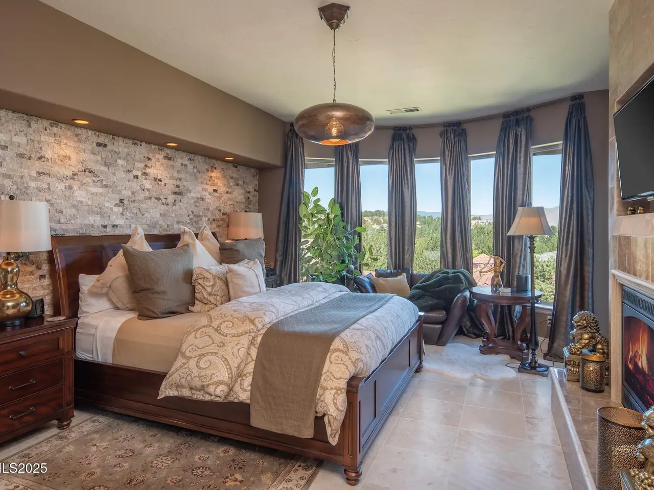 Perched above Reno behind the gates of Mountainshyre in the Caughlin Ranch community, 4905 Mountainshyre Road offers a lifestyle of elegance, security, and comfort. Completed in 2013, this 3904 sqft. custom home spans three levels and blends timeless architecture with modern conveniences, all while showcasing breathtaking views of the city skyline and surrounding mountains. You're instantly welcomed by the home's lush curb appeal, with its paver driveway that leads to the stone-accented exterior, fresh stucco finish, and quartzite steps, making a striking first impression. Inside, a travertine foyer welcomes you to soaring ceilings and windows that frame the panoramic views. The living room features a 20-foot vaulted ceiling, expansive windows, teak hardwood floors, and a dramatic three-sided gas fireplace. The dining room is defined by vaulted ceilings, faux columns, and an elegant chandelier. The open kitchen has slab granite counters, alder cabinetry, a six-burner Jenn-Air range, and paneled Jenn-Air refrigerator. A hexagonal breakfast nook offers unmatched morning views, while a large walk-in pantry with etched glass door provides ample storage. The first of two primary suites offers views from the private deck access, a stone fireplace, and beautiful travertine flooring. The spa-like bath features dual vanities, a soaking tub with mosaic surround, marble counters, and a custom-tiled shower. A large walk-in closet with alder built-ins leads to a reinforced safe room with keypad entry. The lower floor includes an entertainment room with recessed lighting, built in audio, and hardwood flooring with access to the outdoors. Down here, you'll find the second primary suite, currently being used as an office. It features hardwood flooring, blackout shades, and a sleek gas fireplace, and a warm wood paneled ceiling. The attached bath is just as luxurious as its upstairs counterpart and also features walk-in closets and second safe room. Three more downstairs bedrooms provide versatility, each with large closets for ample storage. They share a marble-appointed bathroom with alder cabinetry and walk-in shower. The top floor is dedicated to a home gym featuring commercial-grade flooring, mirrored walls, ceiling fans, and built-in audio. Step outside to a yard designed for year-round enjoyment. The expansive deck, accessed from the living room and primary suite, overlooks Reno's skyline and mountains. A built-in gas BBQ with granite counters makes it ideal for entertaining. The lower, covered patio provides a shaded outdoor retreat. Automatic sprinklers maintain the lush yard with apple, cherry, and plum trees, alongside the private vineyard with its 11 vines. The three oversized garages are finished with epoxy floors, built-in cabinets, and central vacuum outlets, and warm water hook ups for winter car washing. Behind its elegance, the home's advanced technical features include 3 Rheem HVAC units with individual zones, high-efficiency insulation, 75-gallon gas water heater plus 50-gallon electric tank with recirculating pump, hardwired Cat-6 internet and antenna system, 4 camera Lorex surveillance system with monitor, whole-house alarm and DrainVac central vacuum system. Much of this is tucked behind a 221 sqft utility room which is not included in the home's overall square footage. This estate represents a rare opportunity to own one of Reno's most distinctive properties, where craftsmanship, security, and beauty converge.